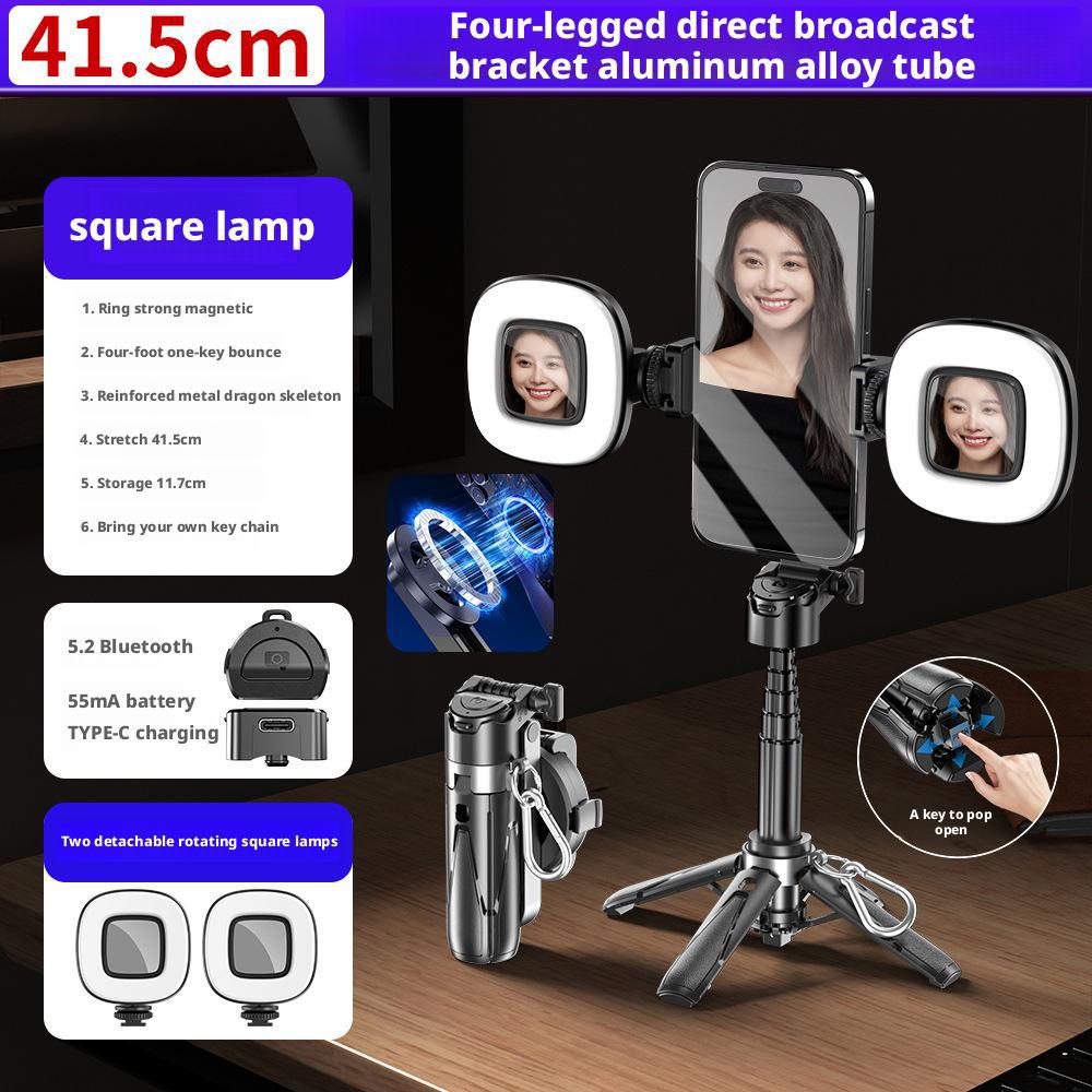 • P15mini 마그네틱 더블 사각 램프 블랙 [사각형 램프 2개 + 41.5cm 알루미늄 합금 셀카봉 + 블루투스 리모컨]