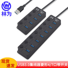 产品名称:USB3.0带独立按键开关一拖四/一拖七集线器/分线器