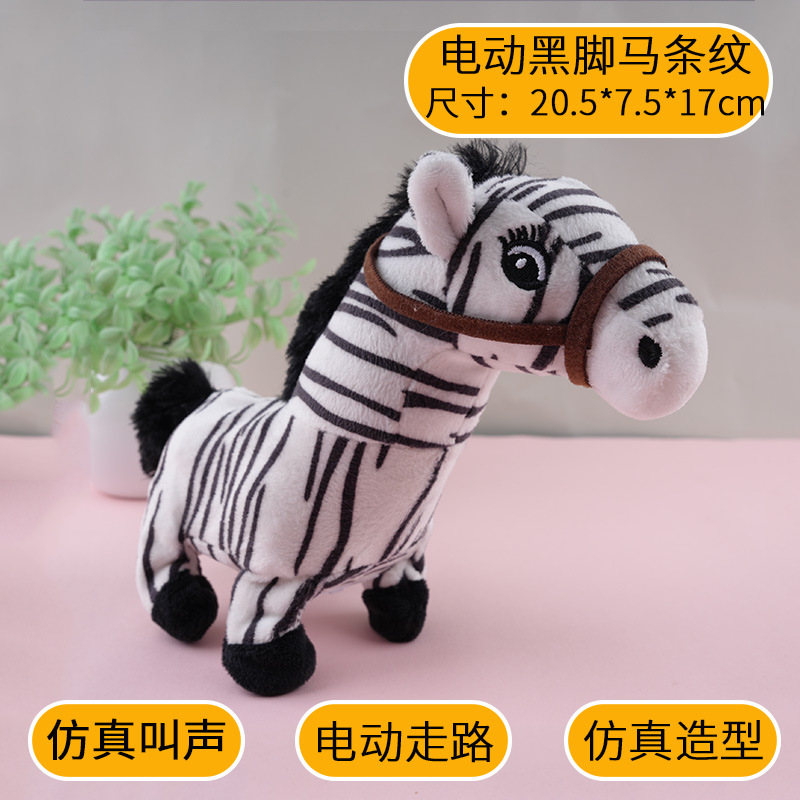 부드러운 전기 시뮬레이션 동물 검은 발 말은 걷고 소리 지르며 국경 간 인기 어린이 장난감 인형 작은 애완 동물을 가지고 있습니다.