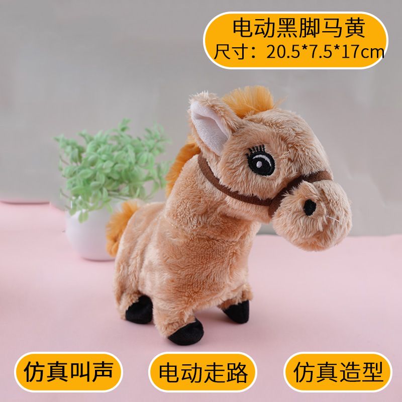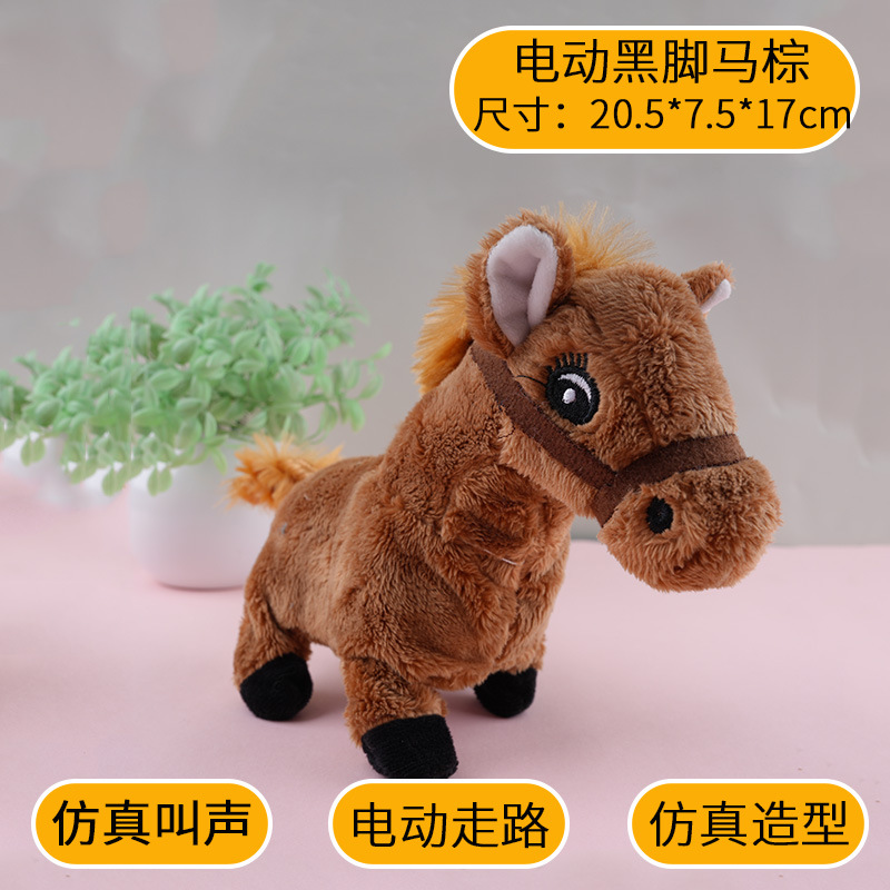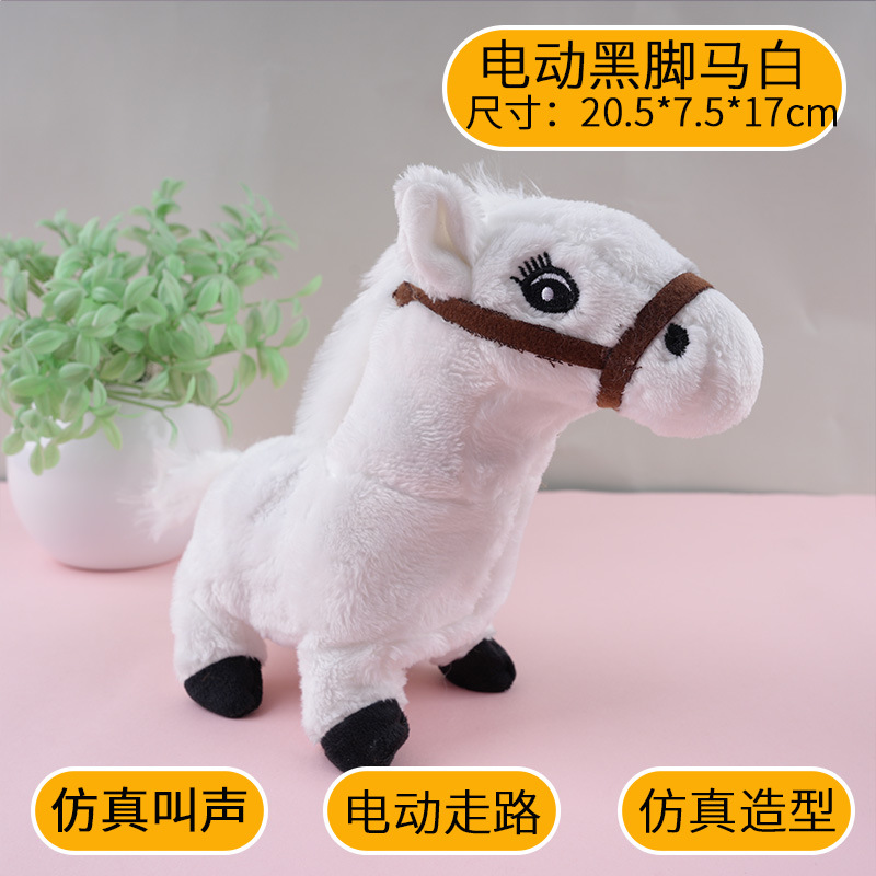 부드러운 전기 시뮬레이션 동물 검은 발 말은 걷고 소리 지르며 국경 간 인기 어린이 장난감 인형 작은 애완 동물을 가지고 있습니다.스토어 가기