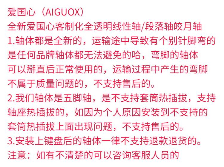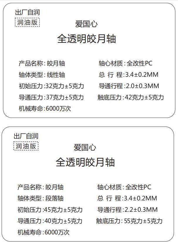 Patriotic Heart Jiaoyue 축 완전 투명한 얼음 크리스탈 축 선형 마작 사운드 섹션 맞춤형 키보드 DIY 축 스위치