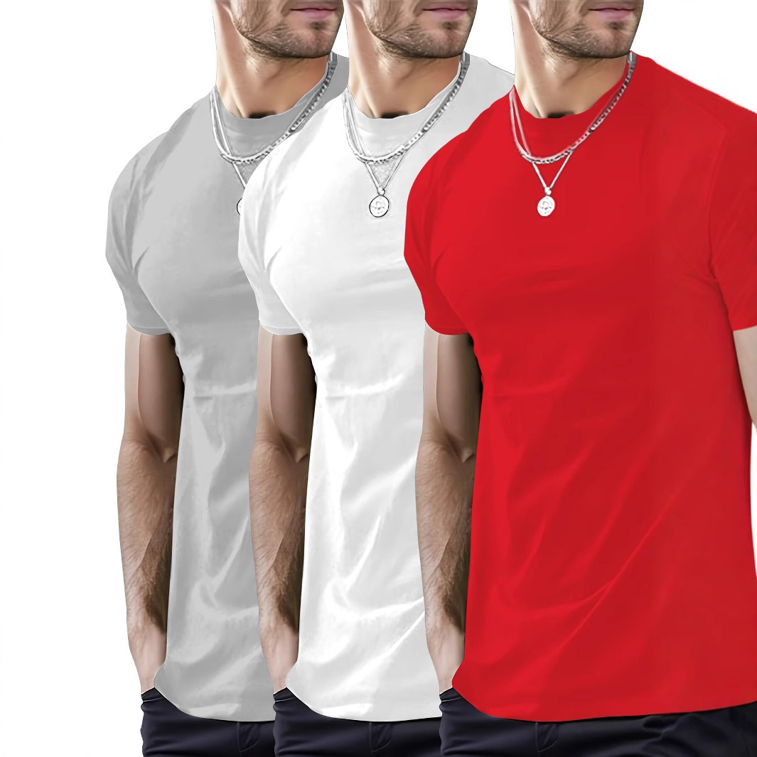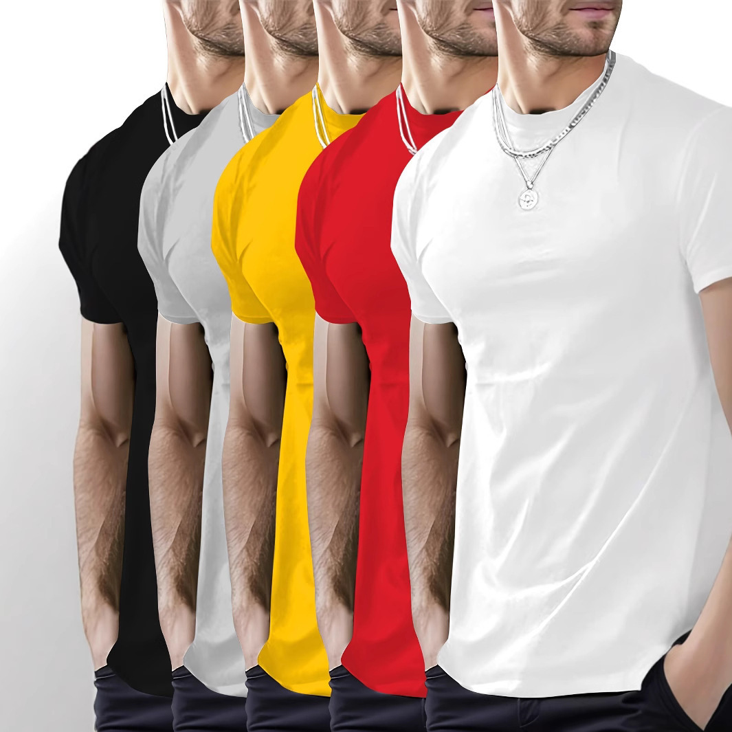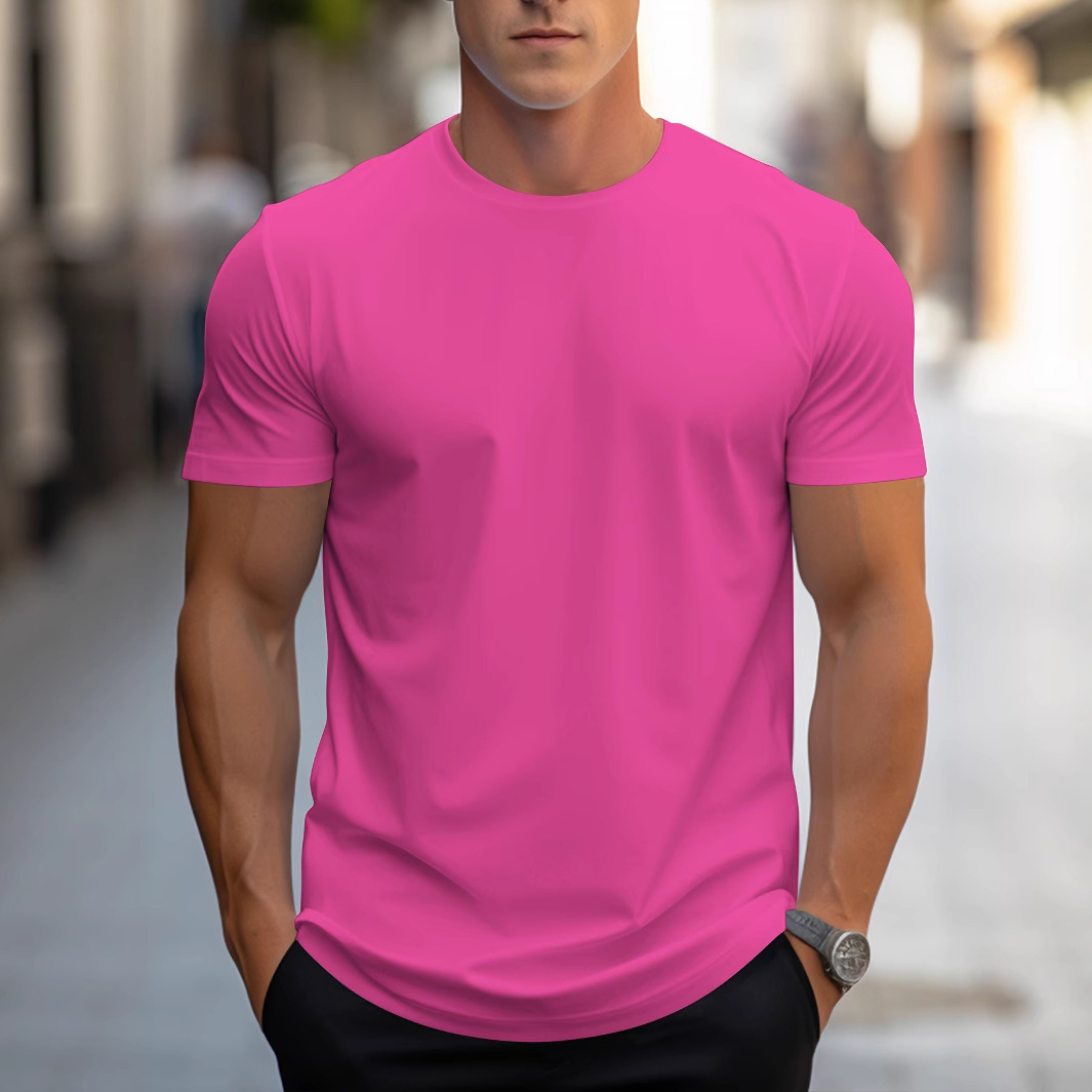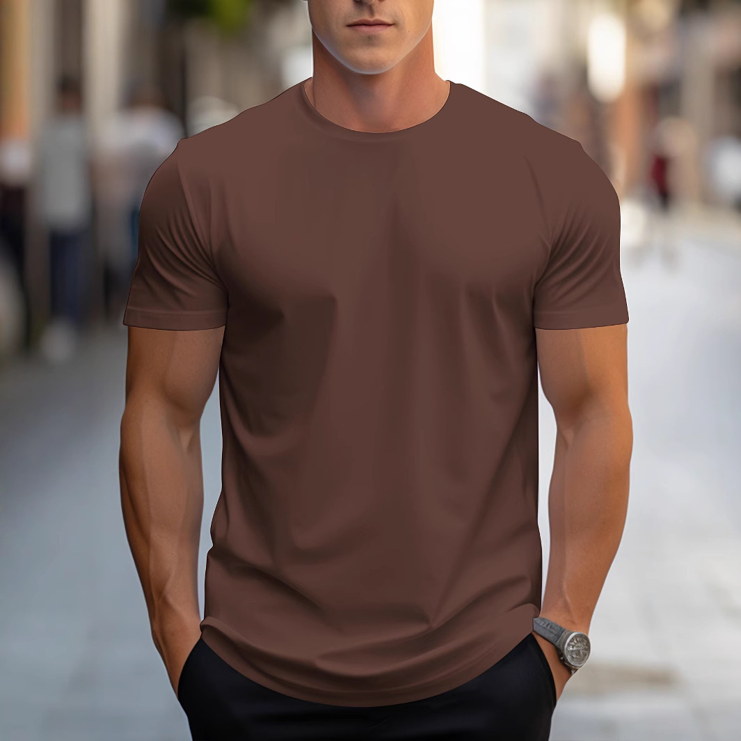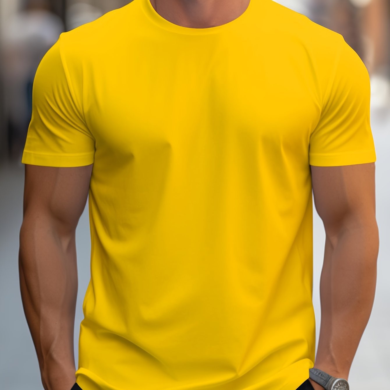 [유럽 사이즈 코튼 T] 크로스보더 180g 솔리드 컬러 남성 라운드넥 반팔 티셔츠 패셔너블 레귤러핏 티셔츠 라이트 플레이트