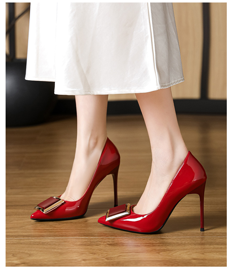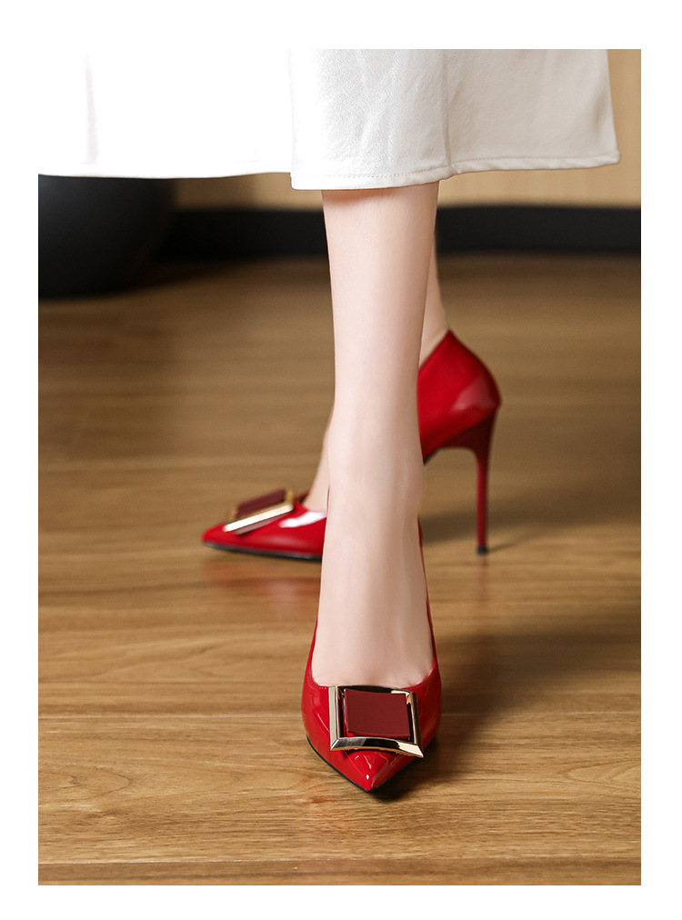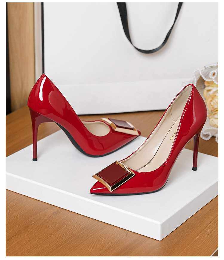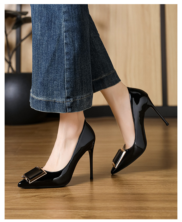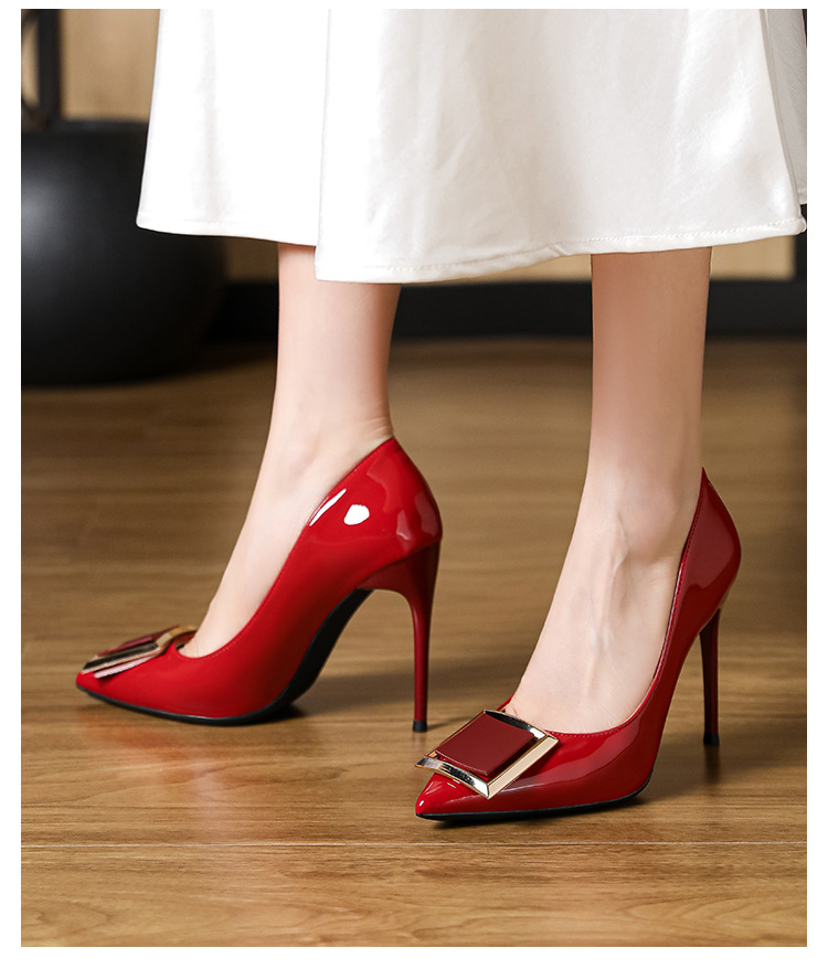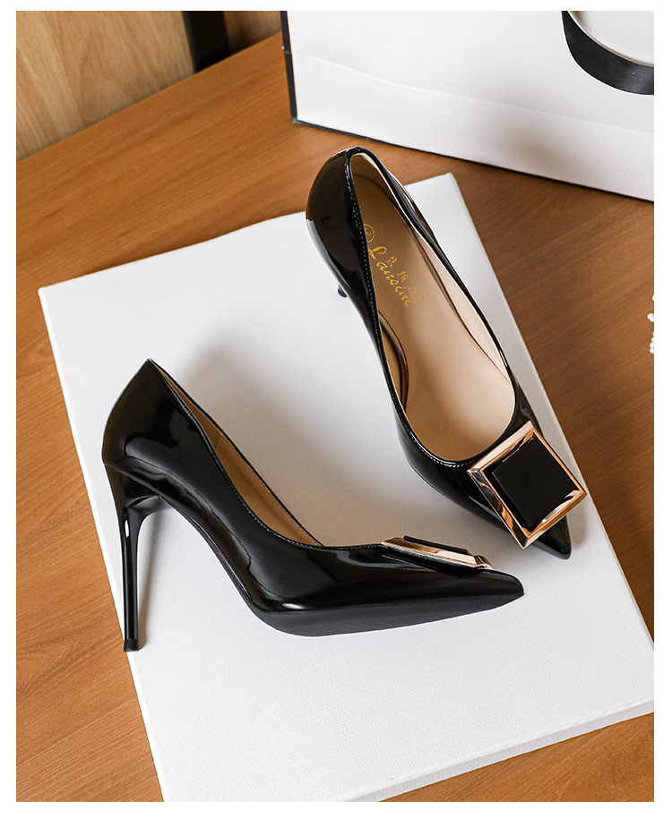 작은 사이즈 313233 프렌치 스퀘어 버튼 포인티드 토 페이턴트 가죽 섹시한 하이힐 여성용 대형 사이즈 41 ~ 43 핫 스타일 슈퍼 소프트 슈즈스토어 가기
