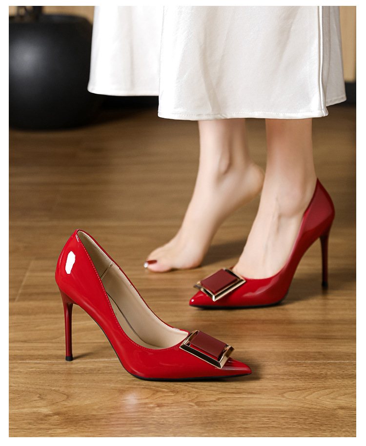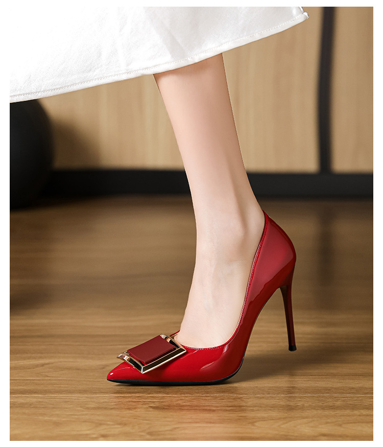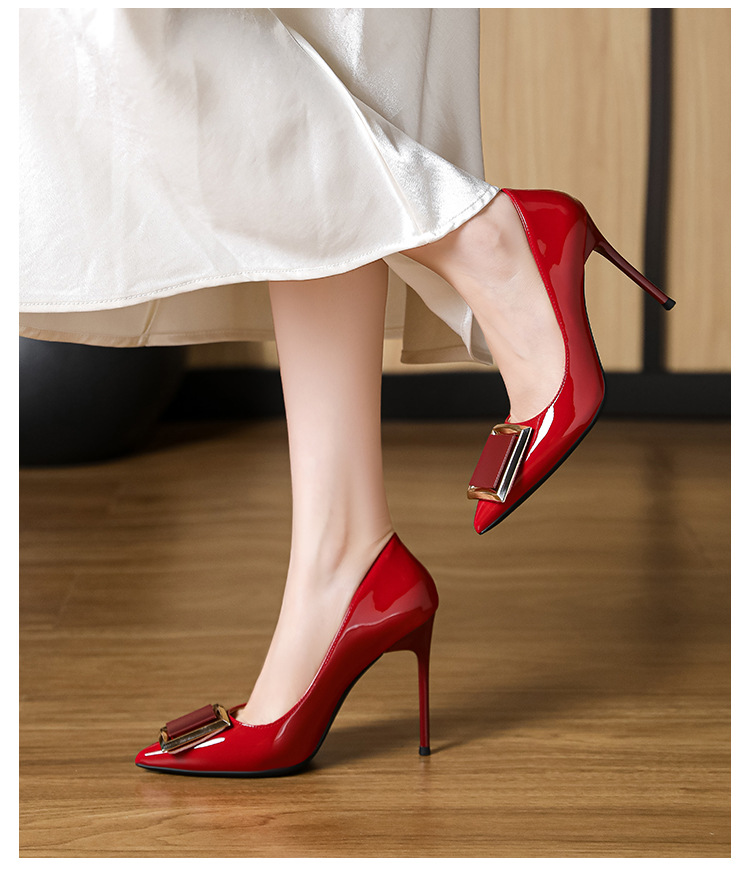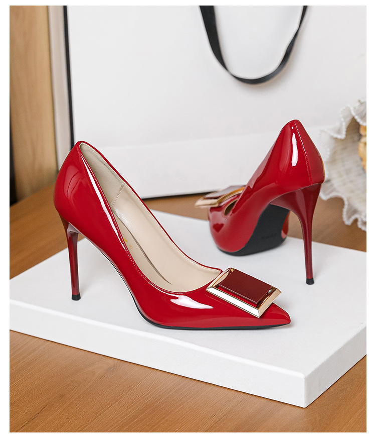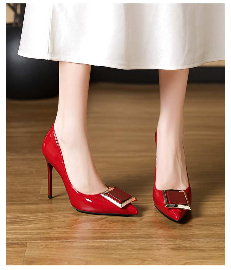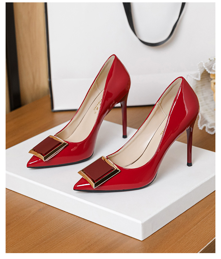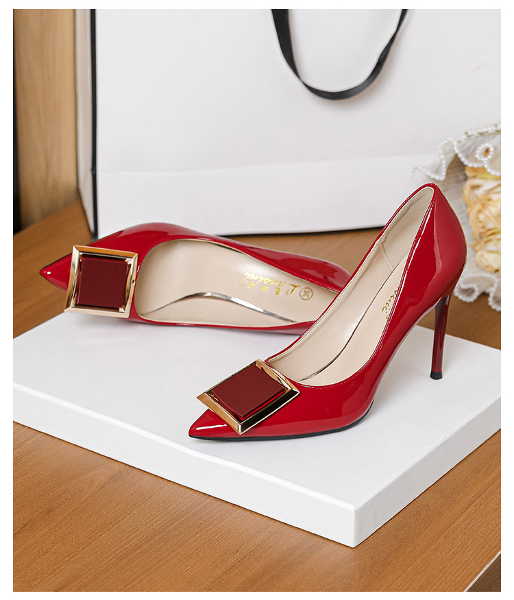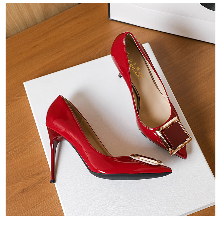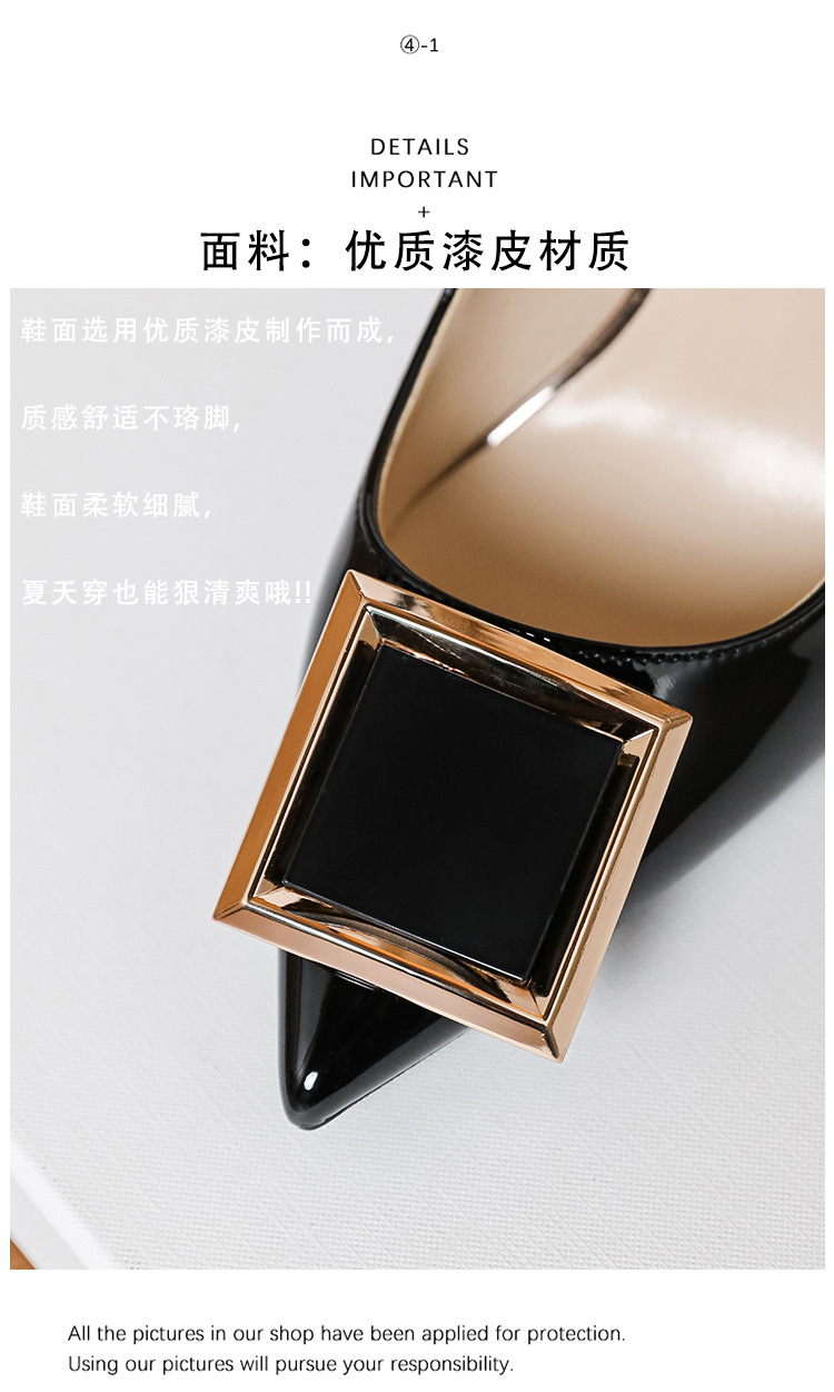 작은 사이즈 313233 프렌치 스퀘어 버튼 포인티드 토 페이턴트 가죽 섹시한 하이힐 여성용 대형 사이즈 41 ~ 43 핫 스타일 슈퍼 소프트 슈즈