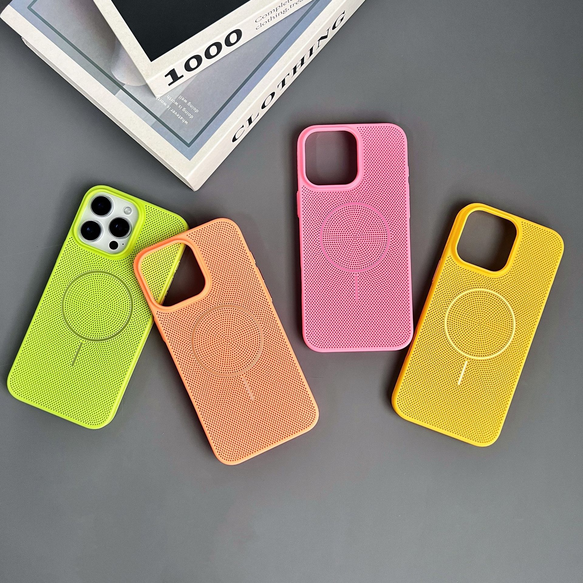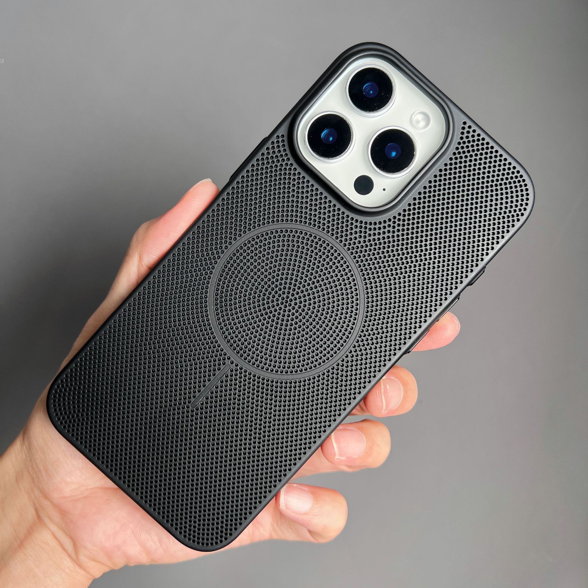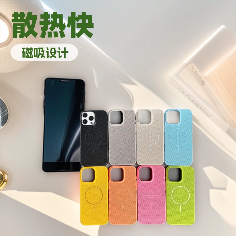 Apple 16promax 휴대폰 케이스에 적합, 냉각 및 통기성 iphone15/14MagSafe 미세 원형 자기 흡입 낙하 방지
