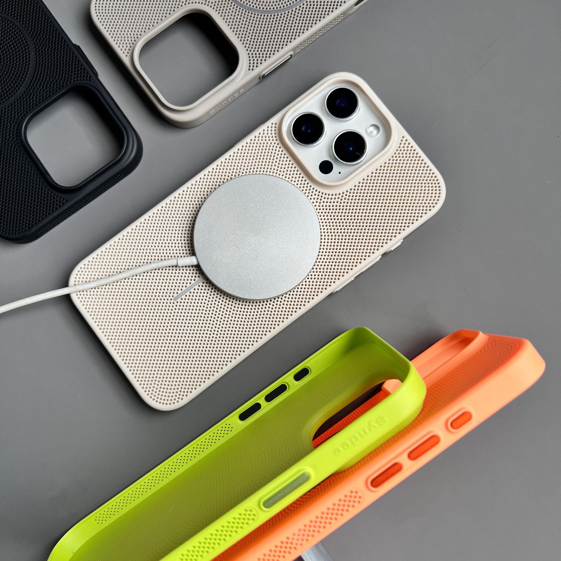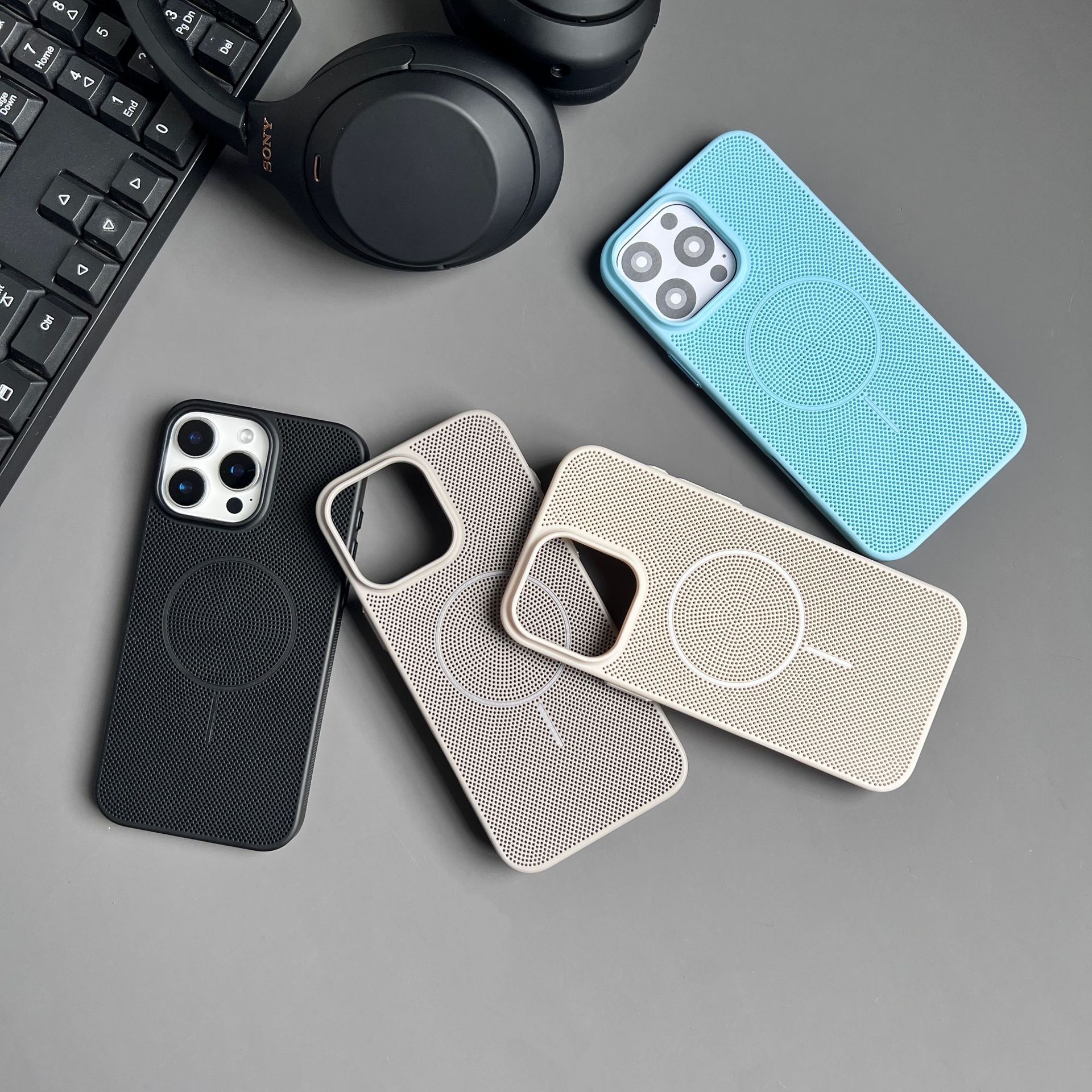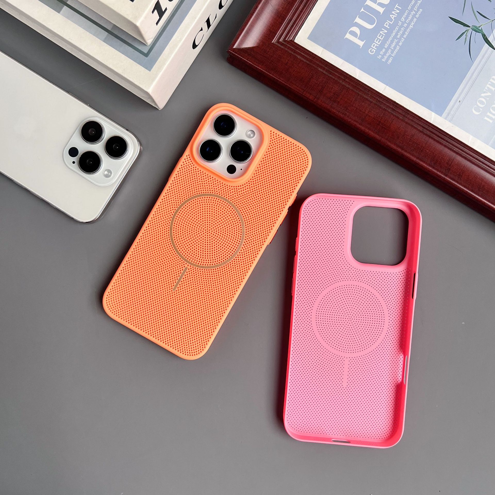 Apple 16promax 휴대폰 케이스에 적합, 냉각 및 통기성 iphone15/14MagSafe 미세 원형 자기 흡입 낙하 방지