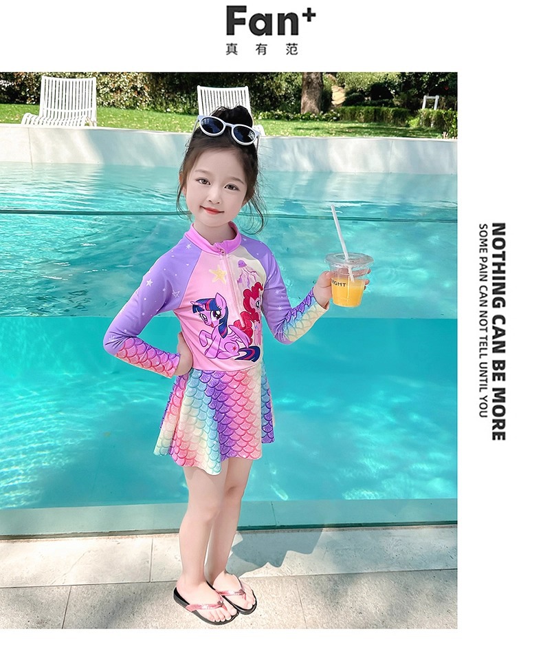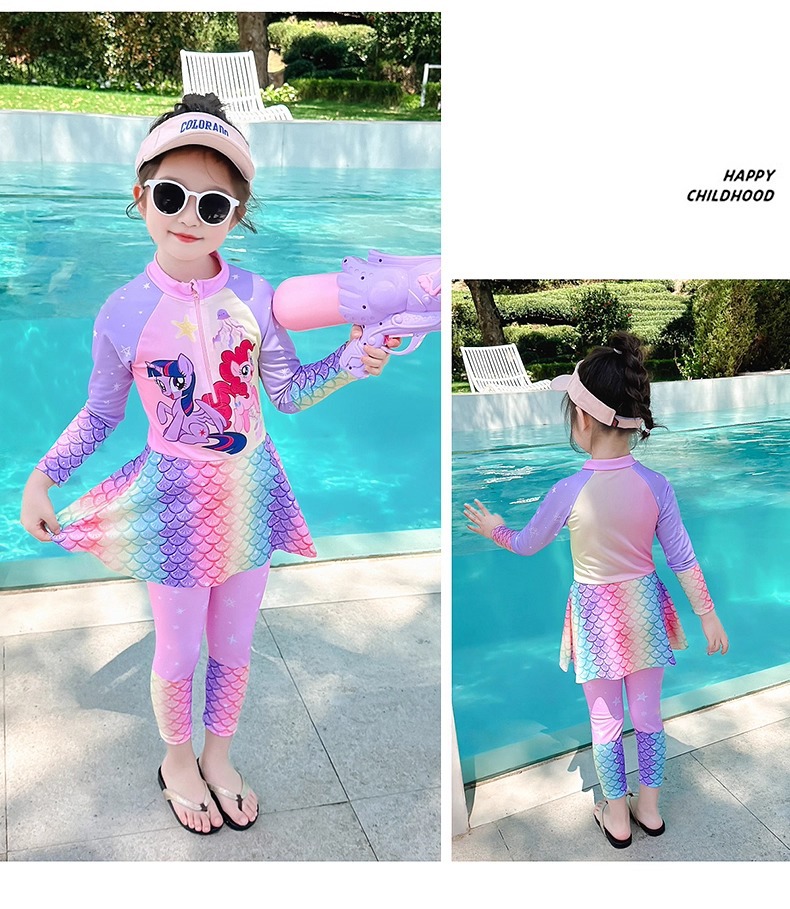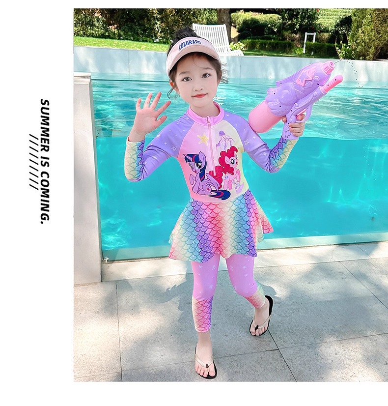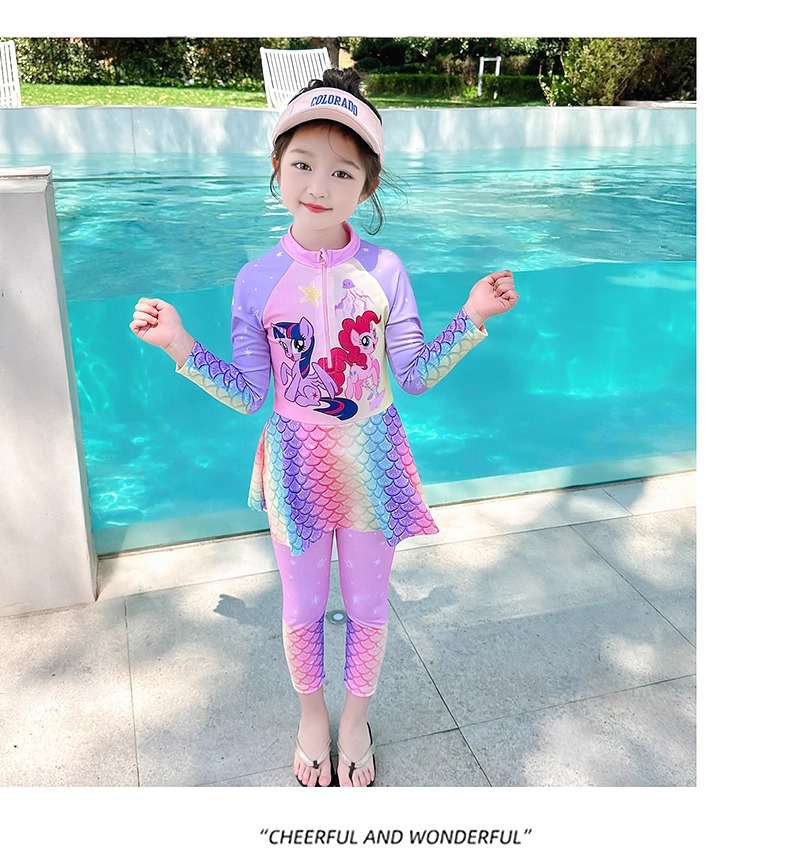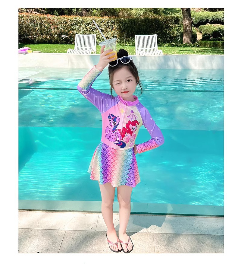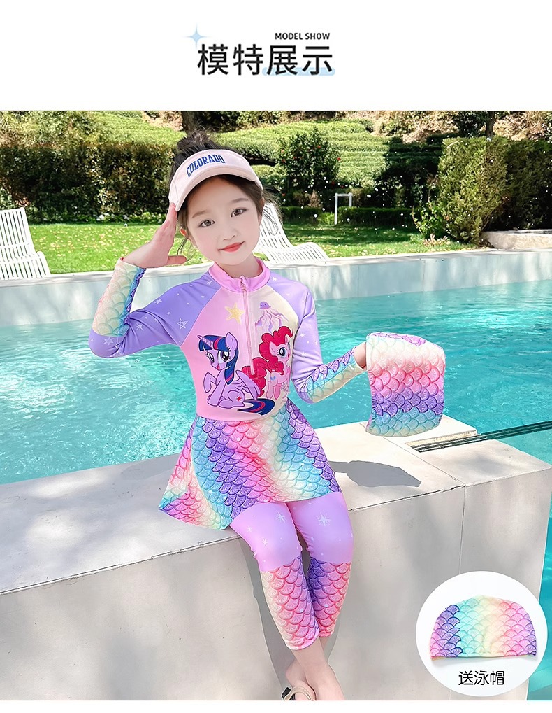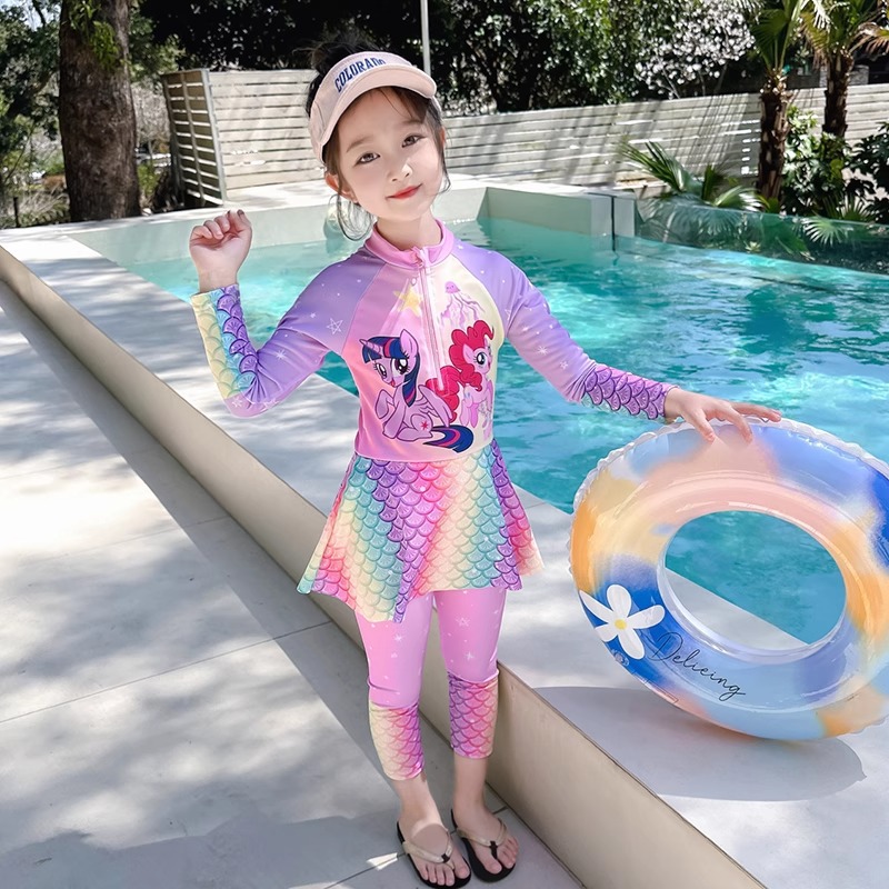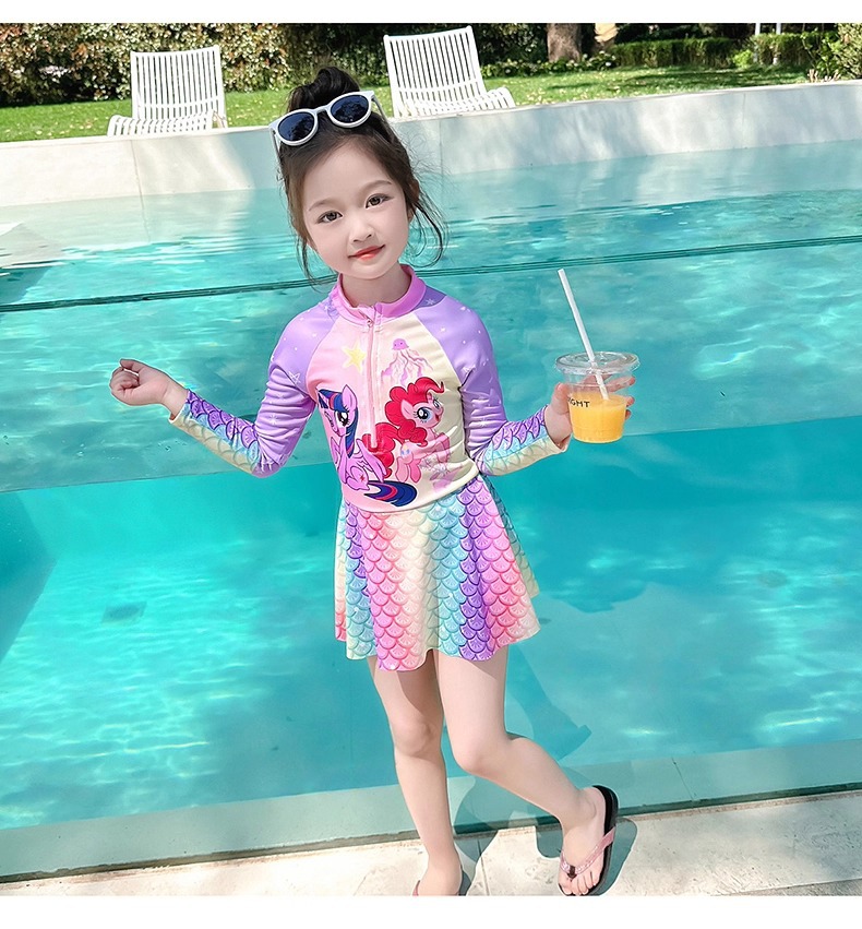 인어 어린이 수영복 소녀 마이 리틀 포니 스플릿 수영 스커트 작은 공주 아기 긴팔 자외선 차단제 속건성 수영복스토어 가기