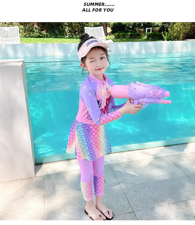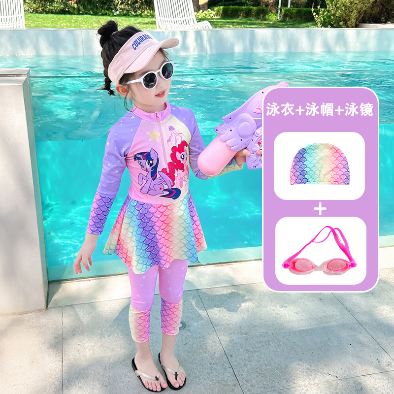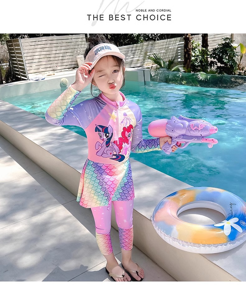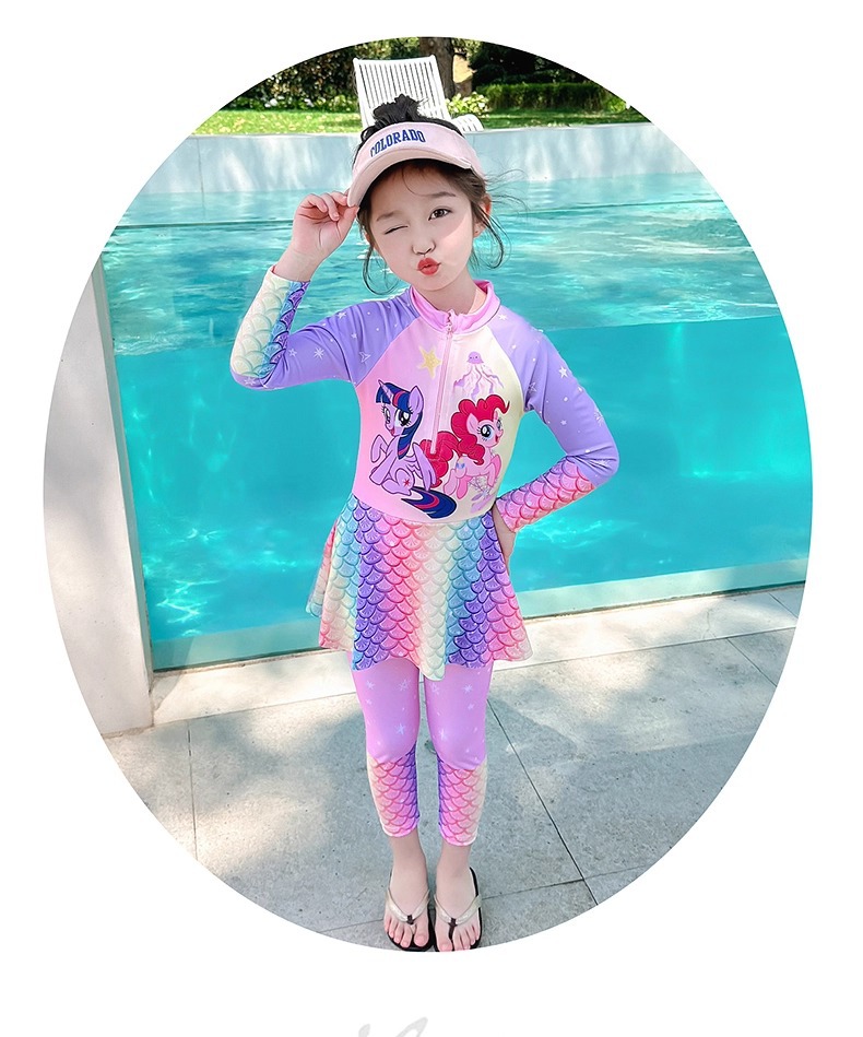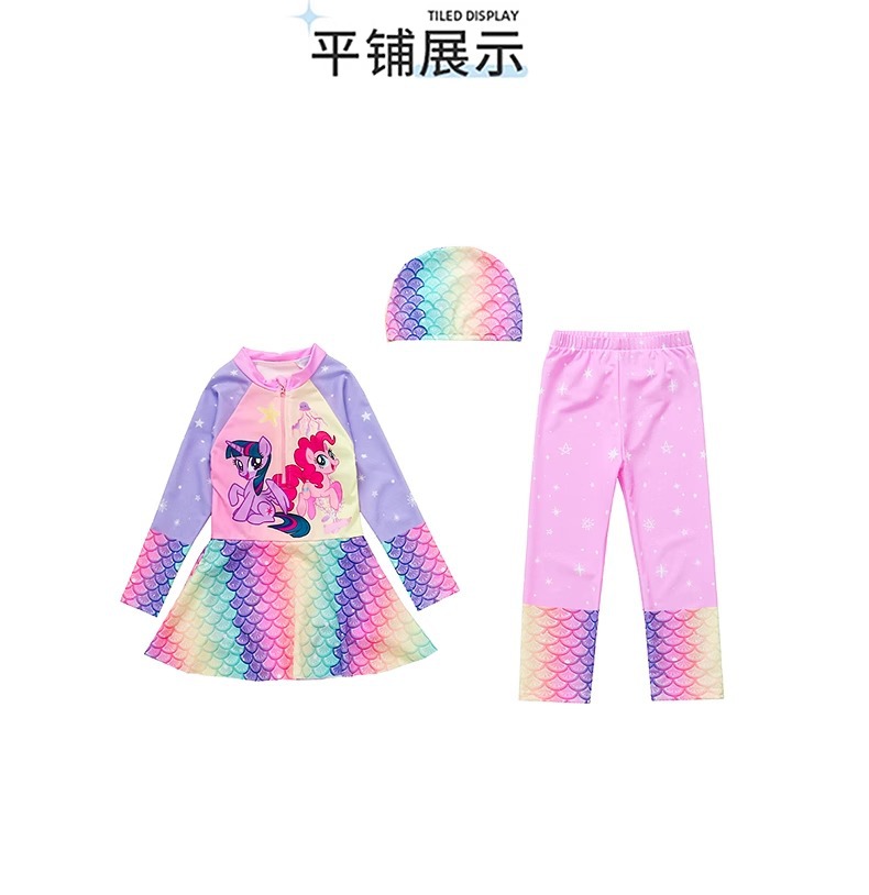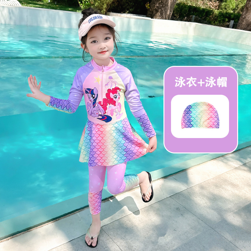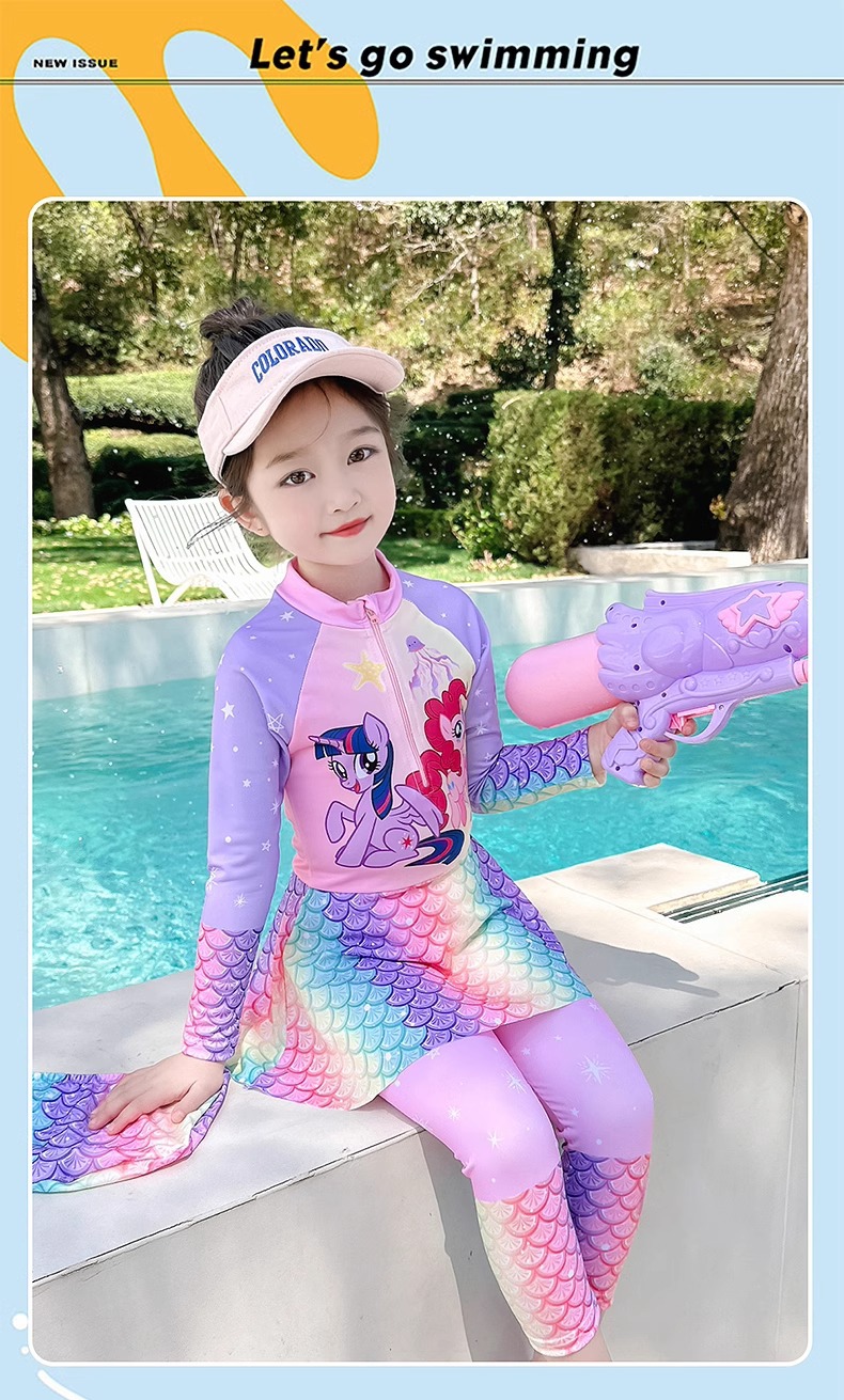 인어 어린이 수영복 소녀 마이 리틀 포니 스플릿 수영 스커트 작은 공주 아기 긴팔 자외선 차단제 속건성 수영복스토어 가기
