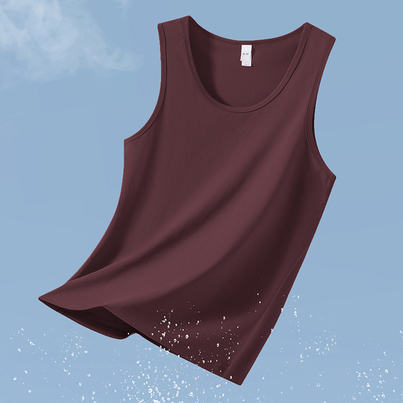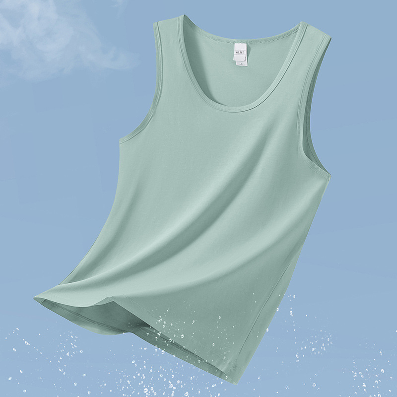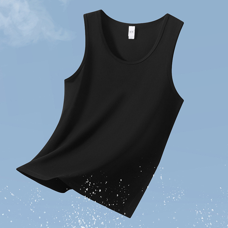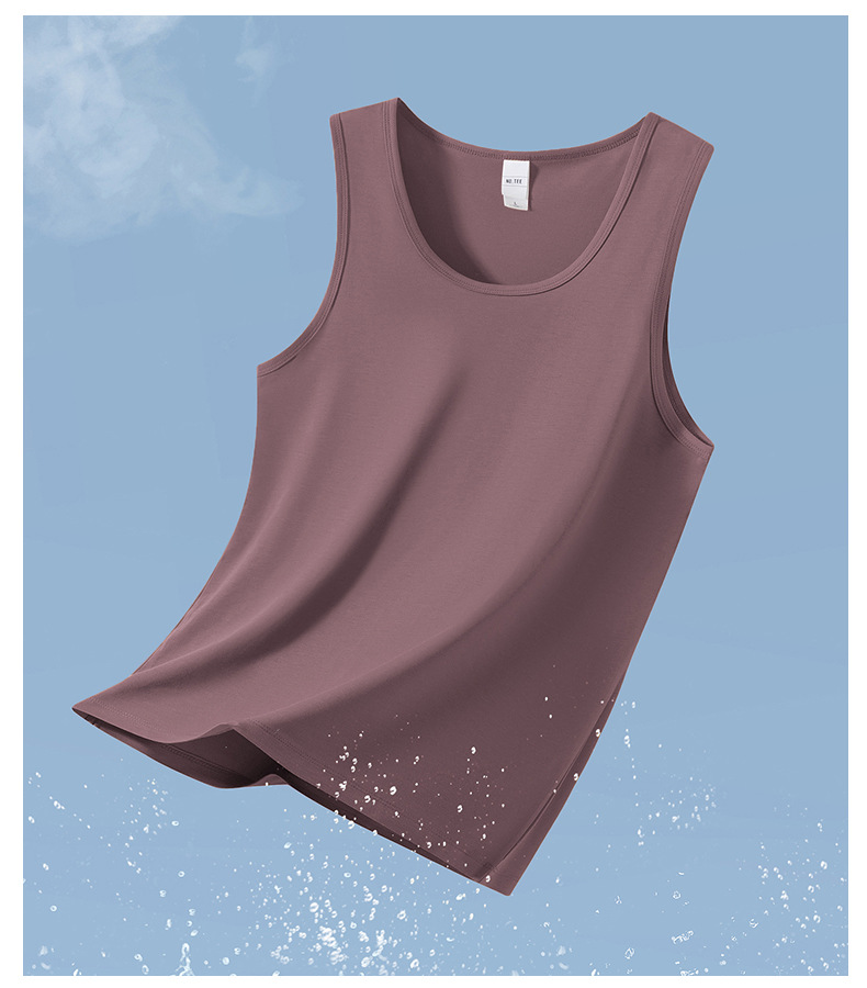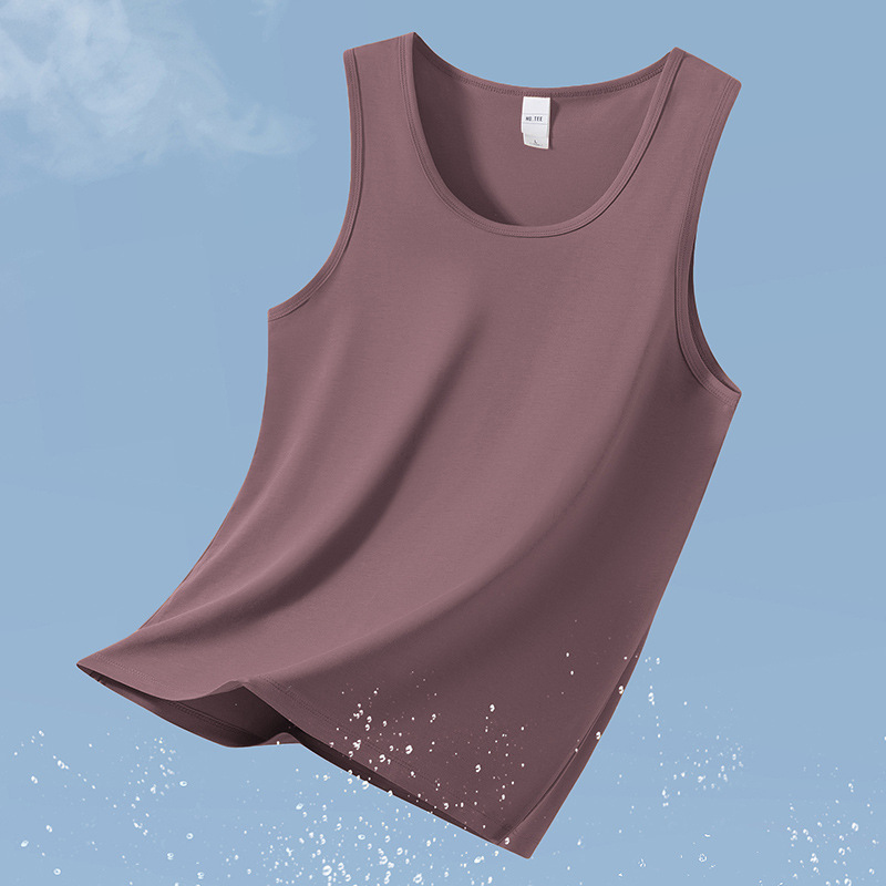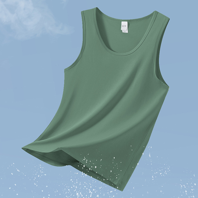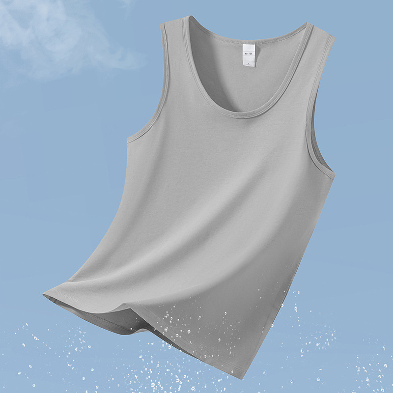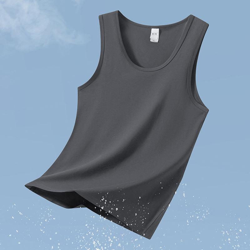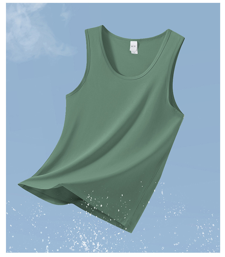 모달 조끼 남성 여름 피트니스 스포츠 얼음 실크 시원한 느낌 속건성 조끼 단색 항균 및 진드기 방지 민소매 슬링
