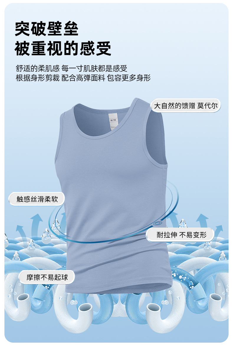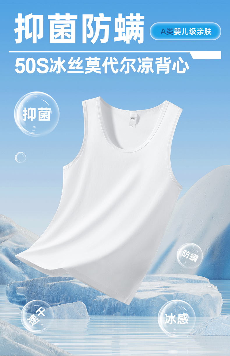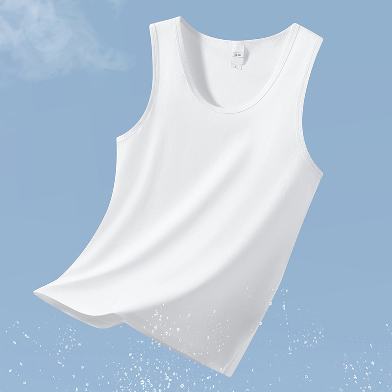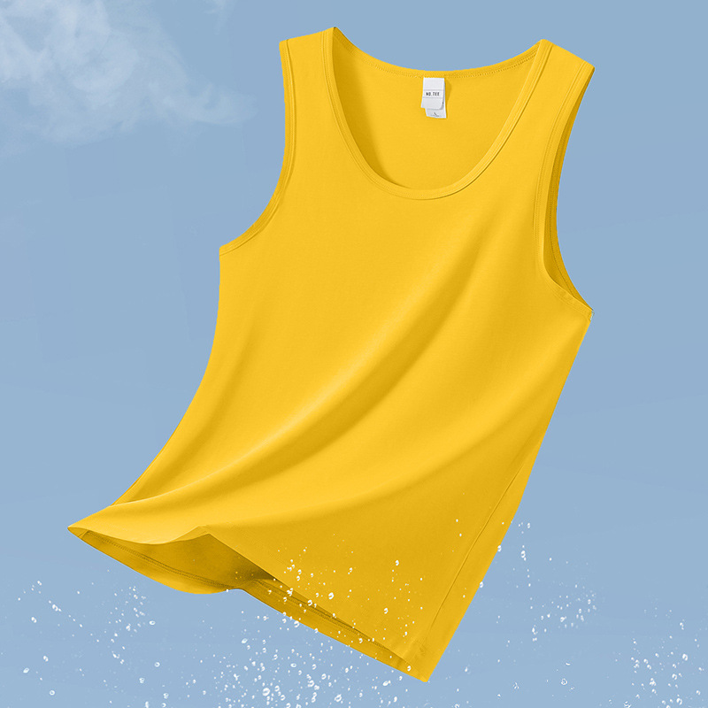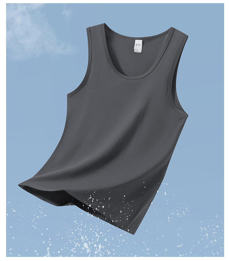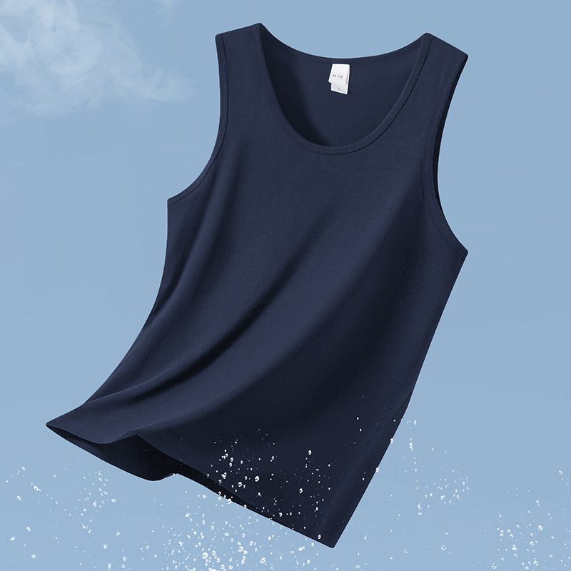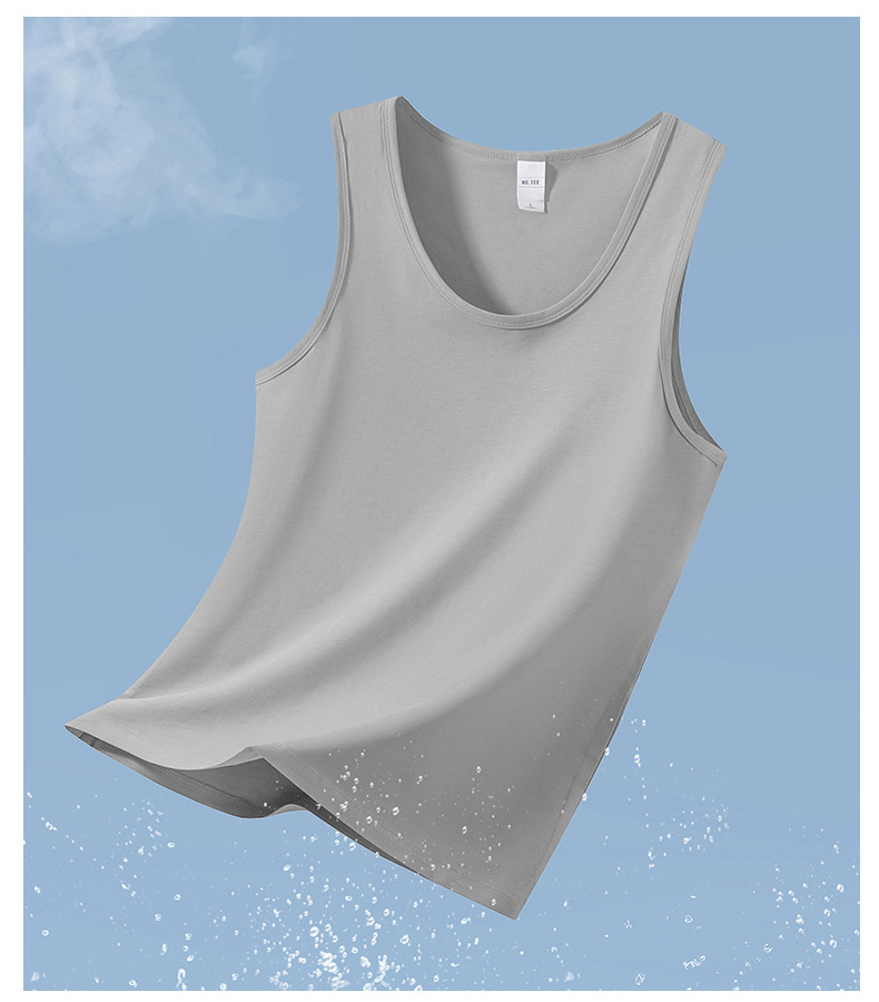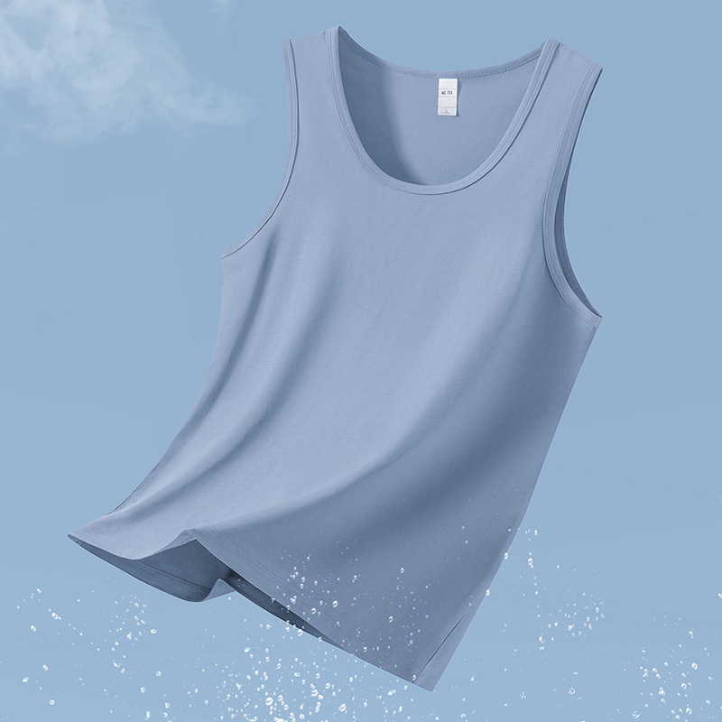 모달 조끼 남성 여름 피트니스 스포츠 얼음 실크 시원한 느낌 속건성 조끼 단색 항균 및 진드기 방지 민소매 슬링