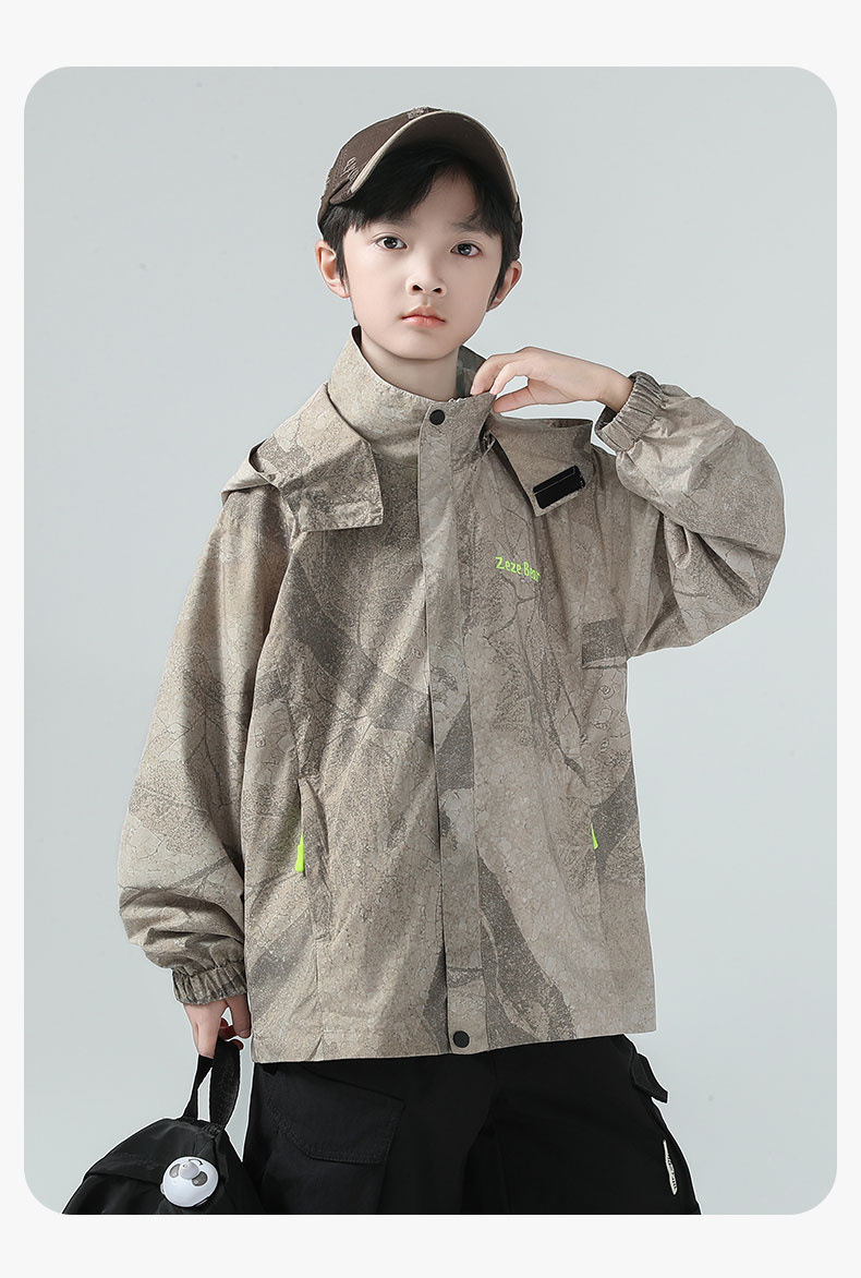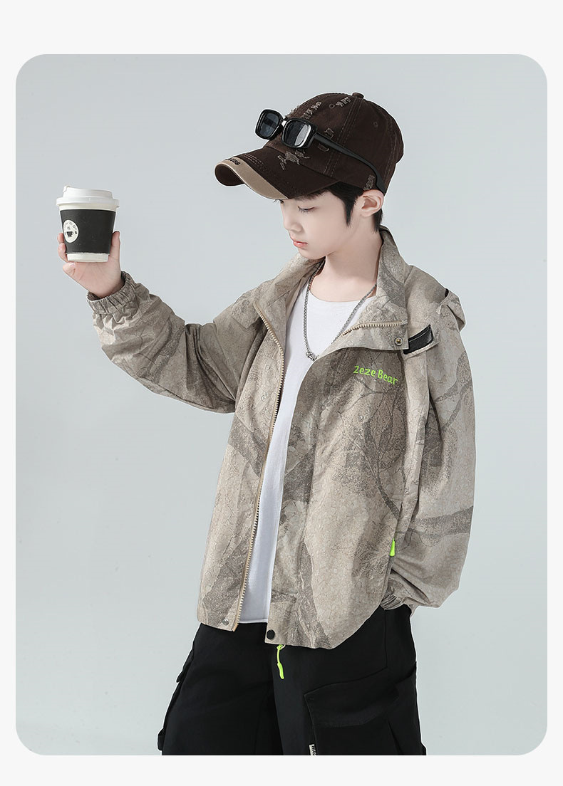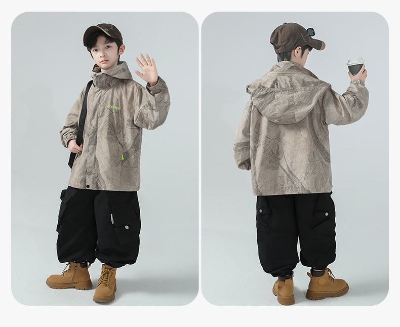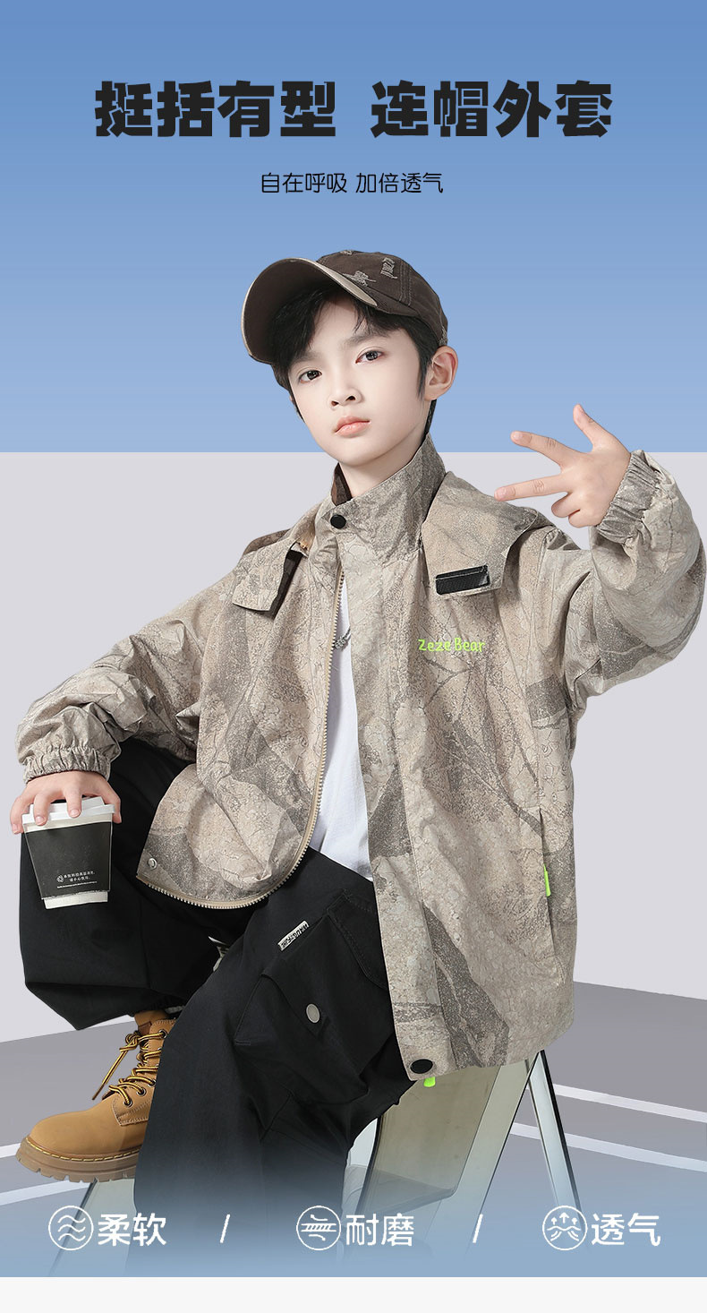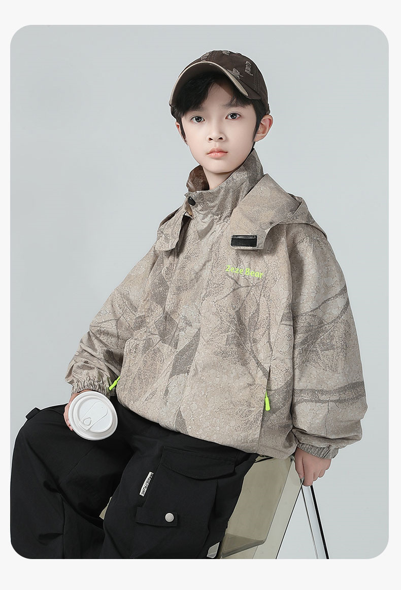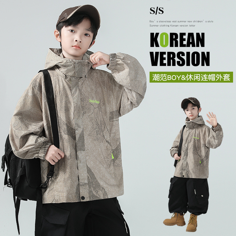 남아용 코트 2025 가을 신상 중대형 아동용 후드 재킷 어린 남자아이 프린트 상의 트렌디한 중간 길이 스타일스토어 가기