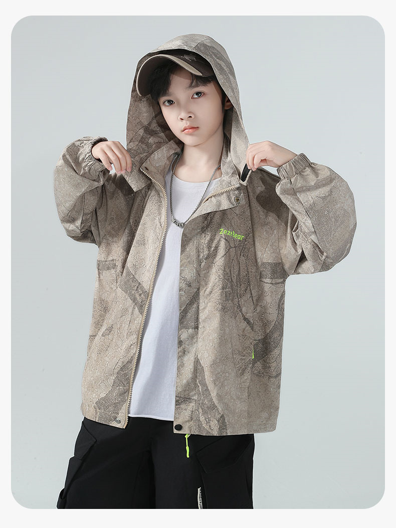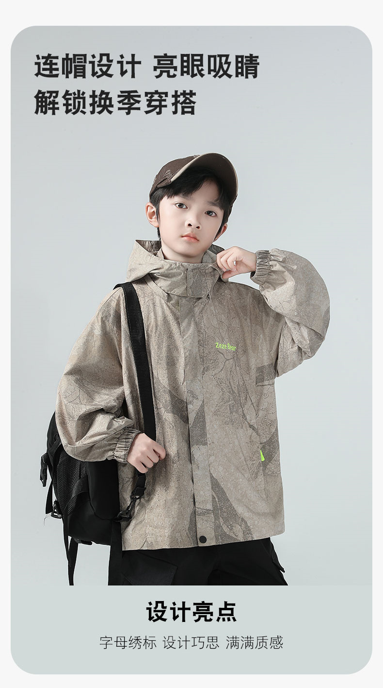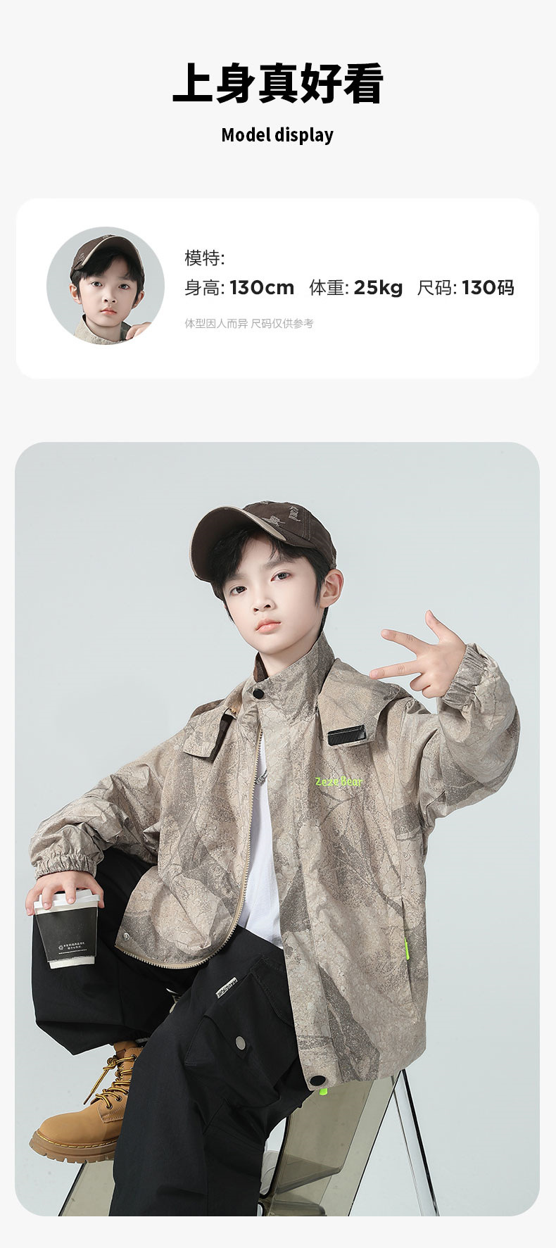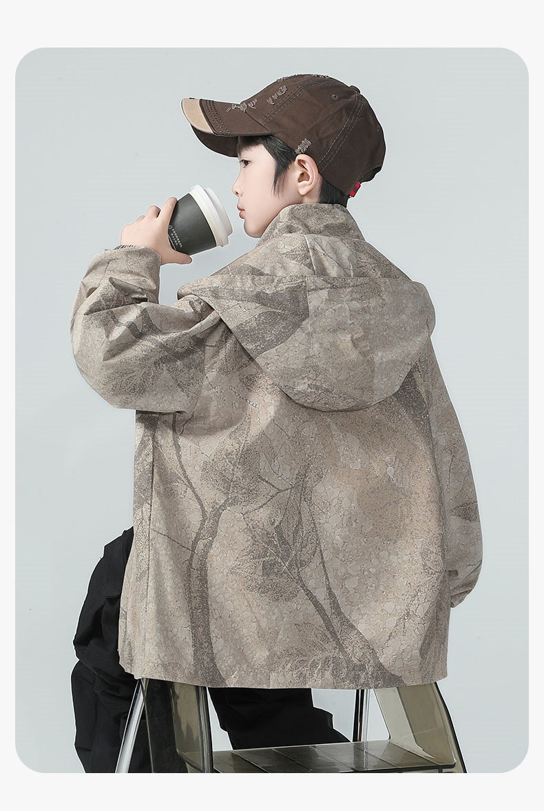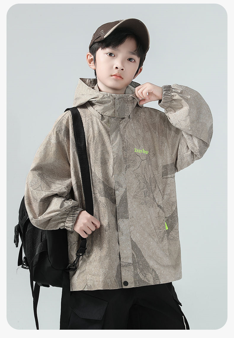 남아용 코트 2025 가을 신상 중대형 아동용 후드 재킷 어린 남자아이 프린트 상의 트렌디한 중간 길이 스타일스토어 가기
