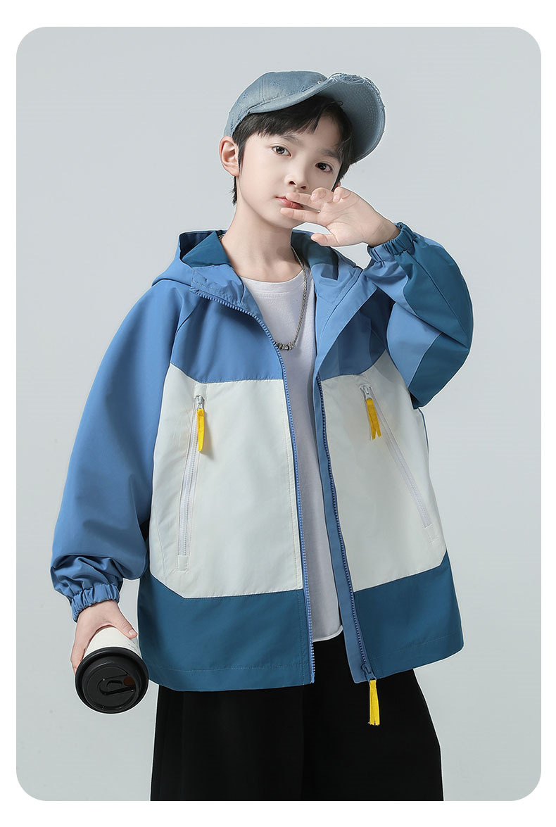 소년과 소녀 새로운 느슨한 지퍼 재킷 2025 가을 색상 매칭 한국 스타일 방풍 야외 후드 재킷