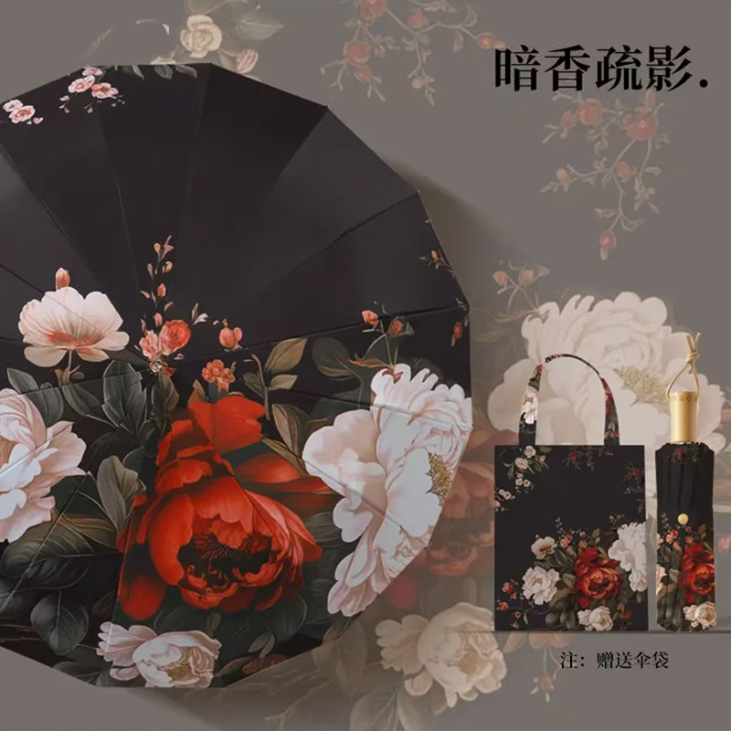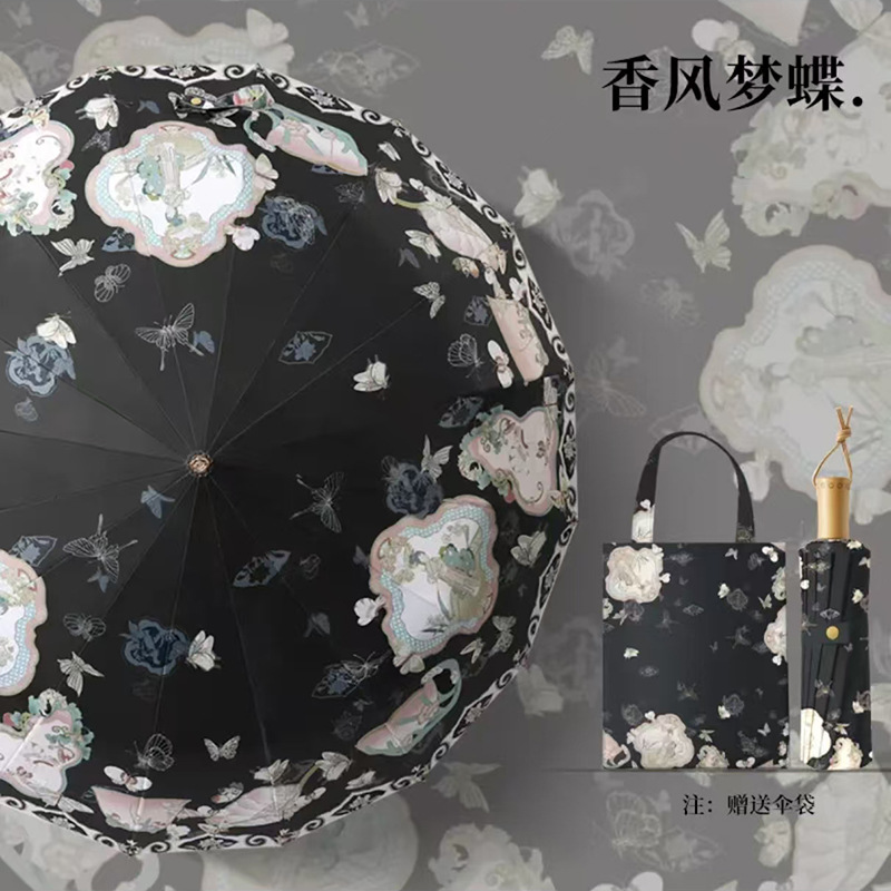 앰버의 새로운 중국 스타일 더블 레이어 16 뼈 자외선 차단제 태양 우산, 비 또는 빛, 여성용 자외선 차단 플러스 사이즈 파라솔스토어 가기