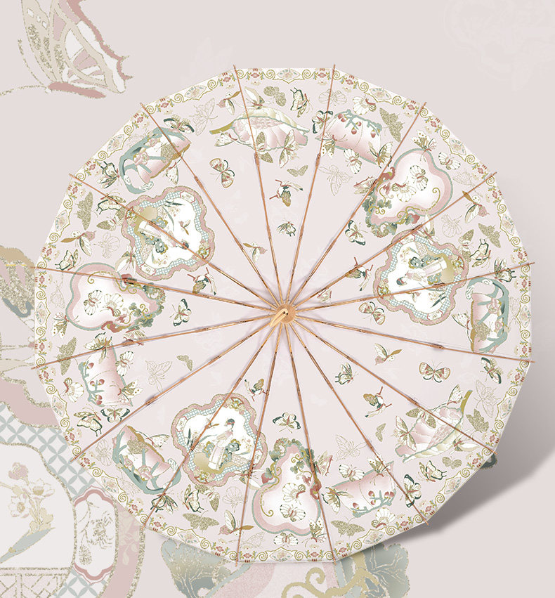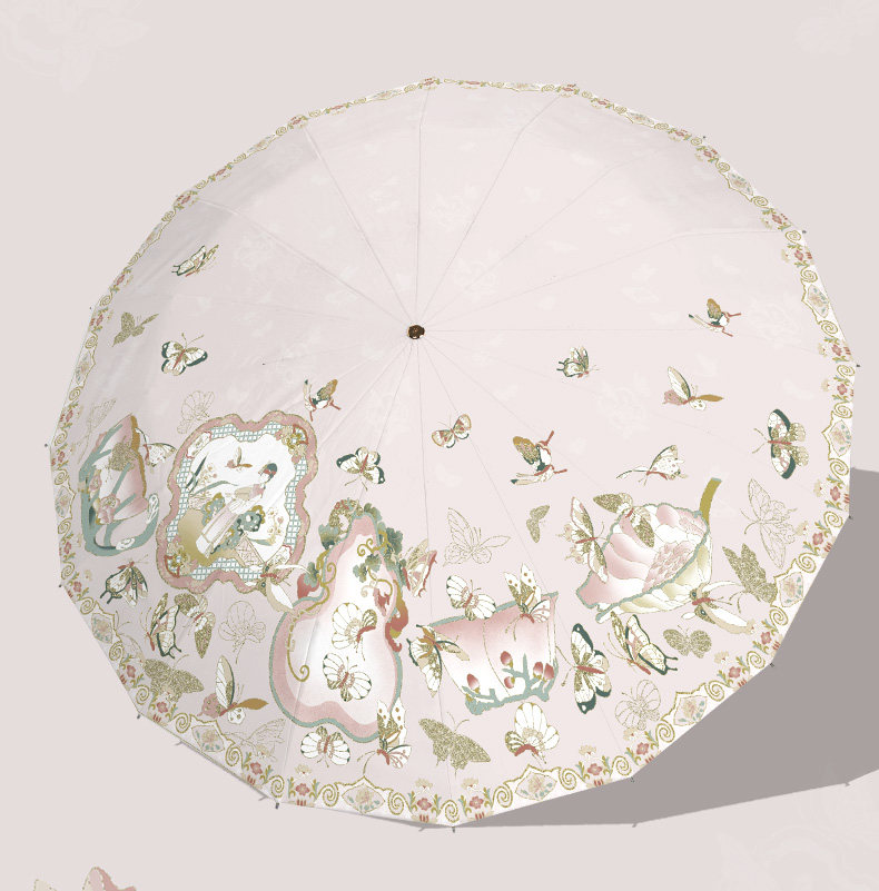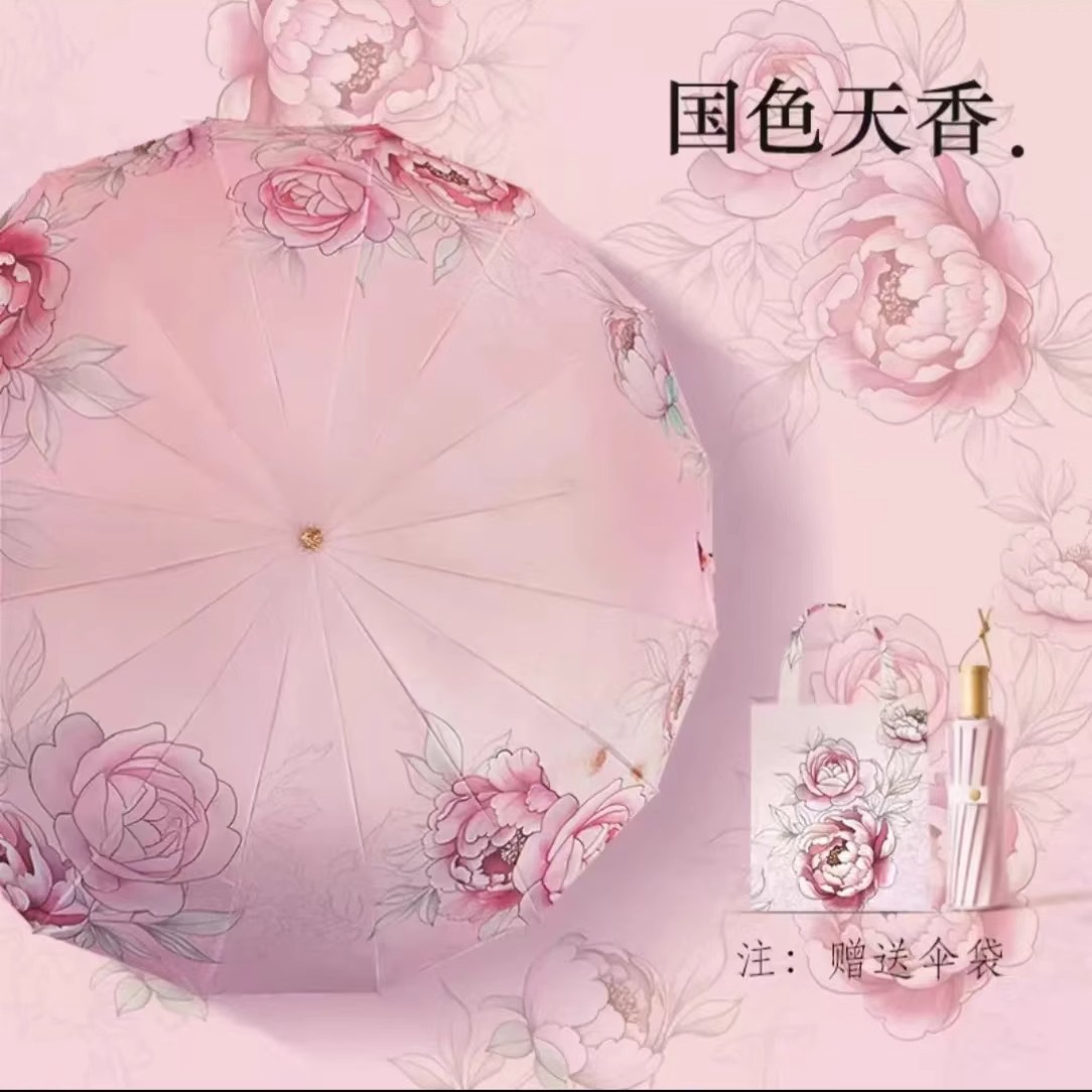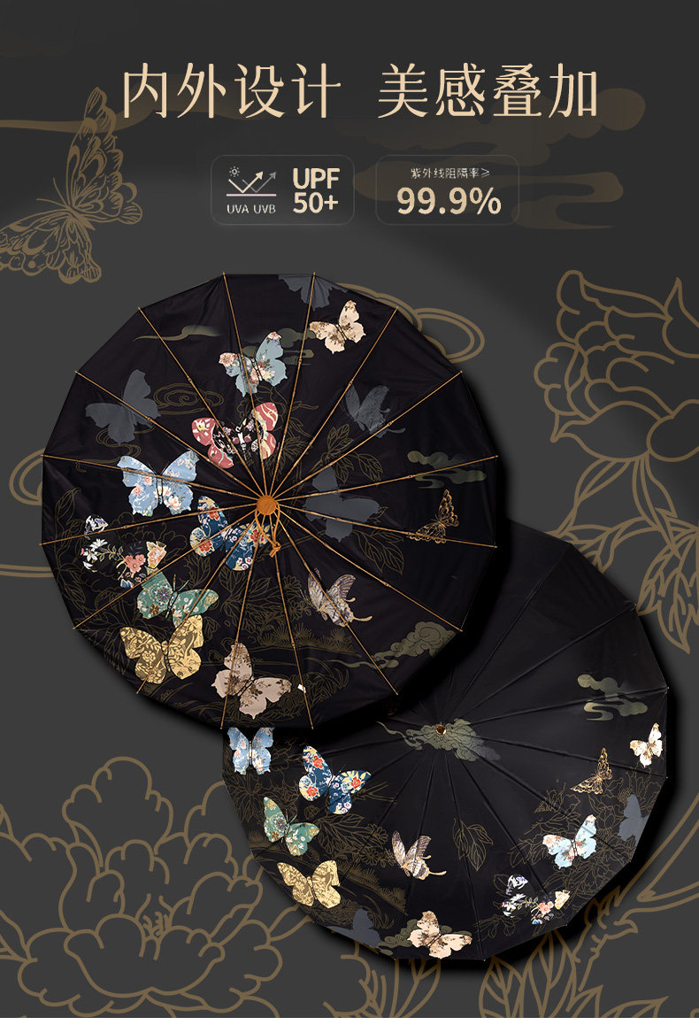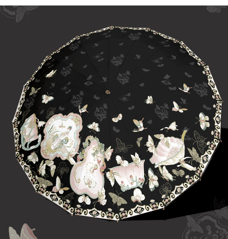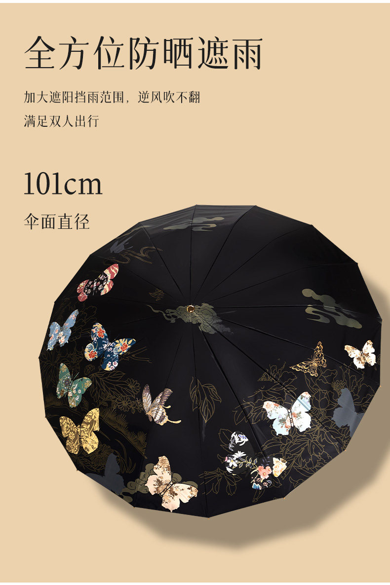 앰버의 새로운 중국 스타일 더블 레이어 16 뼈 자외선 차단제 태양 우산, 비 또는 빛, 여성용 자외선 차단 플러스 사이즈 파라솔