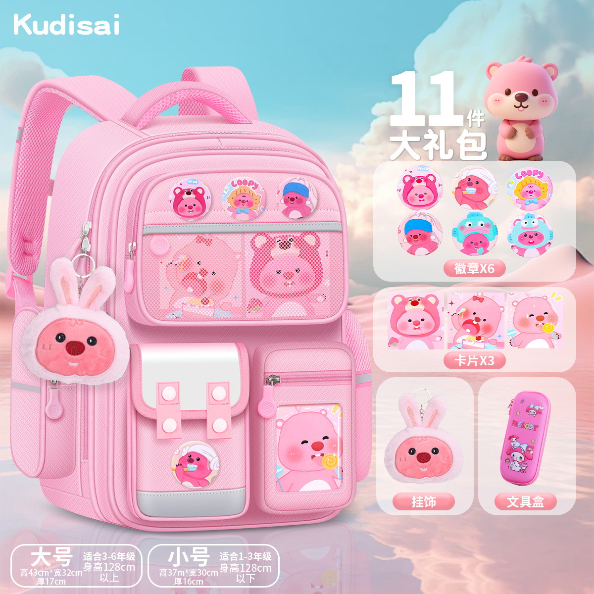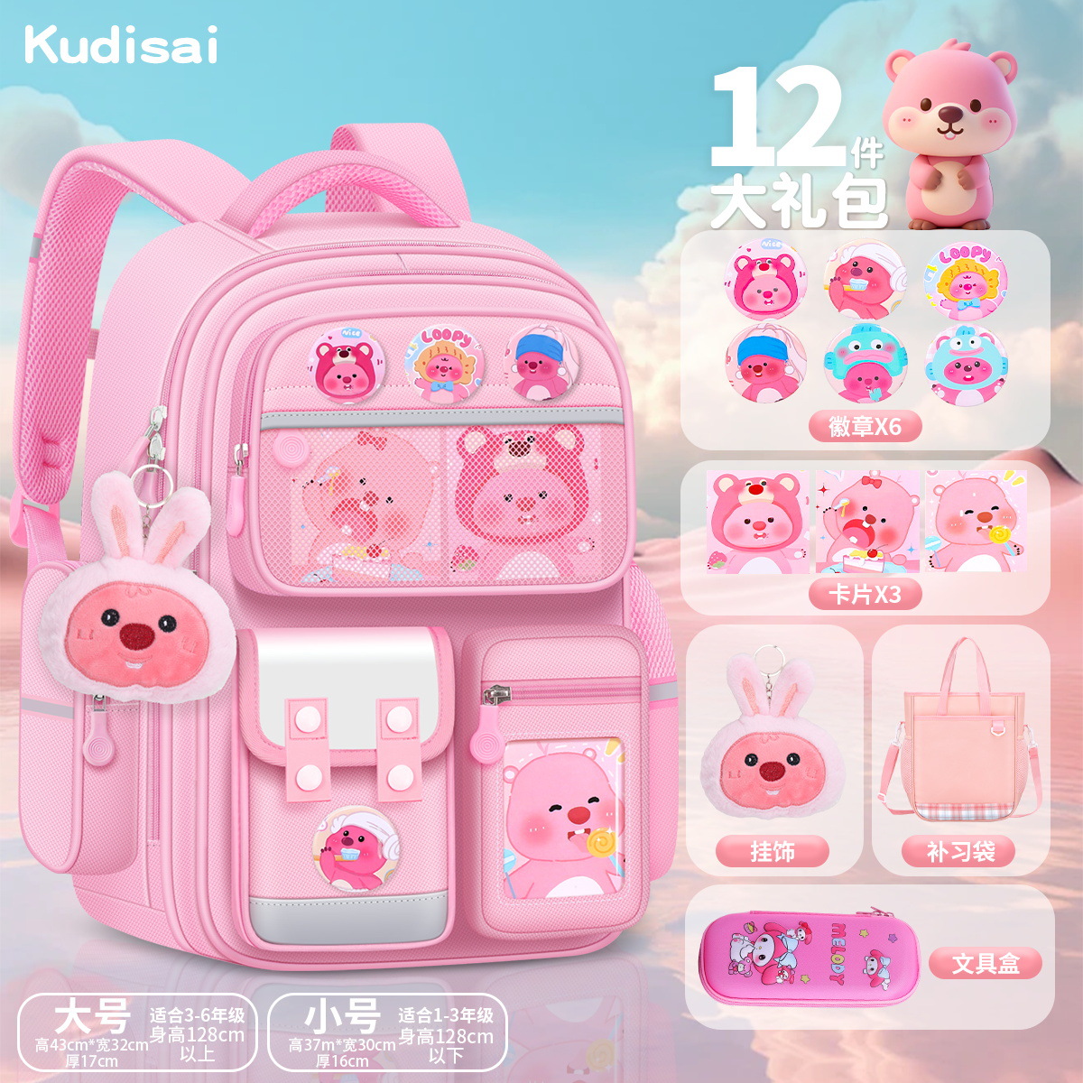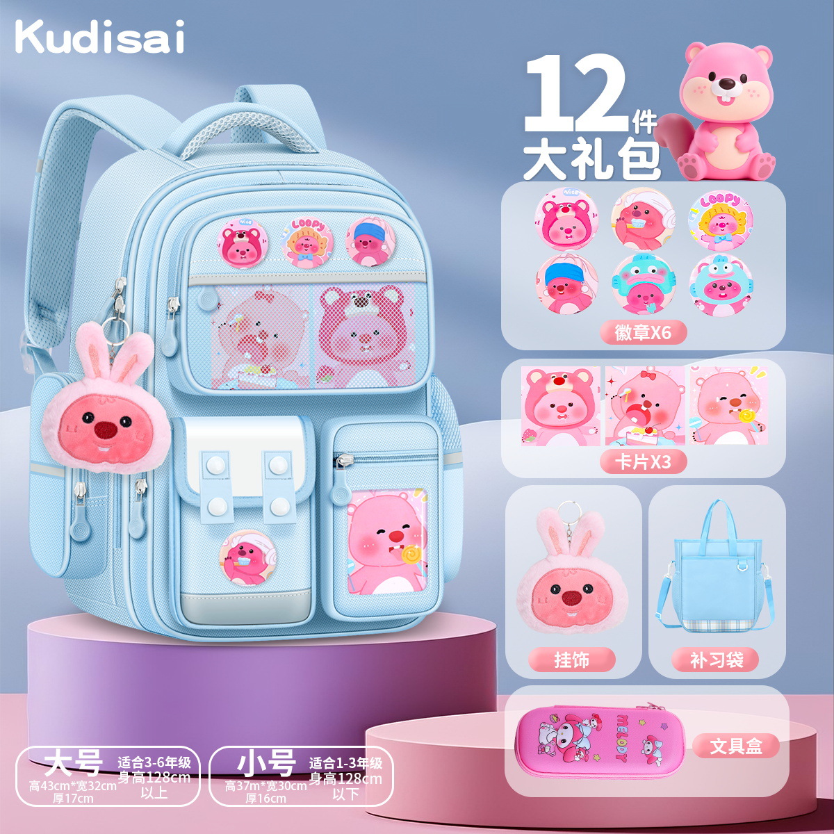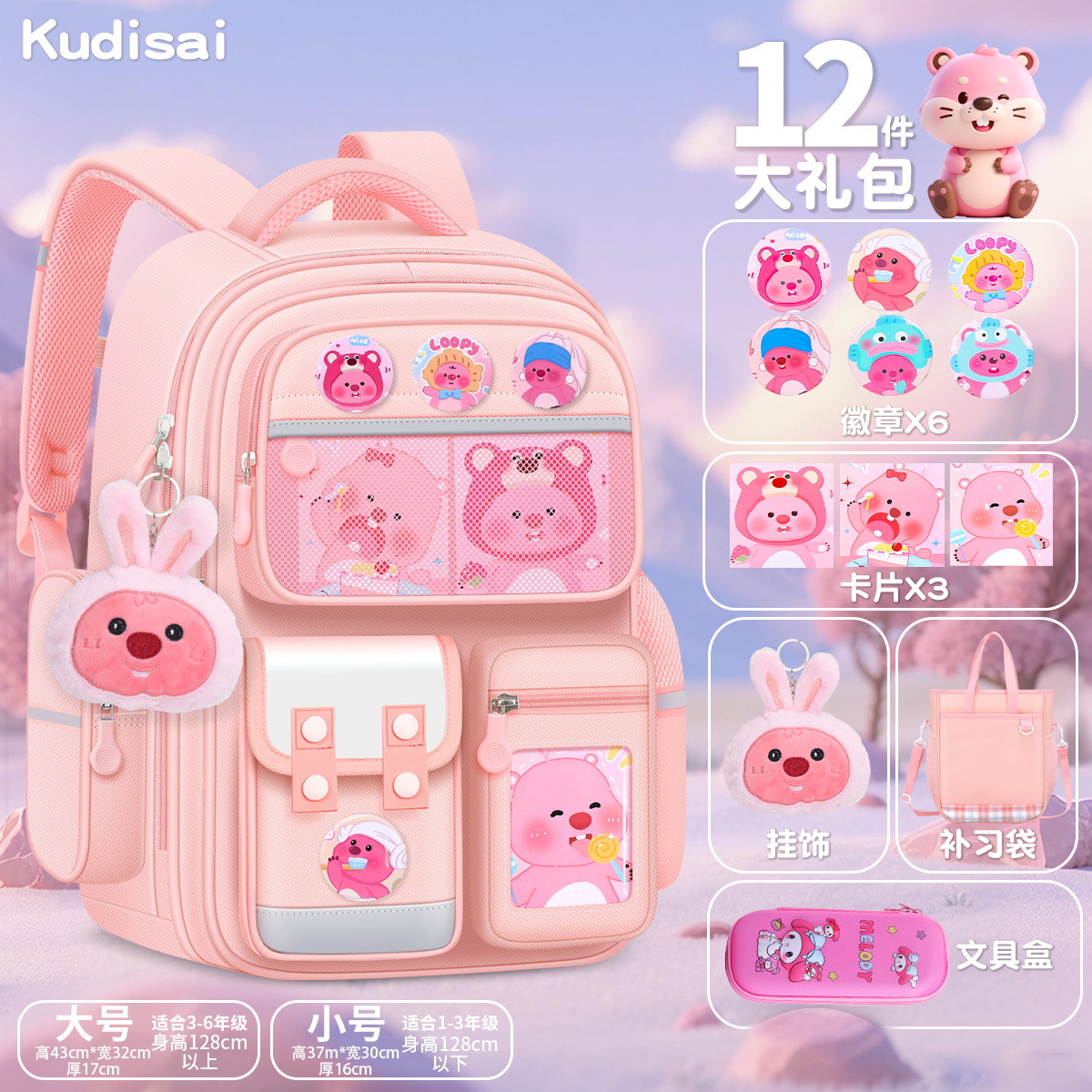 1, 2, 3~6학년 여아를 위한 새로운 어린이 책가방 비버 루비 경량 대용량 배낭스토어 가기