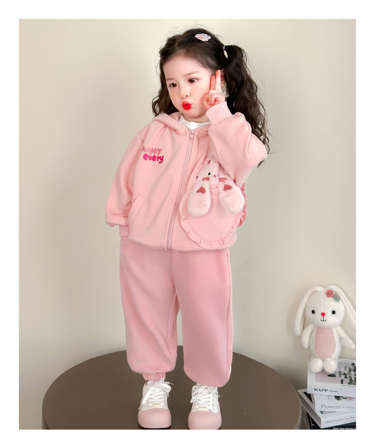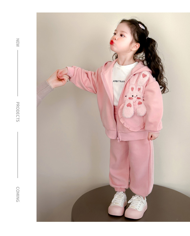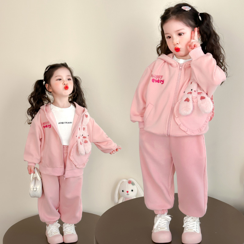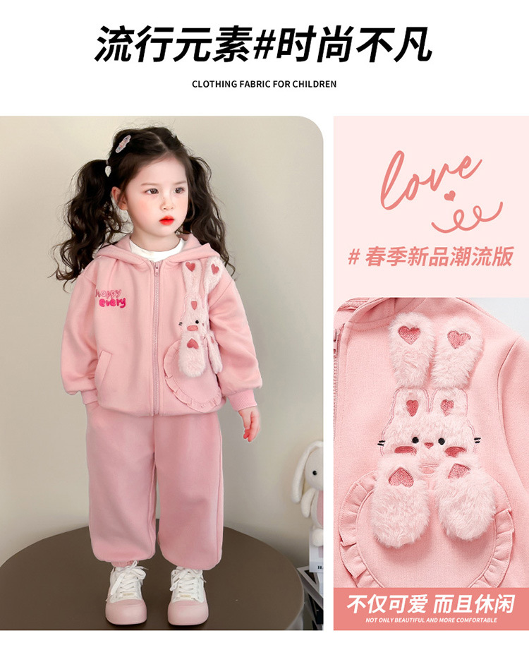어린이 봄, 가을 정장 2025 봄 새 여자 한국 후드 티셔츠 재킷 아기 소녀 스포츠 투피스 세트