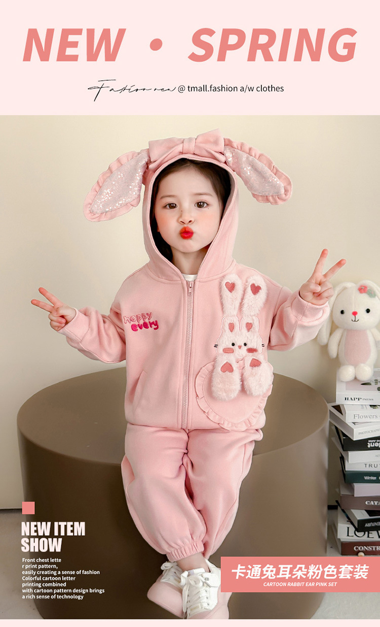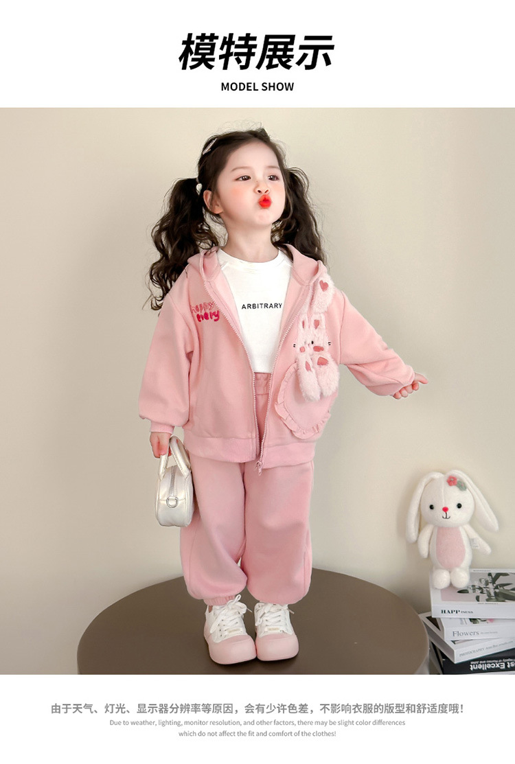 어린이 봄, 가을 정장 2025 봄 새 여자 한국 후드 티셔츠 재킷 아기 소녀 스포츠 투피스 세트스토어 가기