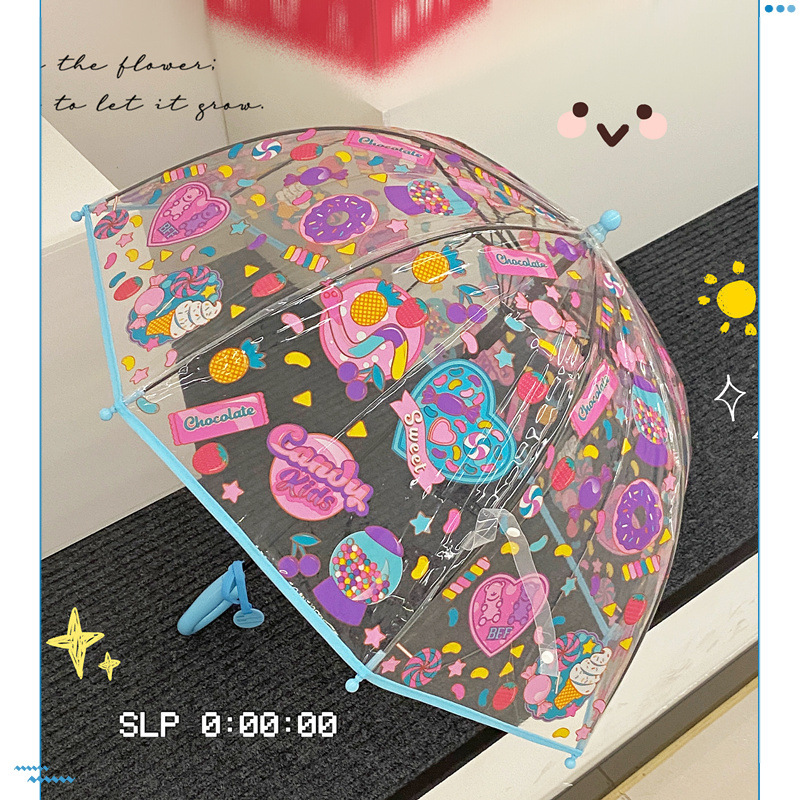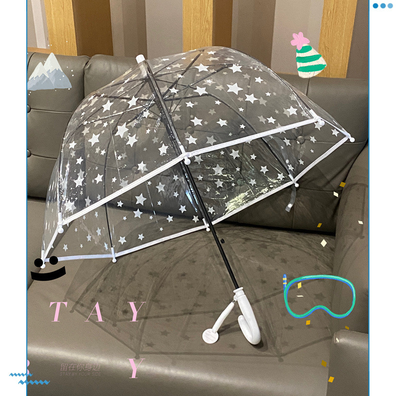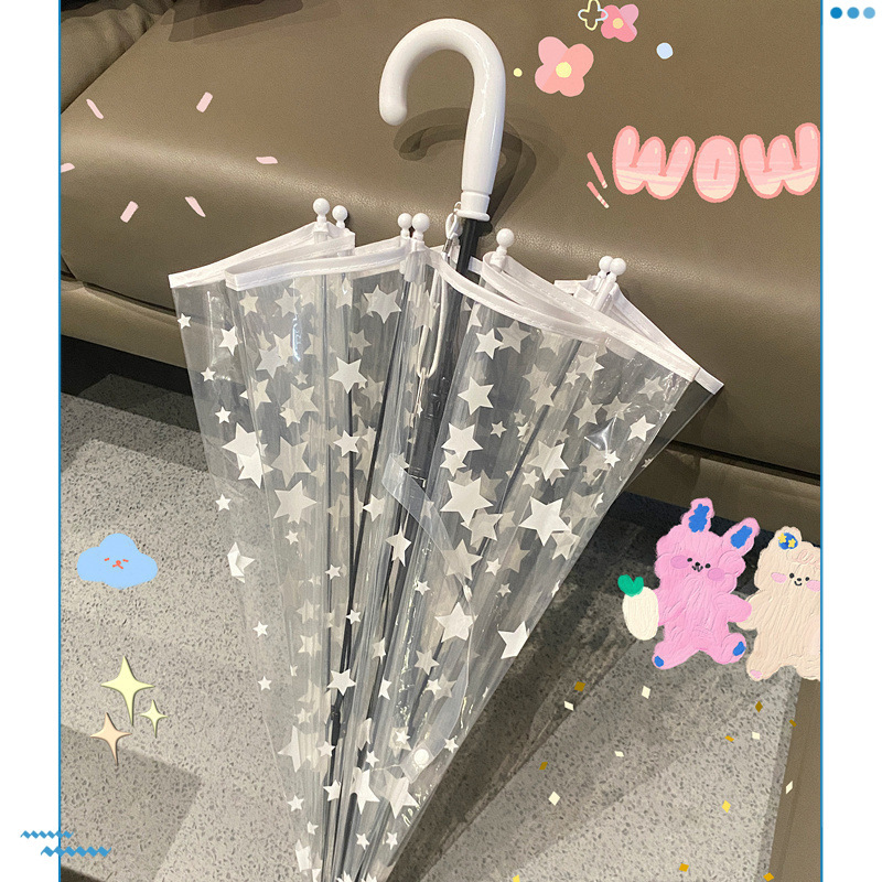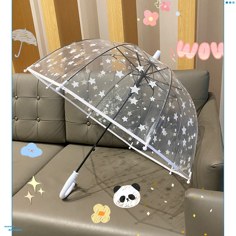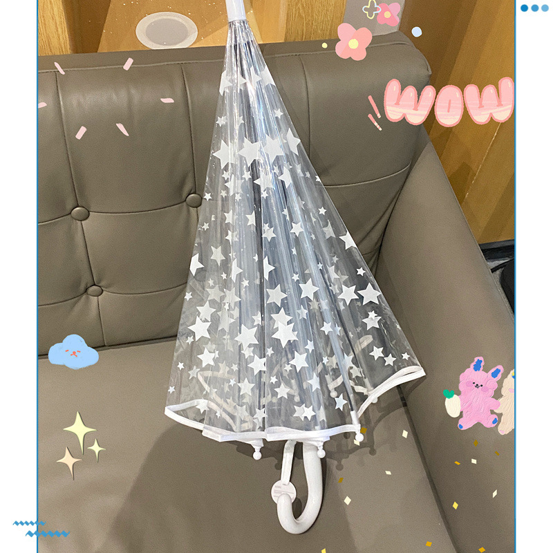 귀여운 두꺼운 틈새 우산, 긴 손잡이 우산, 투명 우산, 아기 별 장식, 어린이 두꺼운 직선 우산