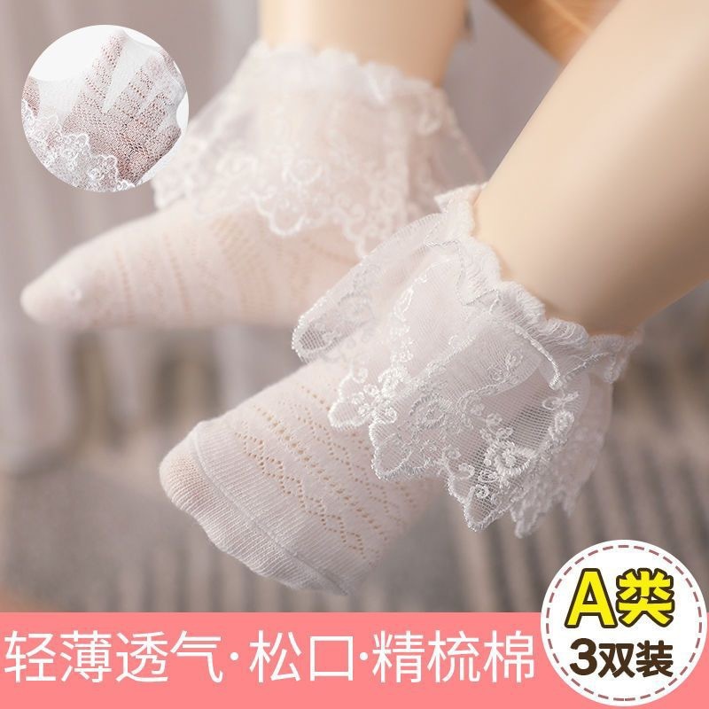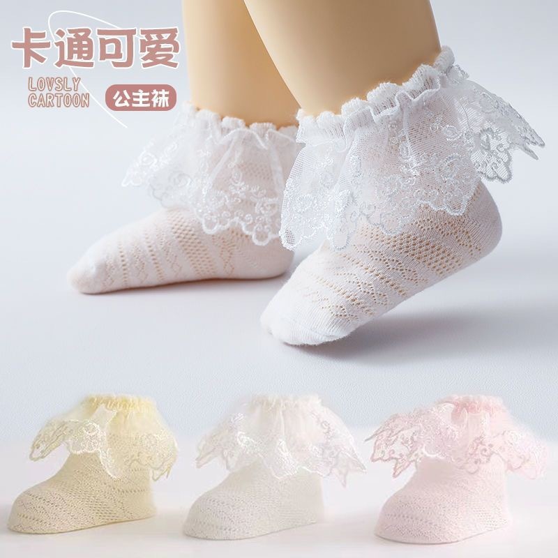 여름용 여아용 아기 양말, 얇은 레이스 양말, 봄 여름 통기성 메쉬 여아용 레이스 양말, 드롭 배송스토어 가기