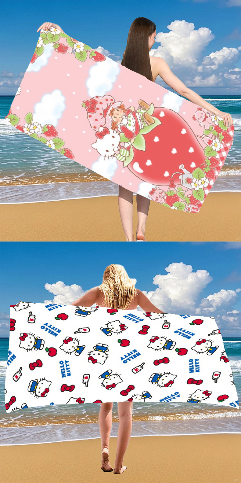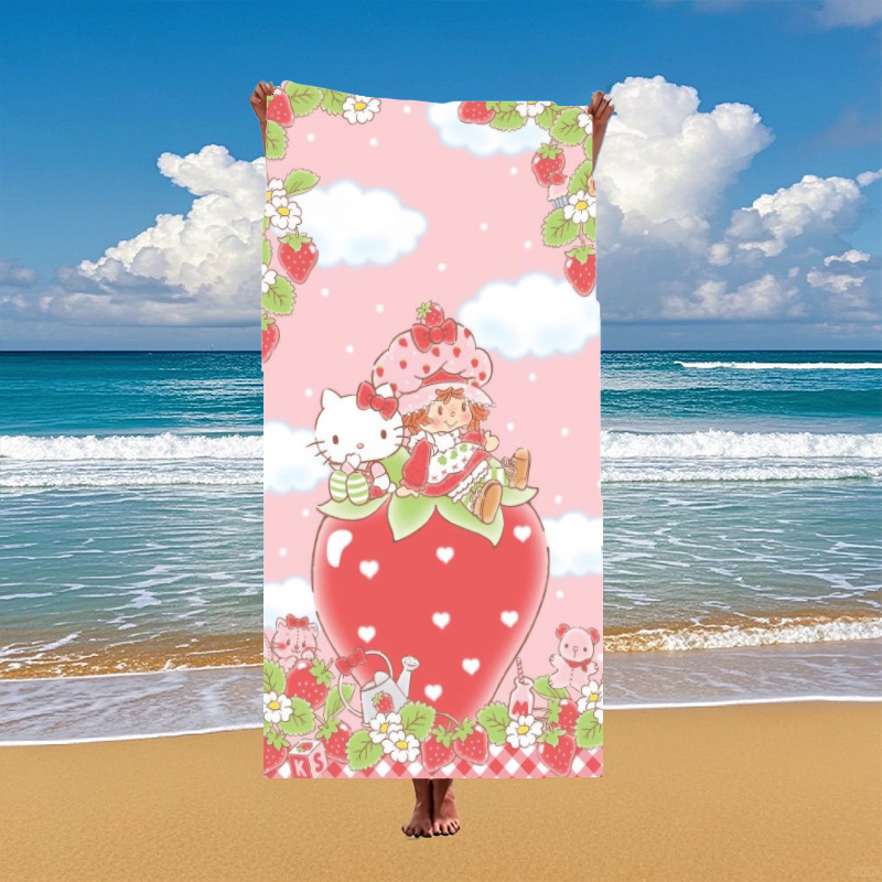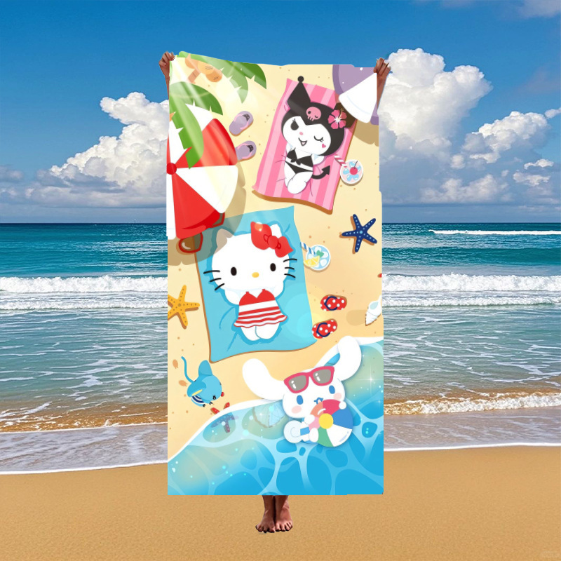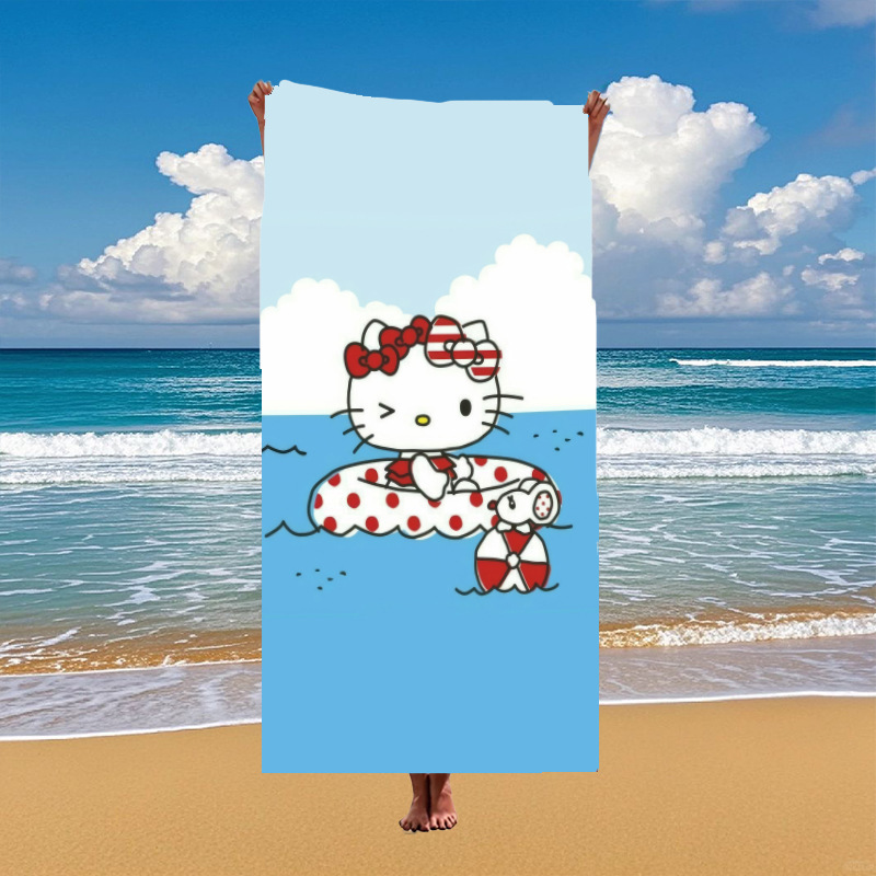 국경 간 만화 헬로 키티 패턴 마이크로 화이버 디지털 인쇄 비치 타월 스포츠 속건성 목욕 타월스토어 가기