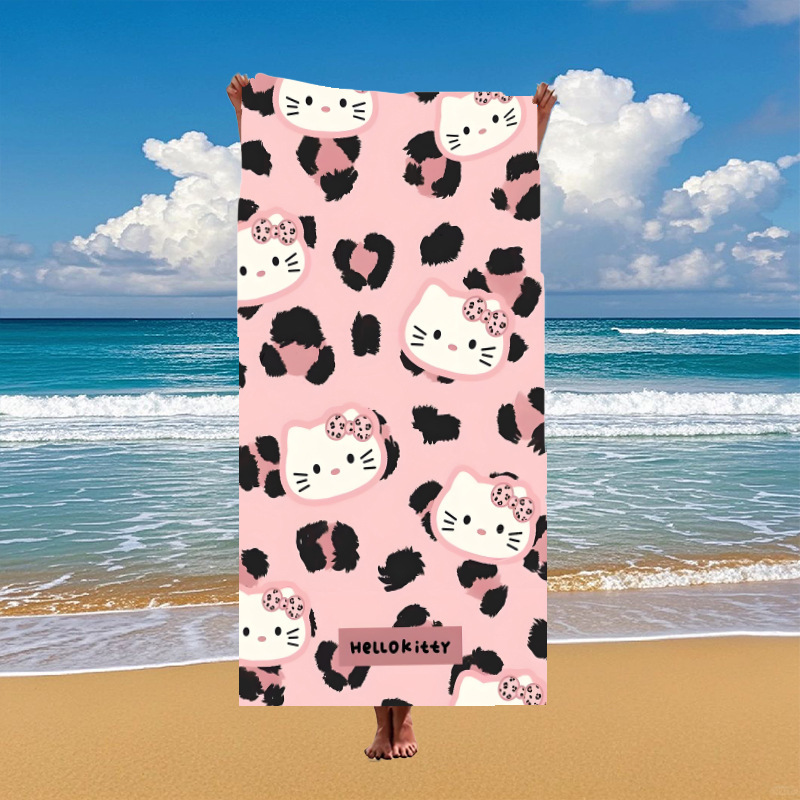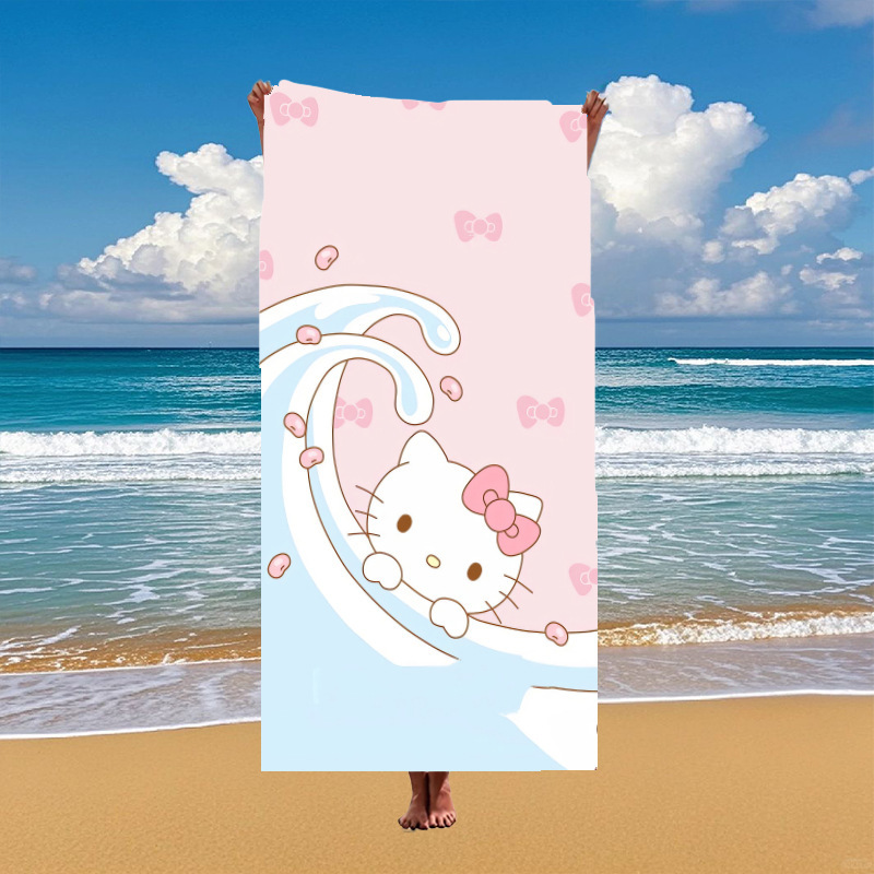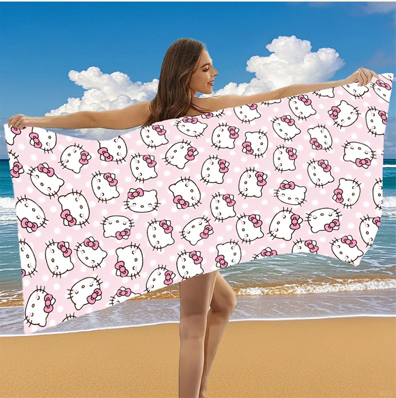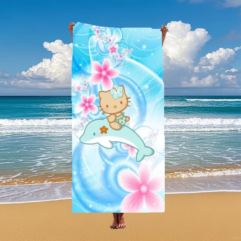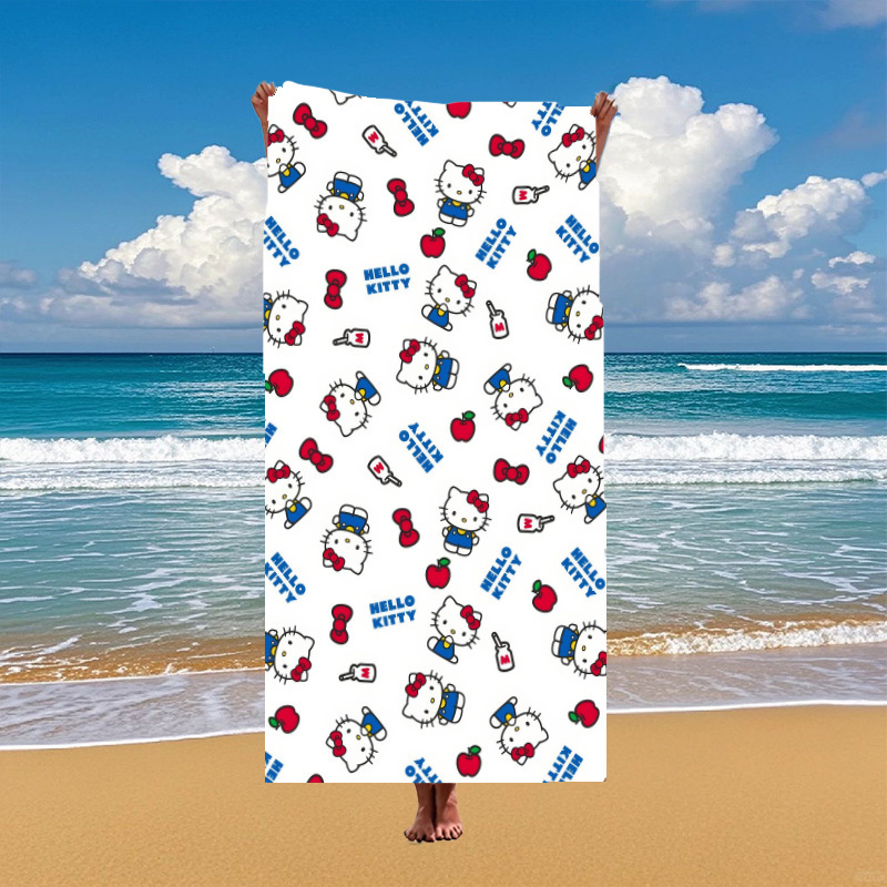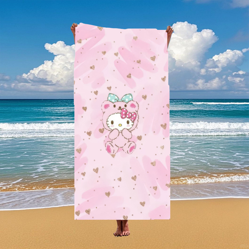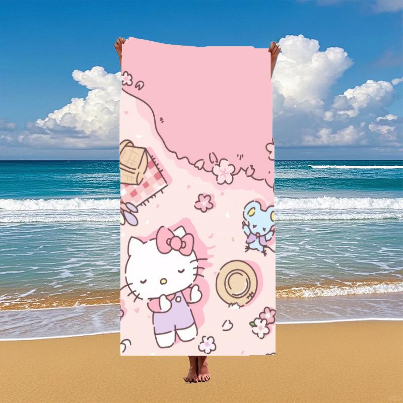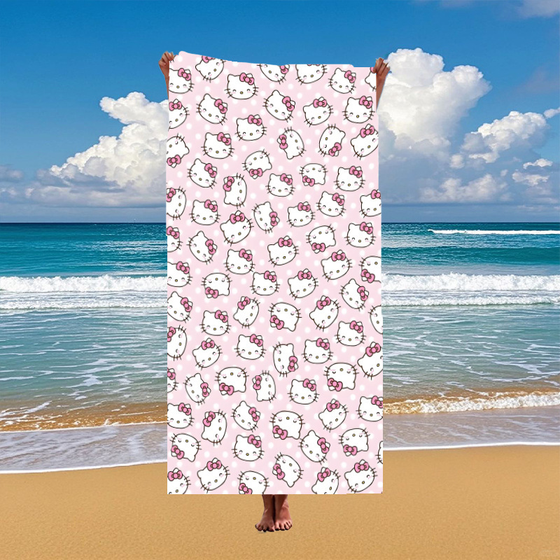 국경 간 만화 헬로 키티 패턴 마이크로 화이버 디지털 인쇄 비치 타월 스포츠 속건성 목욕 타월