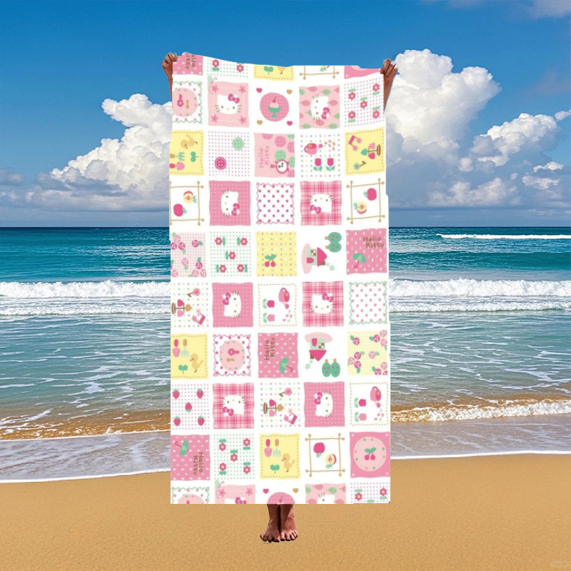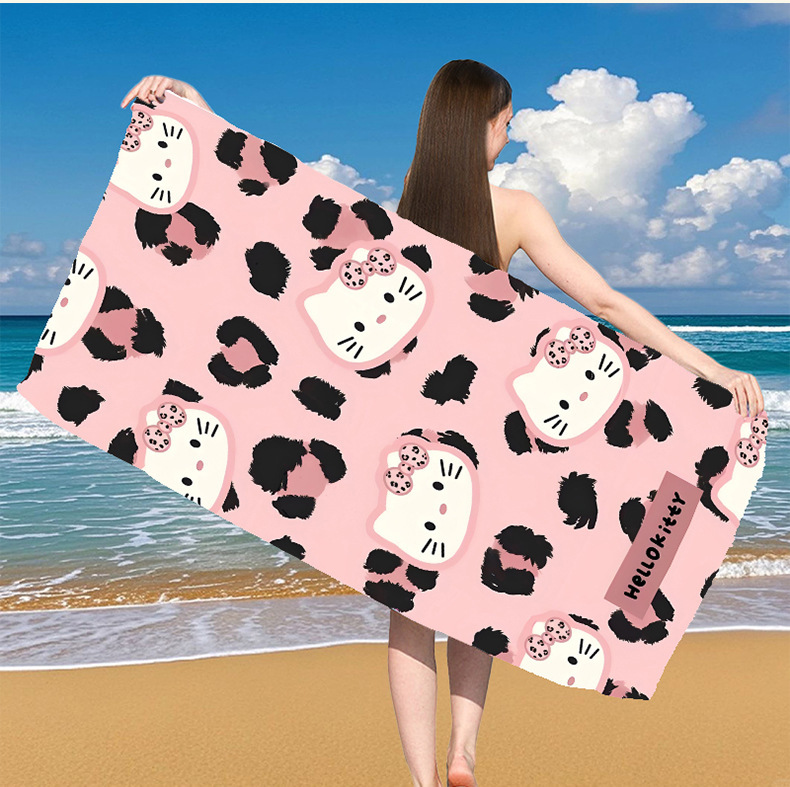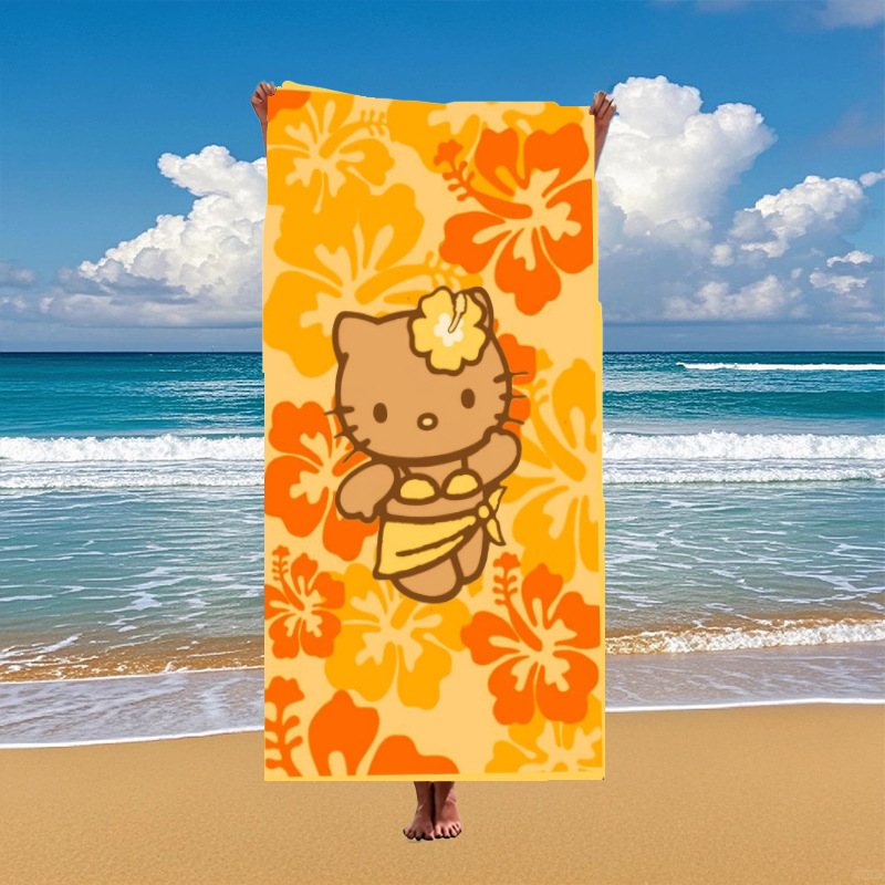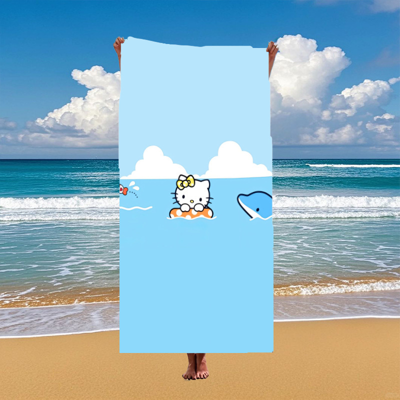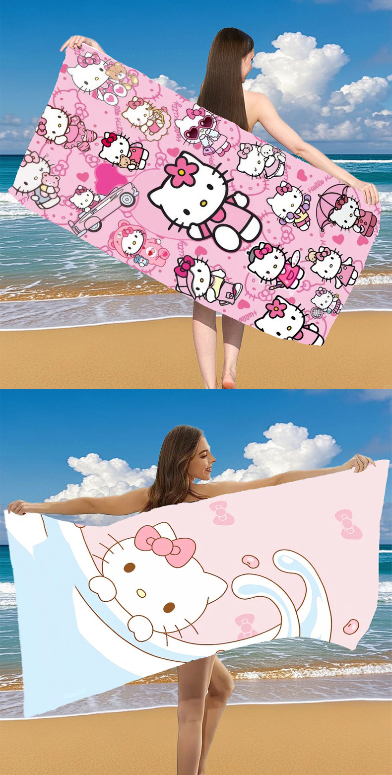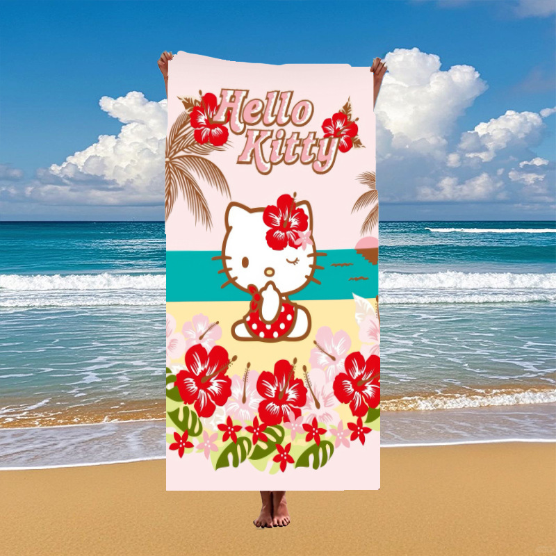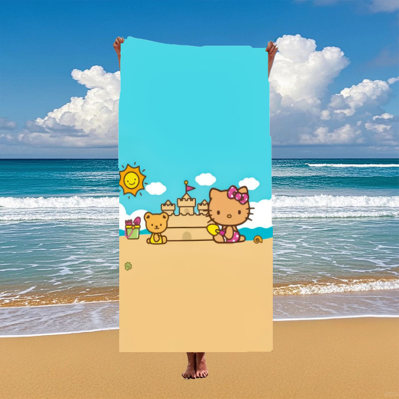 국경 간 만화 헬로 키티 패턴 마이크로 화이버 디지털 인쇄 비치 타월 스포츠 속건성 목욕 타월