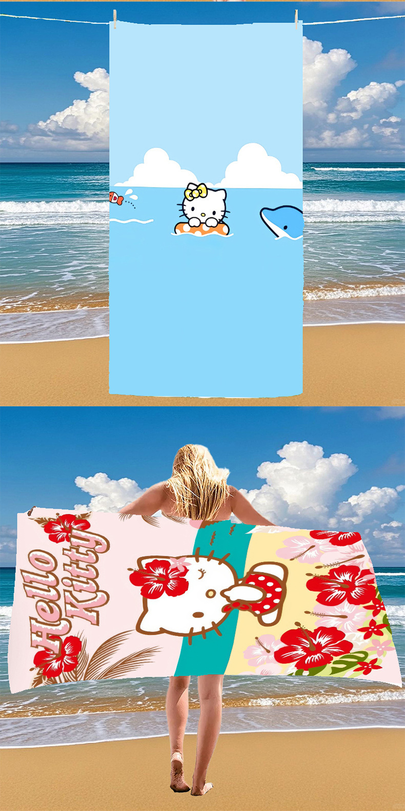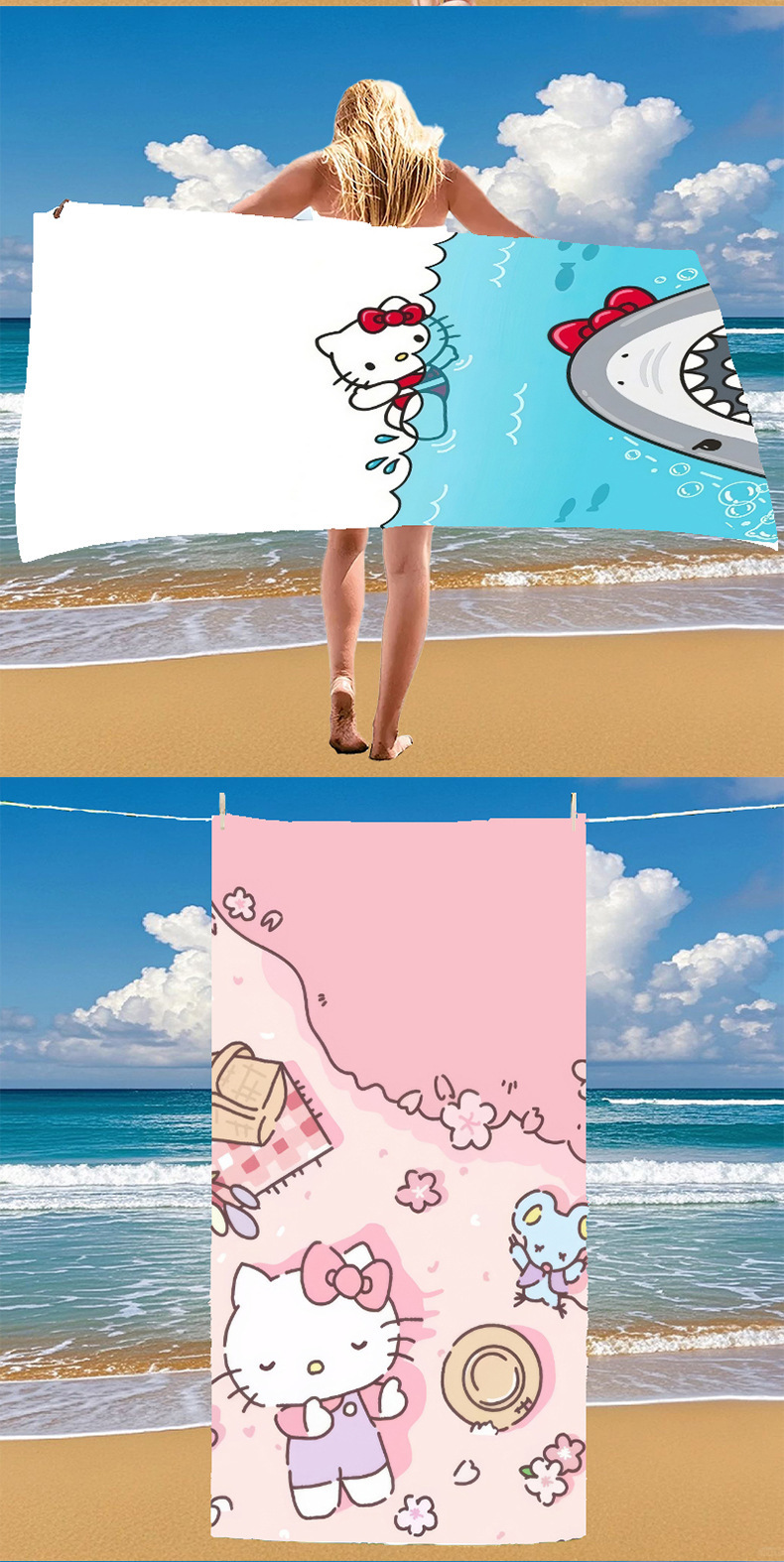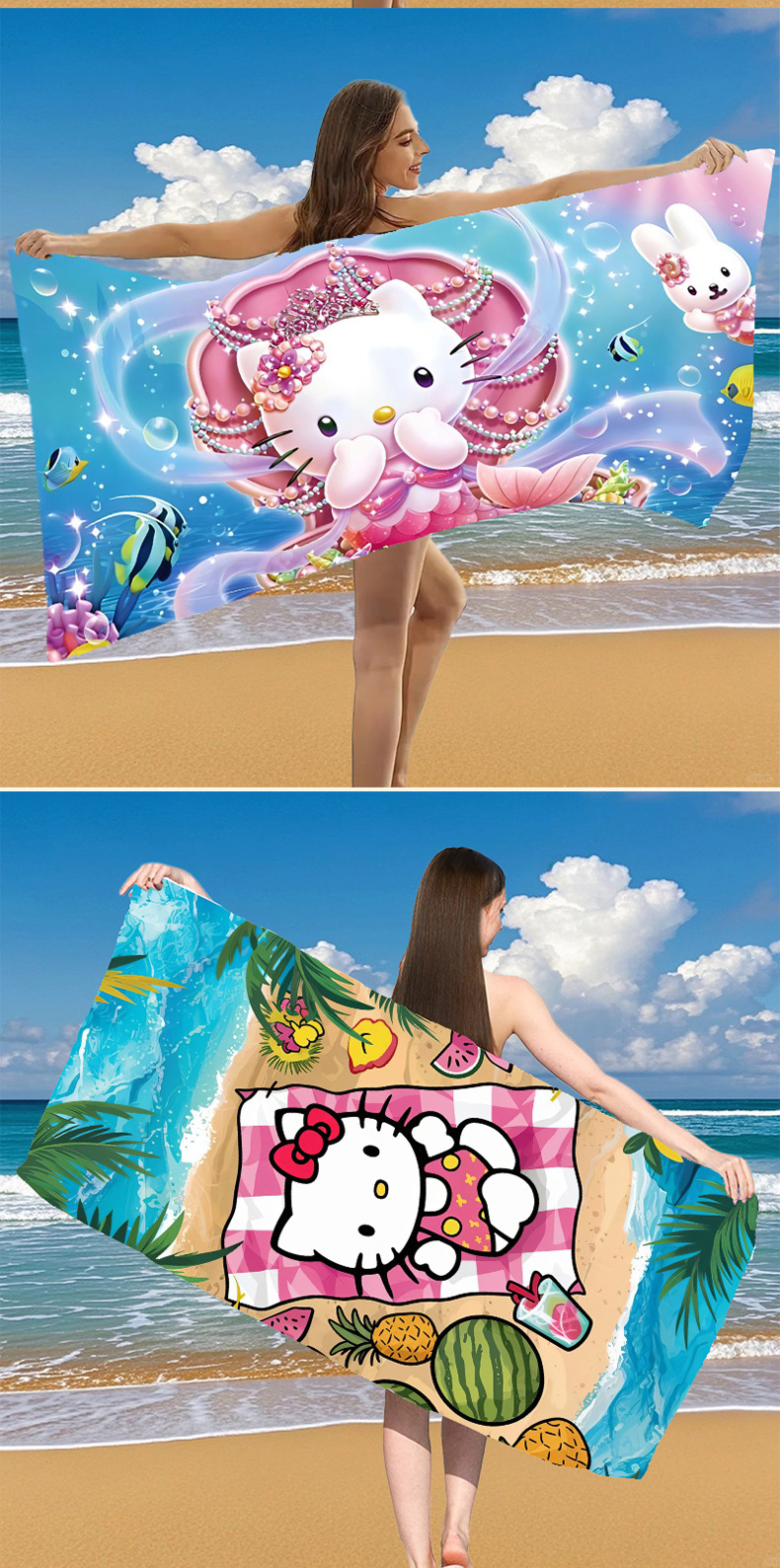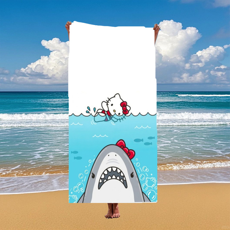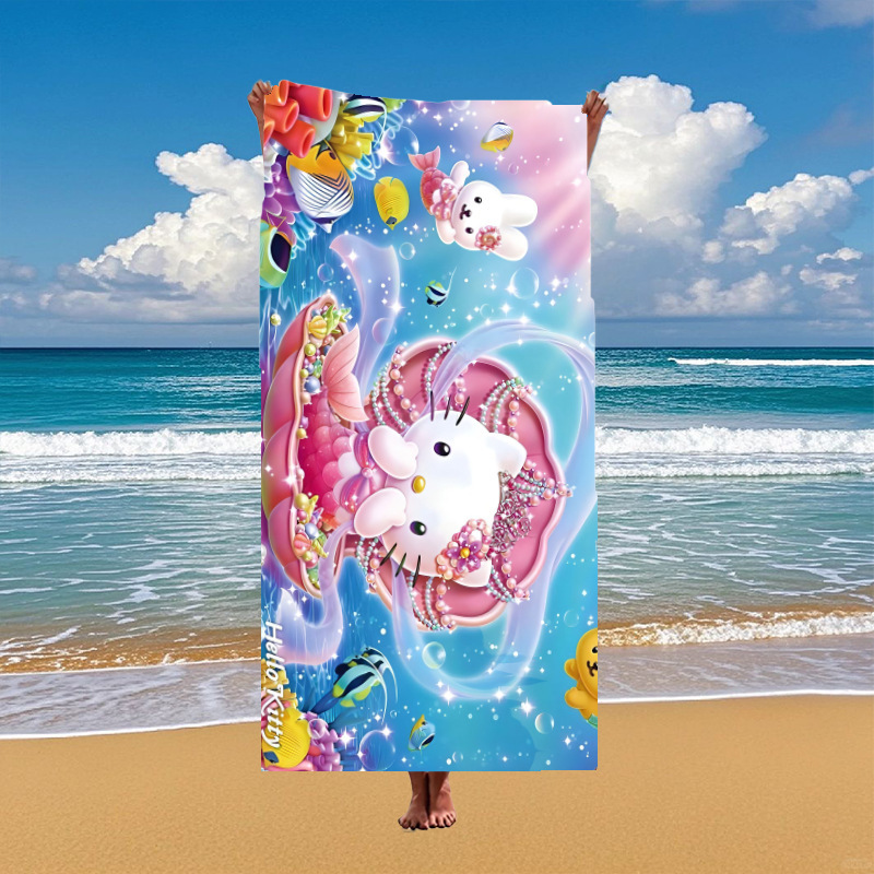국경 간 만화 헬로 키티 패턴 마이크로 화이버 디지털 인쇄 비치 타월 스포츠 속건성 목욕 타월