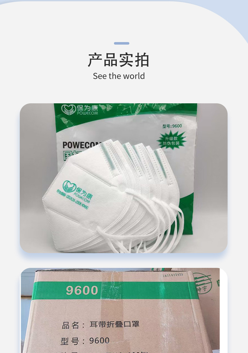 Baoweikang 9600 일회용 방진 마스크 KN90 입자 방지 산업용 먼지 석탄 광산 귀고리 흰색 마스크스토어 가기