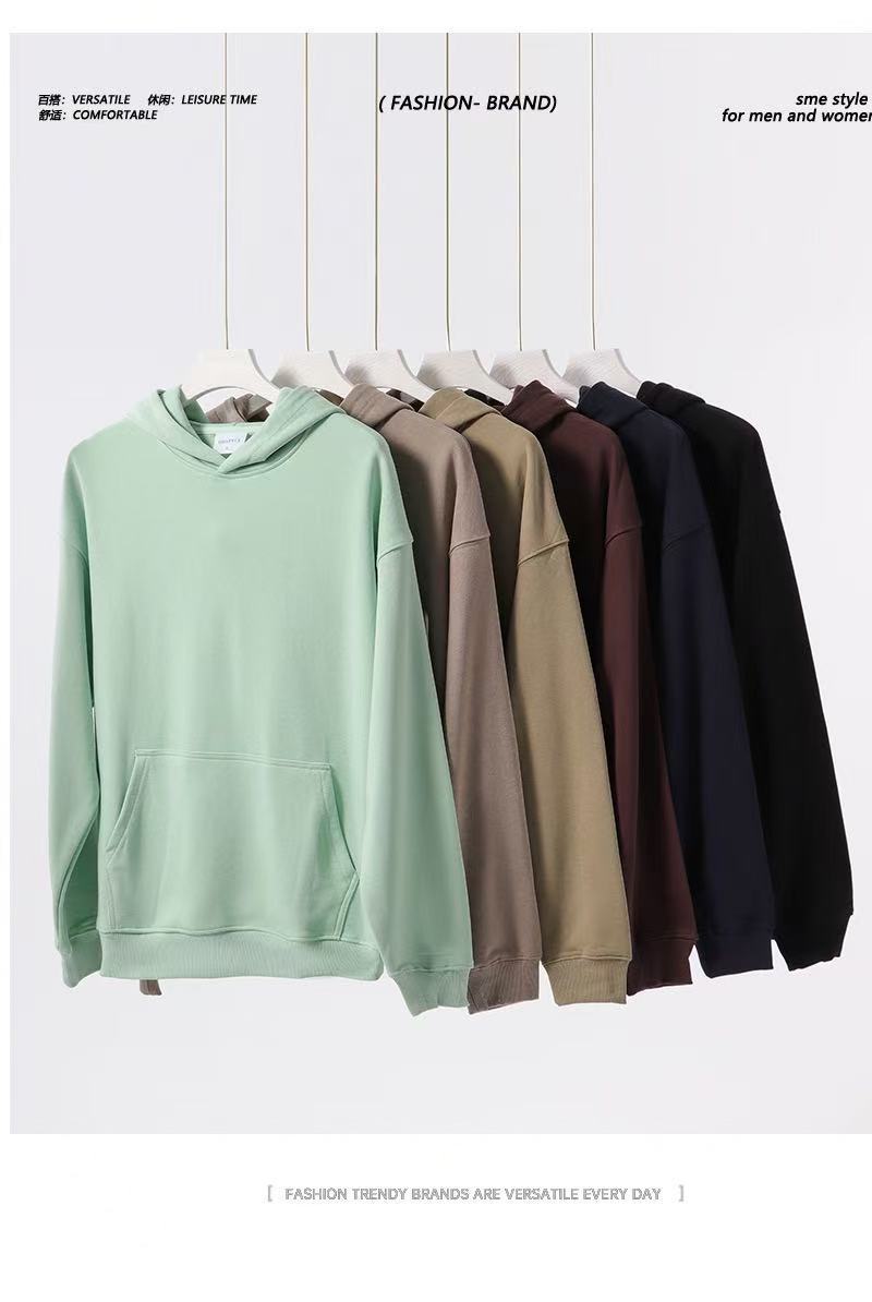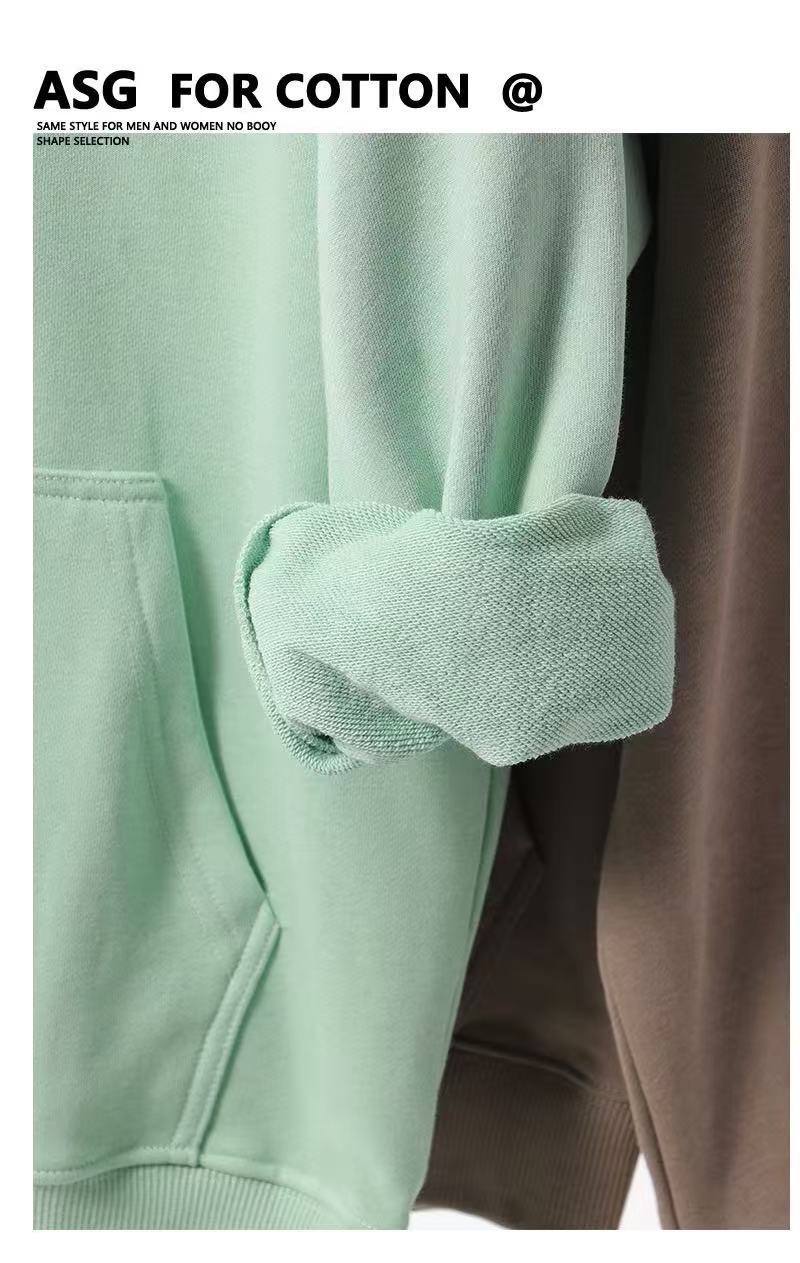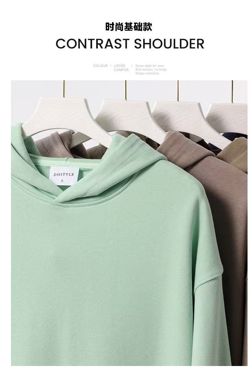 2025 가을, 겨울 헤비급 380G 테리 솔리드 컬러 후드 티셔츠 남성 유럽 버전 루즈한 중간 길이 오프 숄더 퓨어 코튼 탑스토어 가기