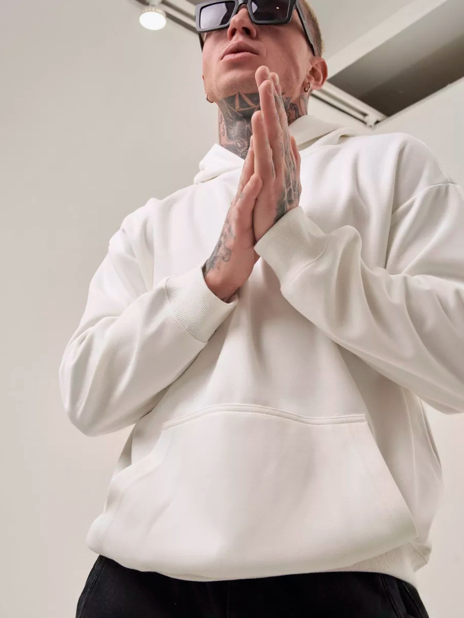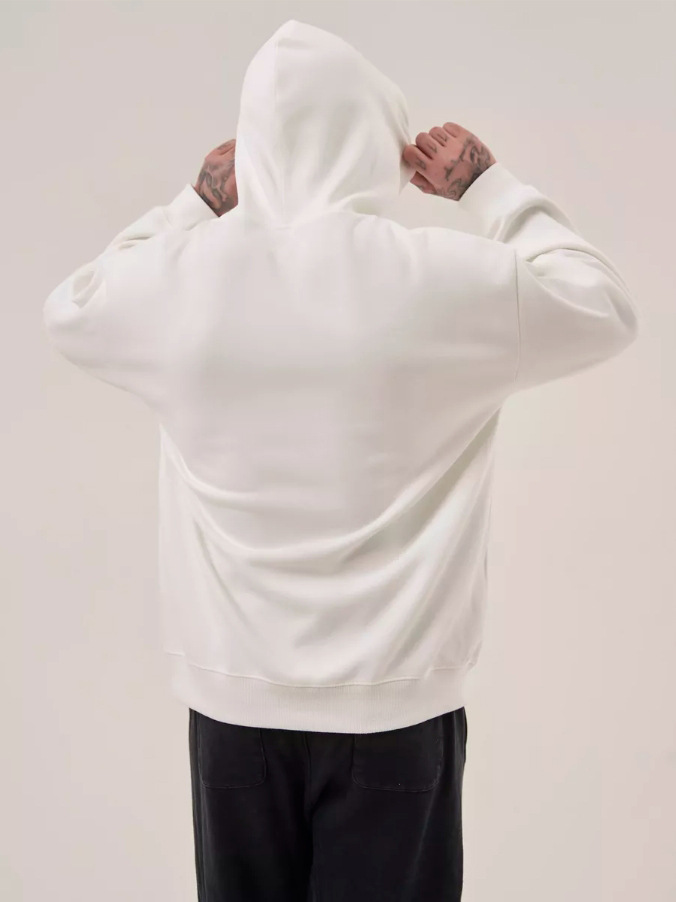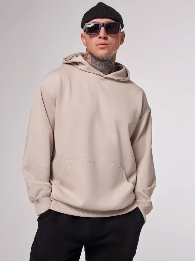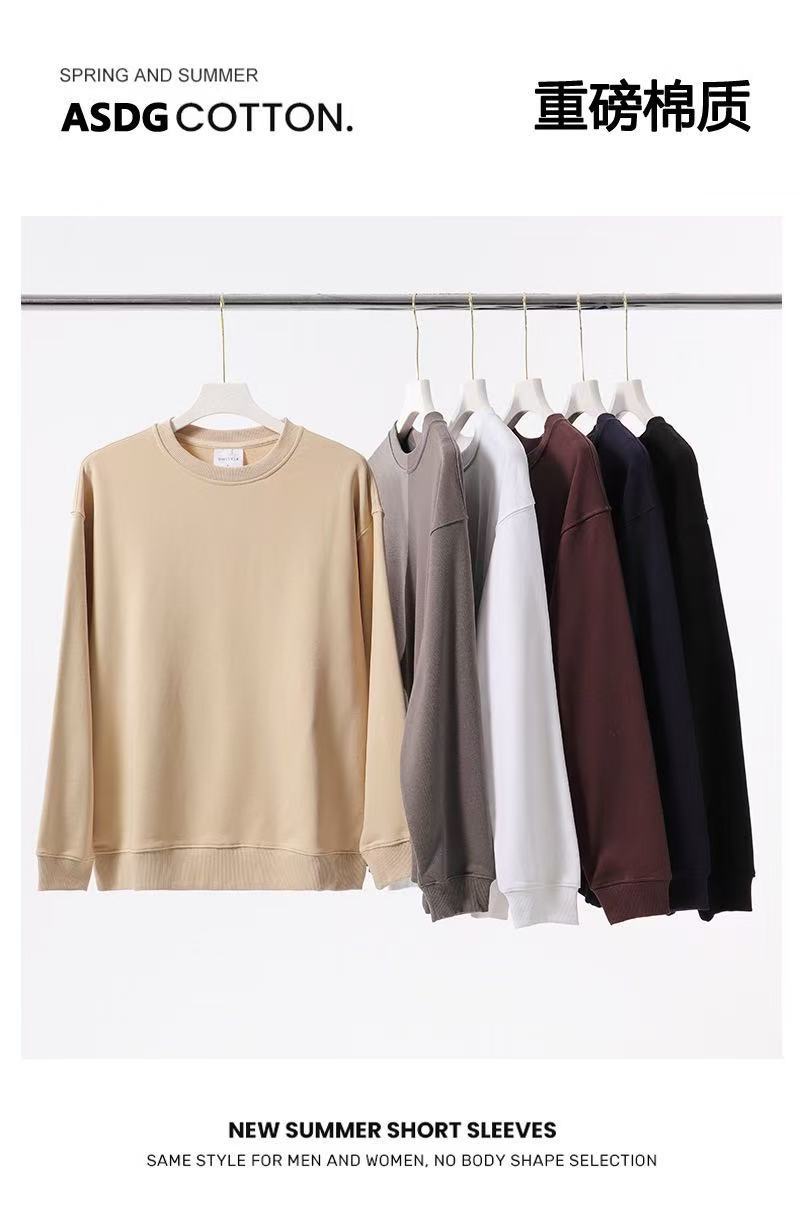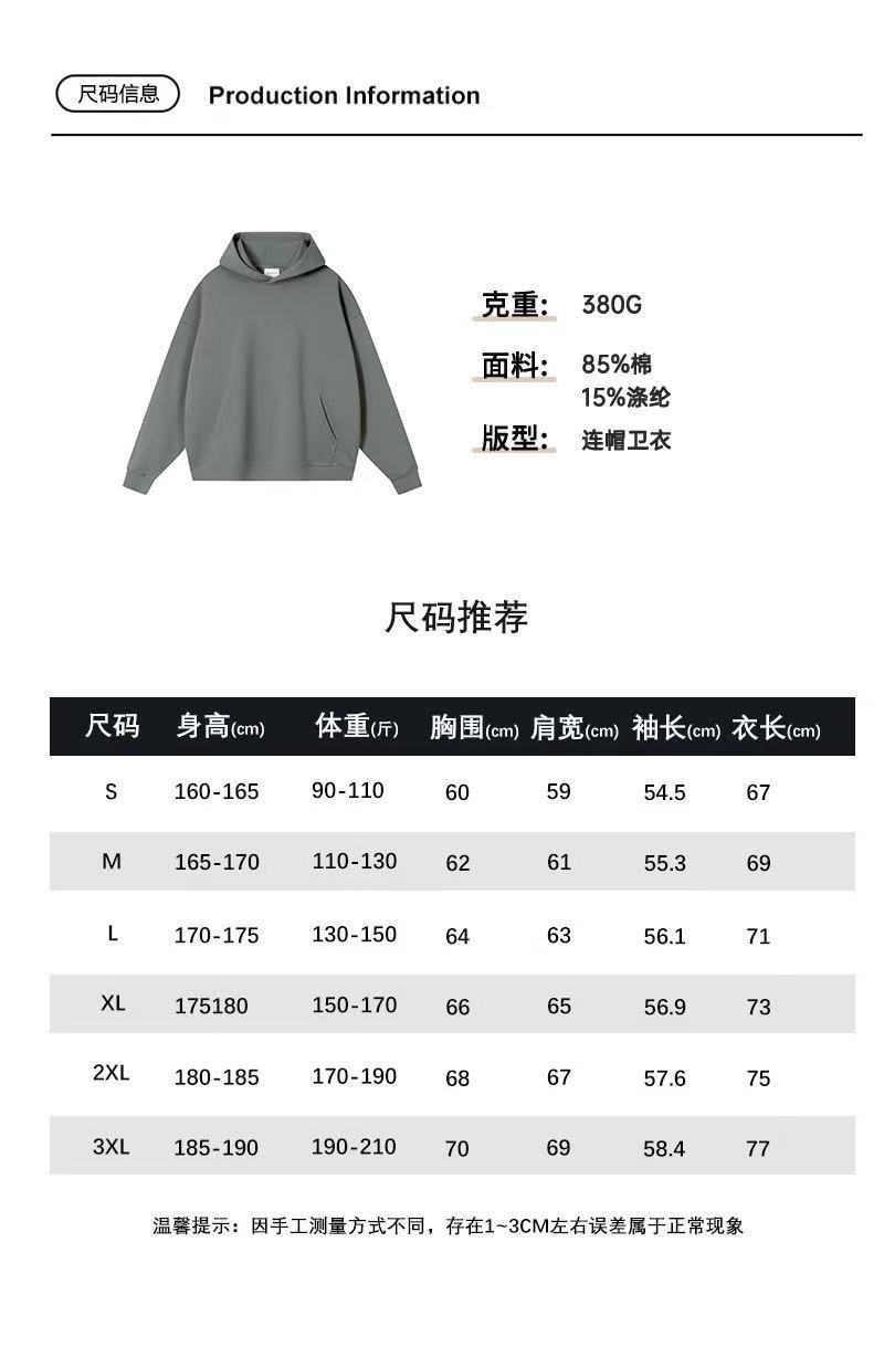 2025 가을, 겨울 헤비급 380G 테리 솔리드 컬러 후드 티셔츠 남성 유럽 버전 루즈한 중간 길이 오프 숄더 퓨어 코튼 탑스토어 가기