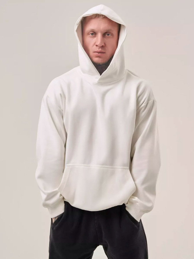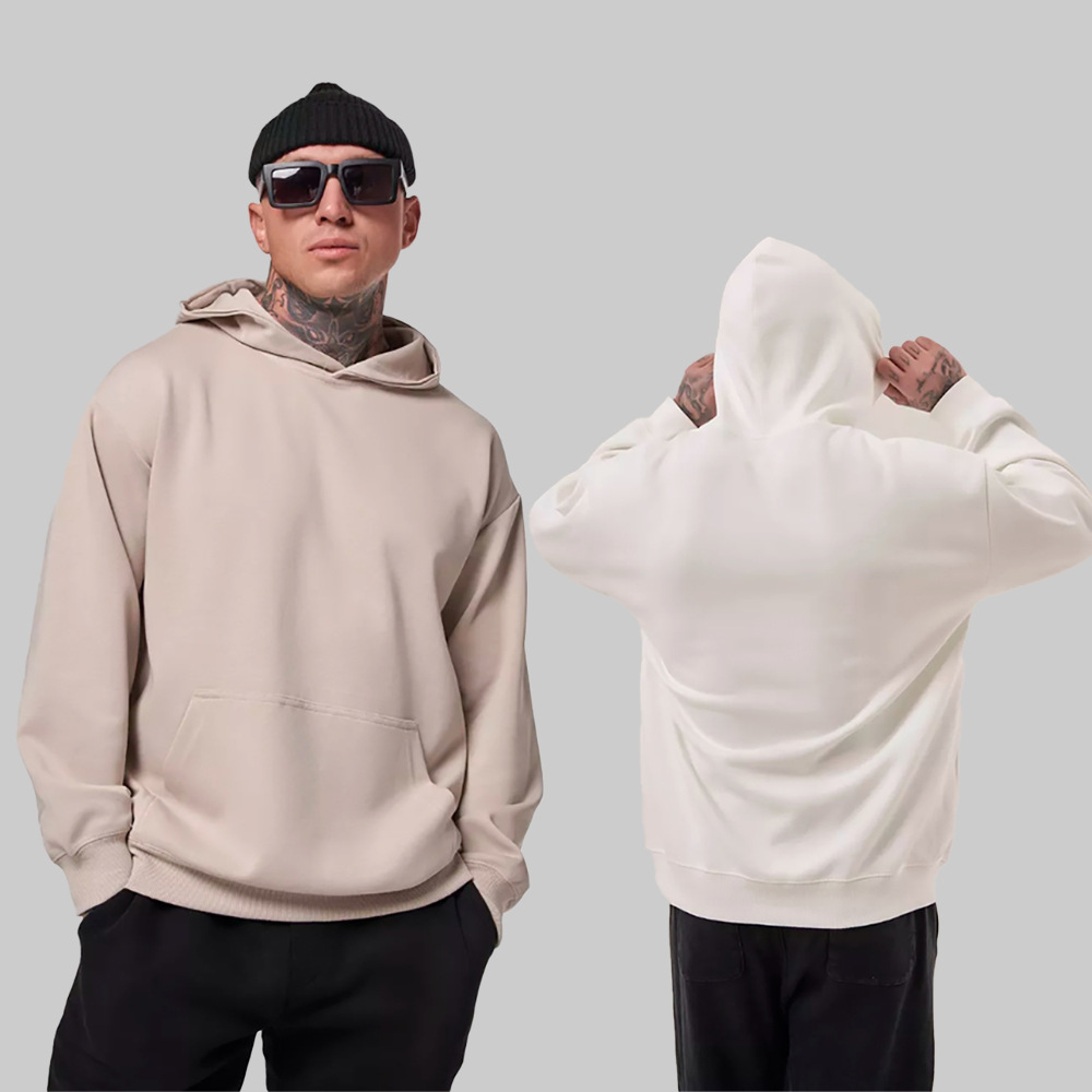 2025 가을, 겨울 헤비급 380G 테리 솔리드 컬러 후드 티셔츠 남성 유럽 버전 루즈한 중간 길이 오프 숄더 퓨어 코튼 탑