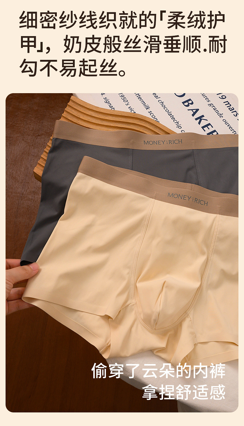 남성용 밀크스킨 속옷, 동백꽃 에센셜 오일 함유, 피부케어, 아이스 실크 시원한 느낌, 무봉제 여름 통기성 사각팬티