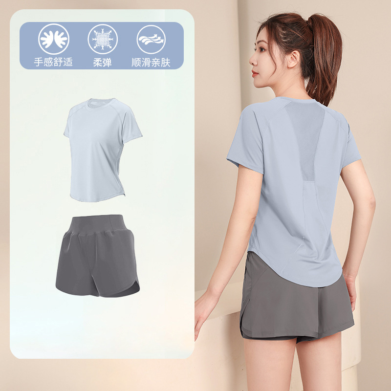 여름 느슨한 반팔 요가 착용 배드민턴 피트니스 착용 스포츠웨어 정장 여성의 새로운 전문 러닝 속건성 의류스토어 가기