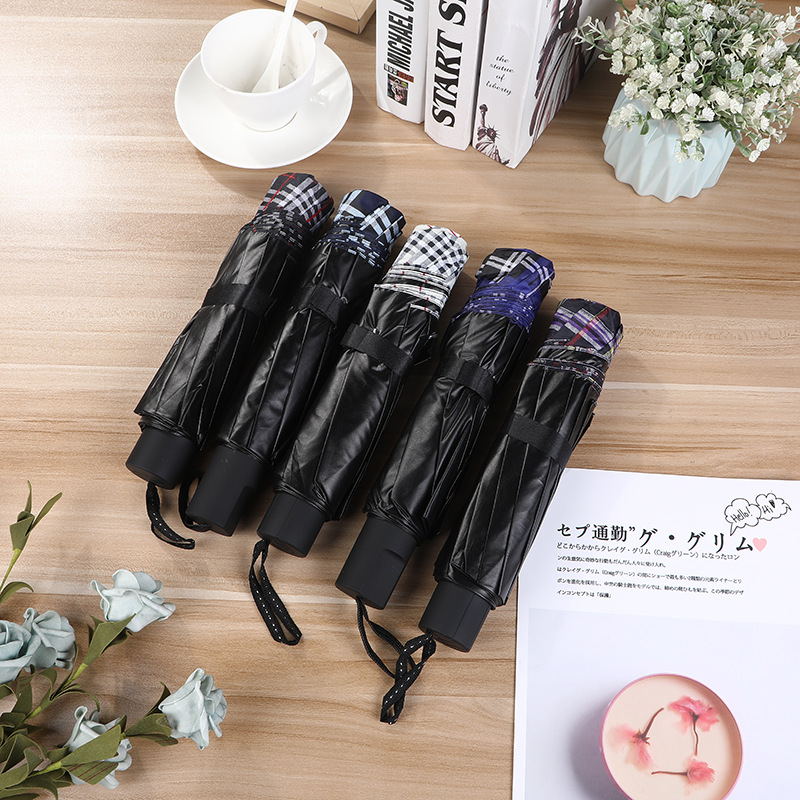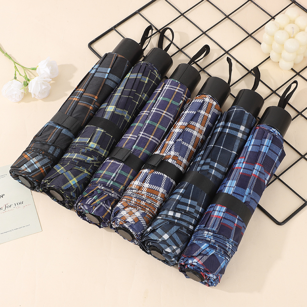 격자 무늬 우산 강화 접이식 경량 태양 우산 이중 목적 비즈니스 우산 제조 업체 남성과 여성의 보편적 인 우산 도매스토어 가기