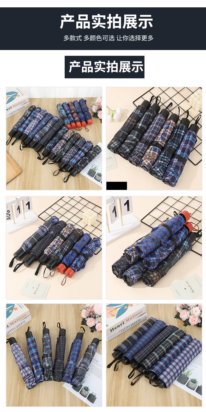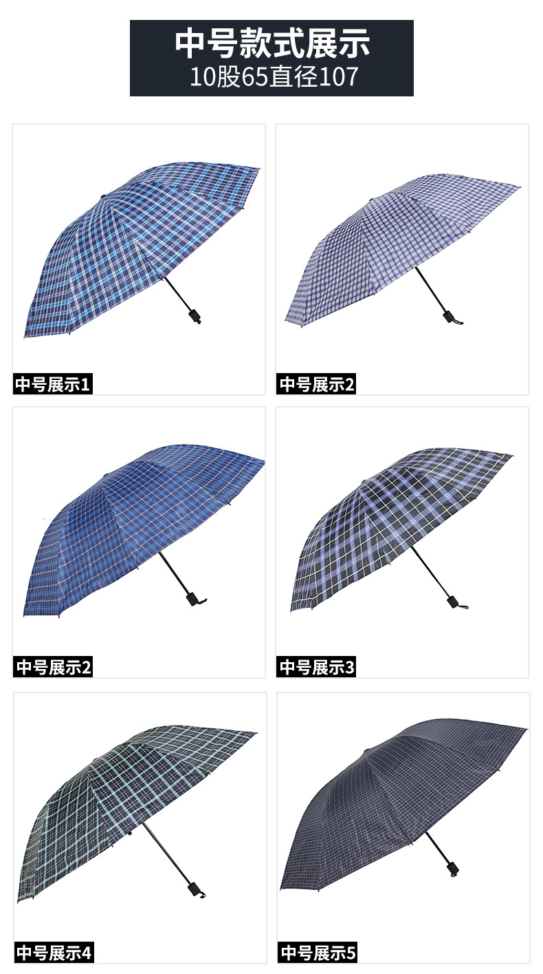 • 10개 뼈 65 격자 우산 임의 색상 108cm 아래 우산