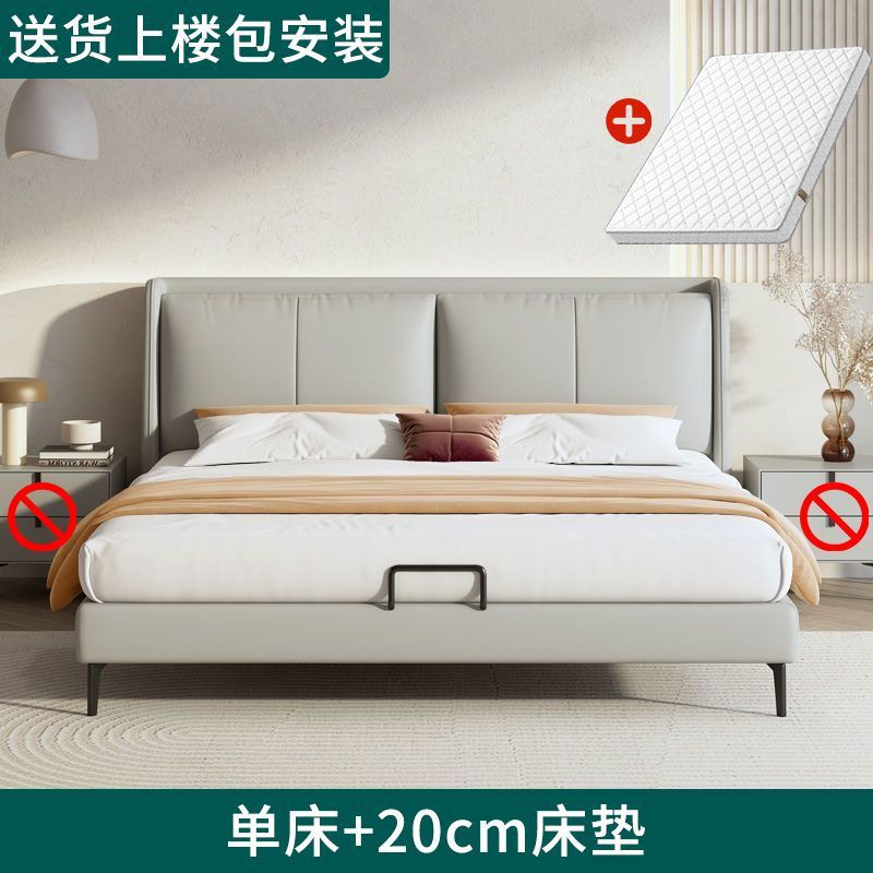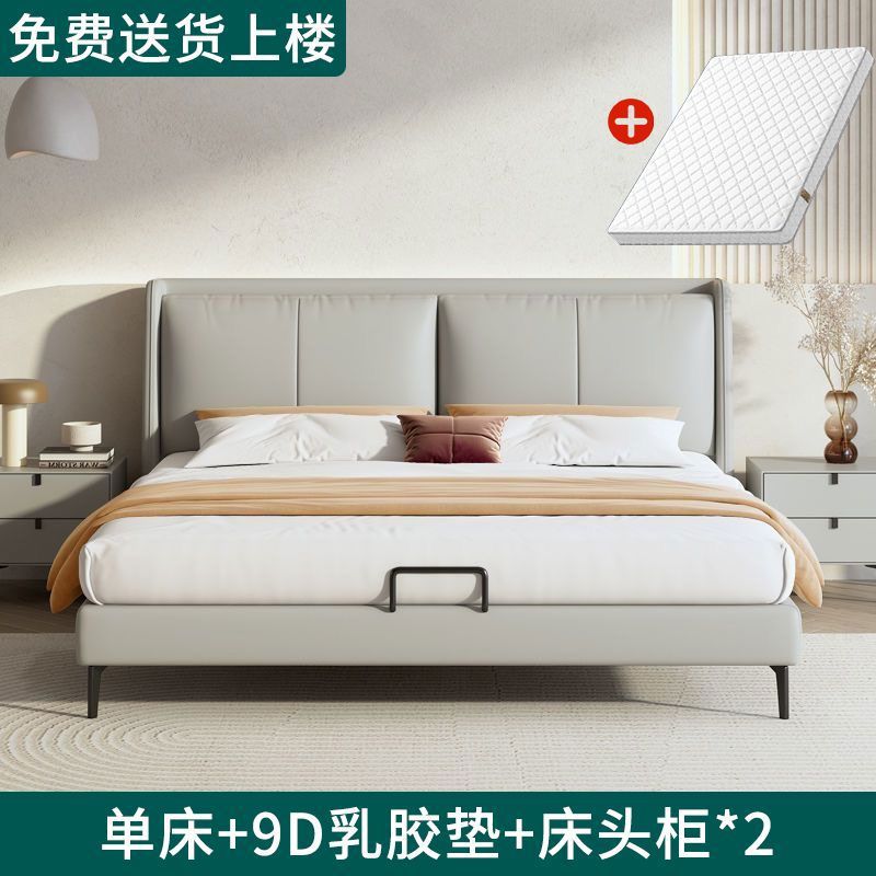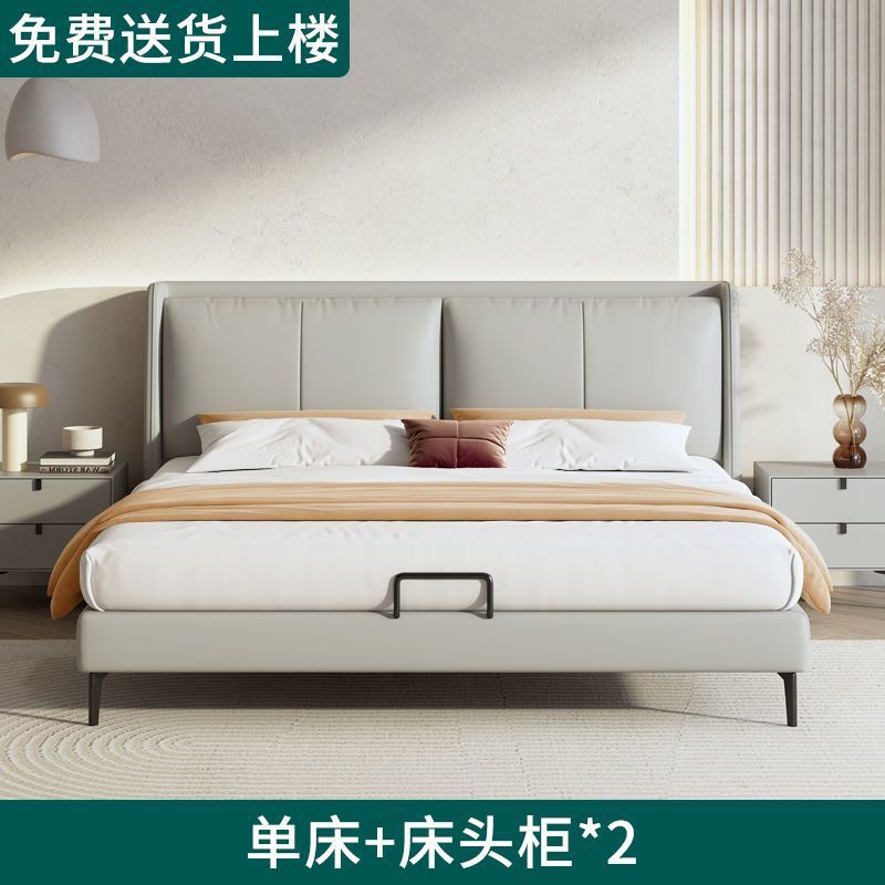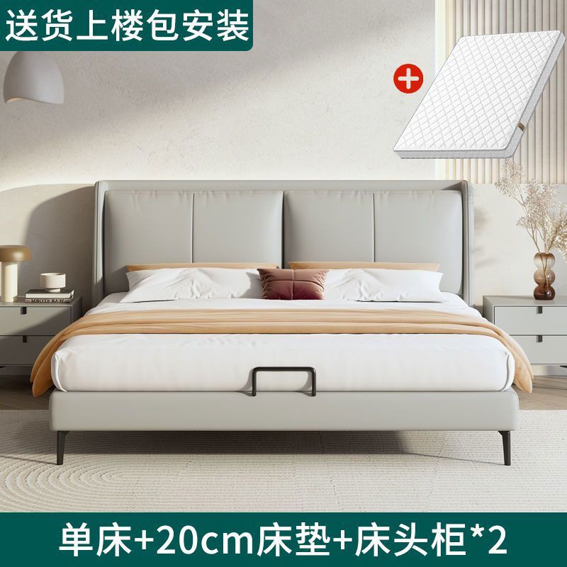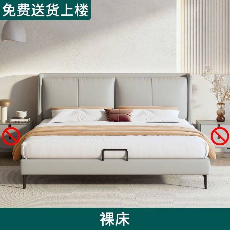 이탈리안 라이트 럭셔리 부드러운 가죽 원목 침대 더블 1.8m 마스터 침실 1.5m 더블 침대 경제적인 고가치 가죽 침대스토어 가기