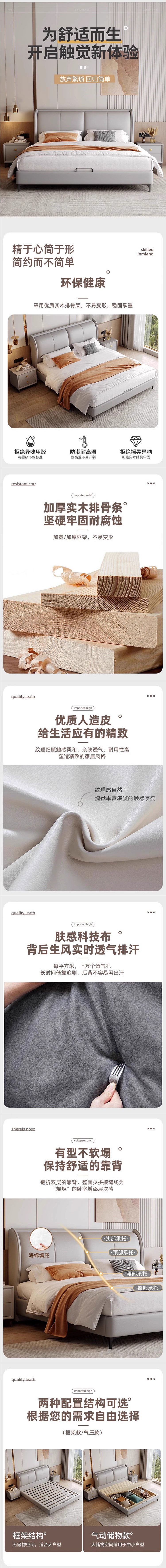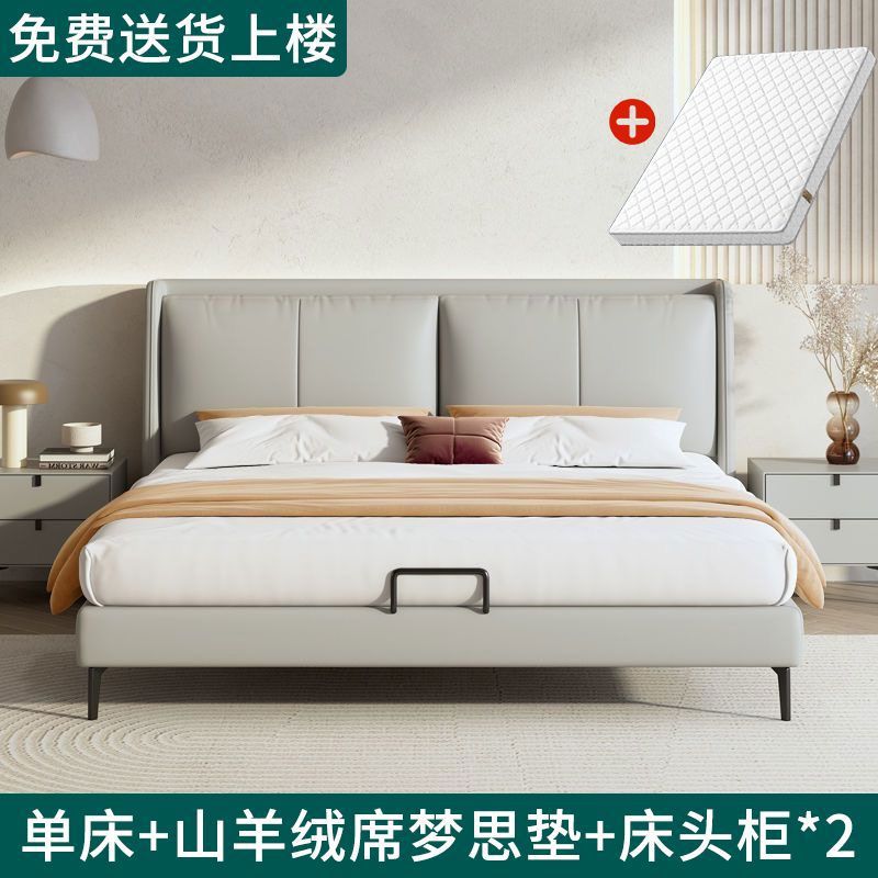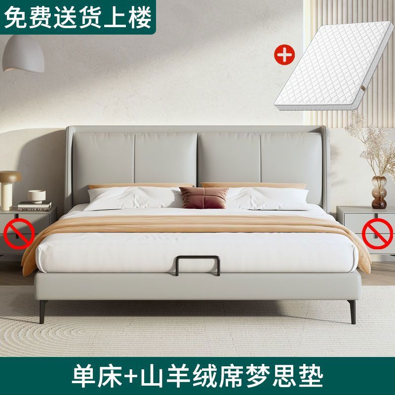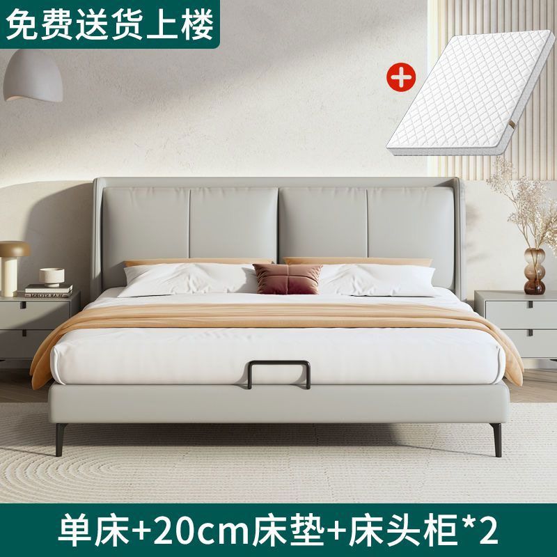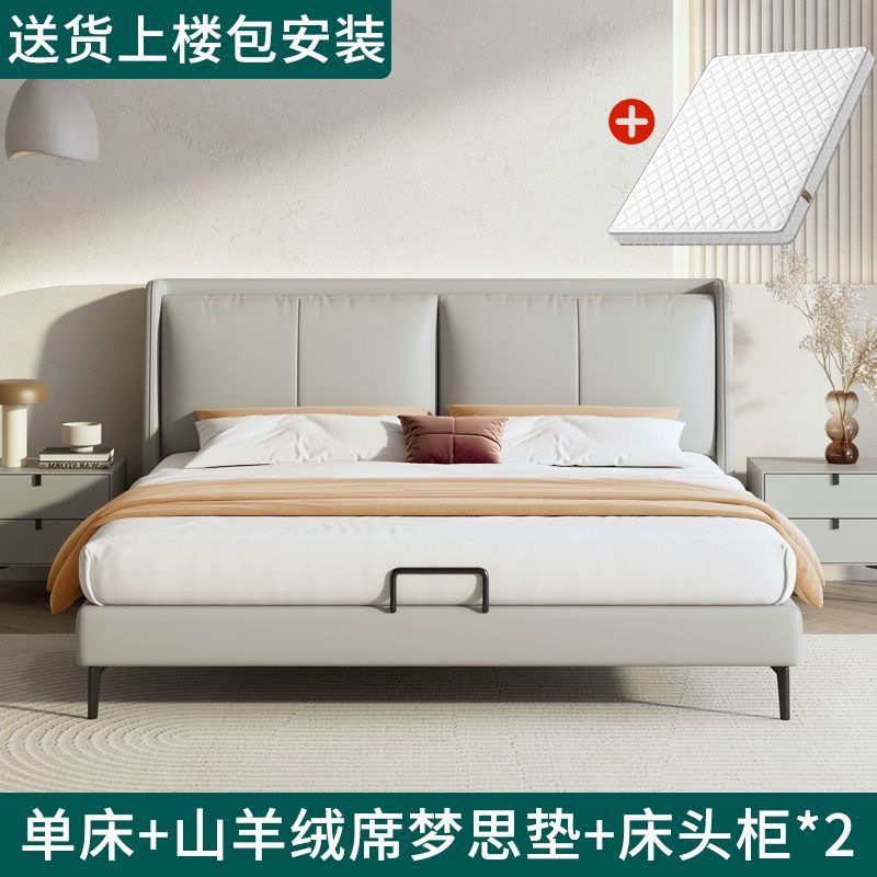 이탈리안 라이트 럭셔리 부드러운 가죽 원목 침대 더블 1.8m 마스터 침실 1.5m 더블 침대 경제적인 고가치 가죽 침대스토어 가기
