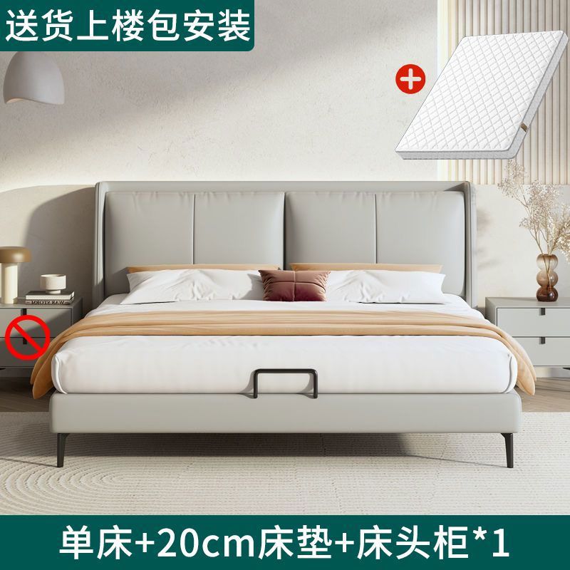 • Zhenxuan 가죽 침대 20cm 매트리스 + 침대 옆 탁자 1개 [설치 포함]