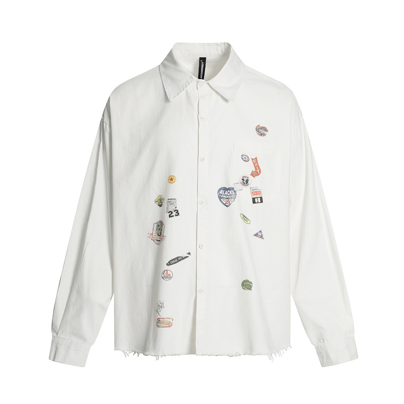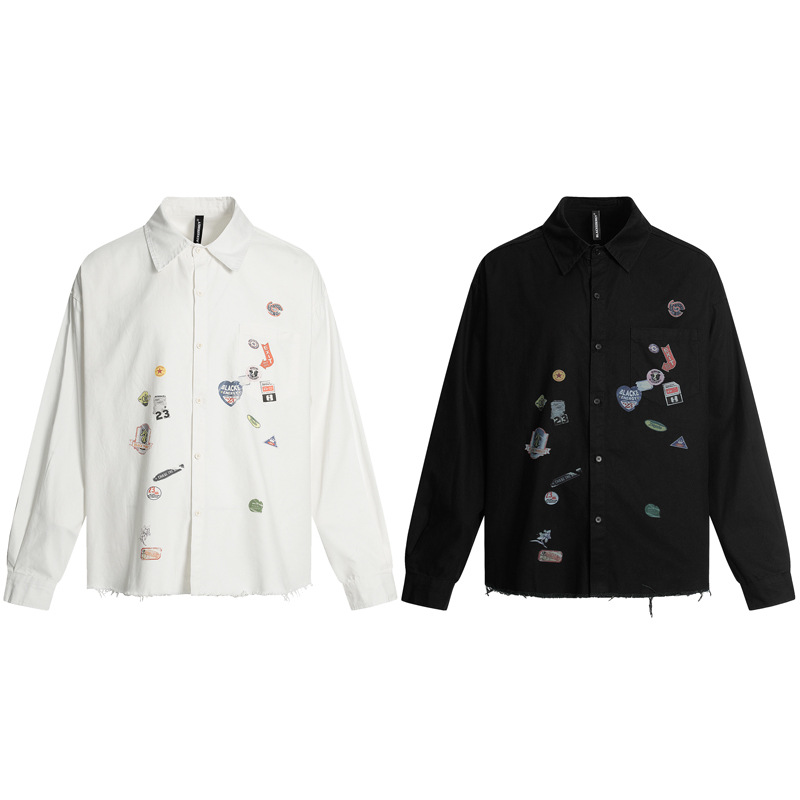 남성과 여성을 위한 새로운 가을 맞춤형 디자인 패턴 프린트 루즈한 긴팔 셔츠, 트렌디한 캐주얼 패션 셔츠스토어 가기