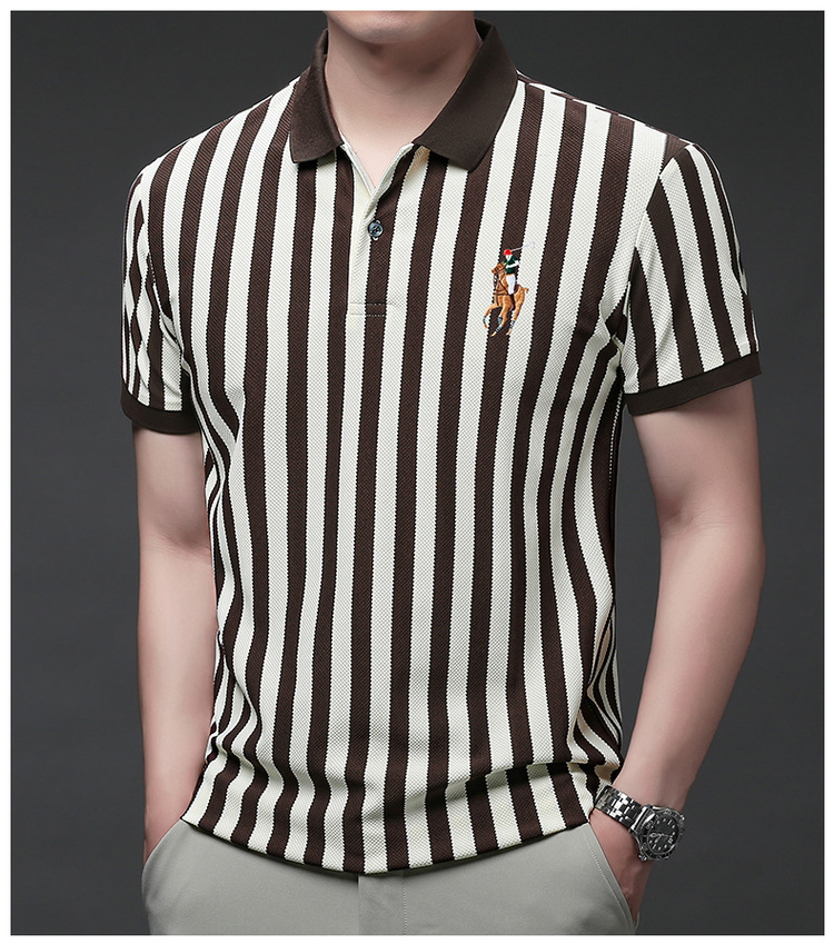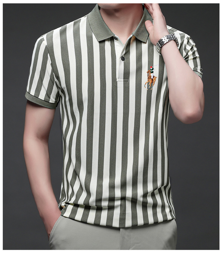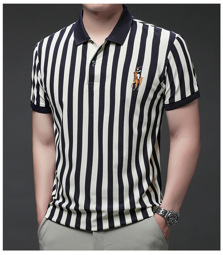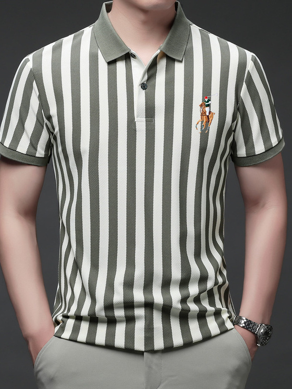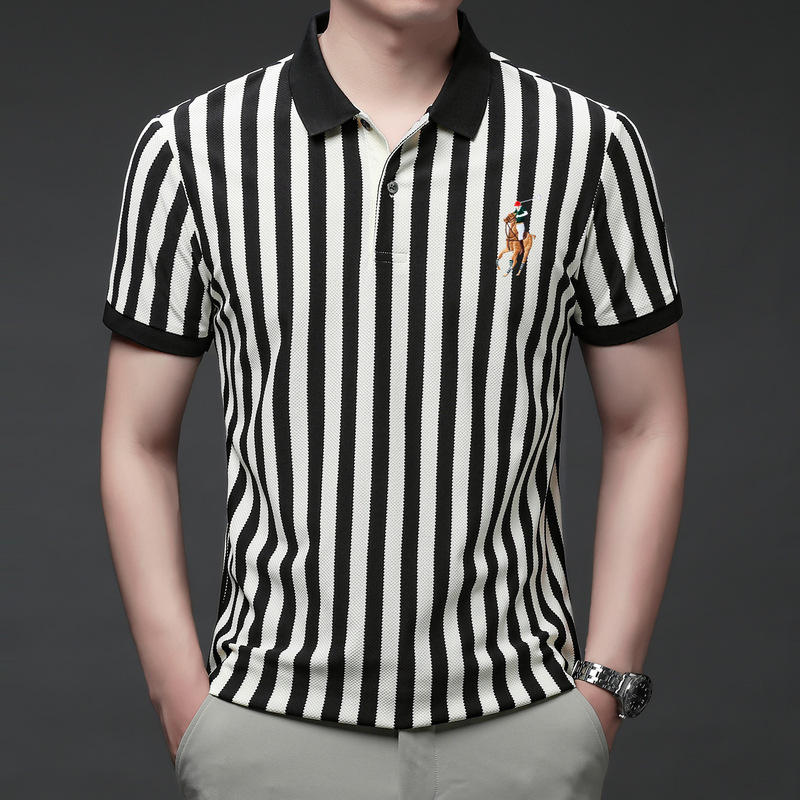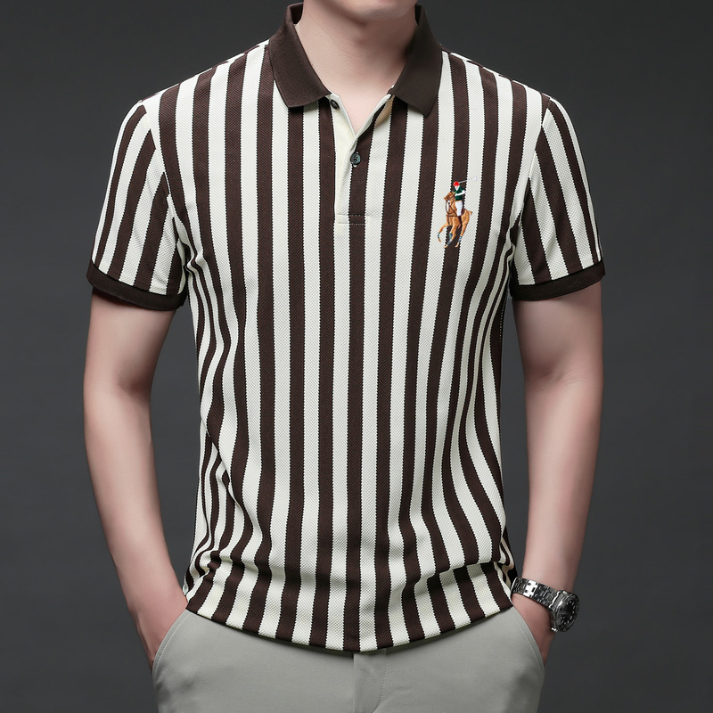 여름 인기 국경 간 대외 무역 도매 고품질 자수 폴로 셔츠 남성용 반팔 탑 중년 및 젊은층을위한 느슨한 의류