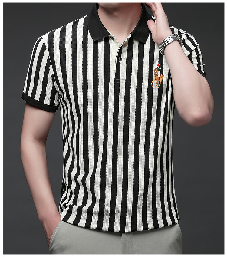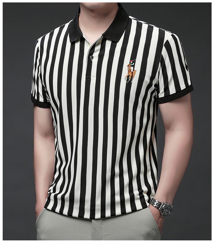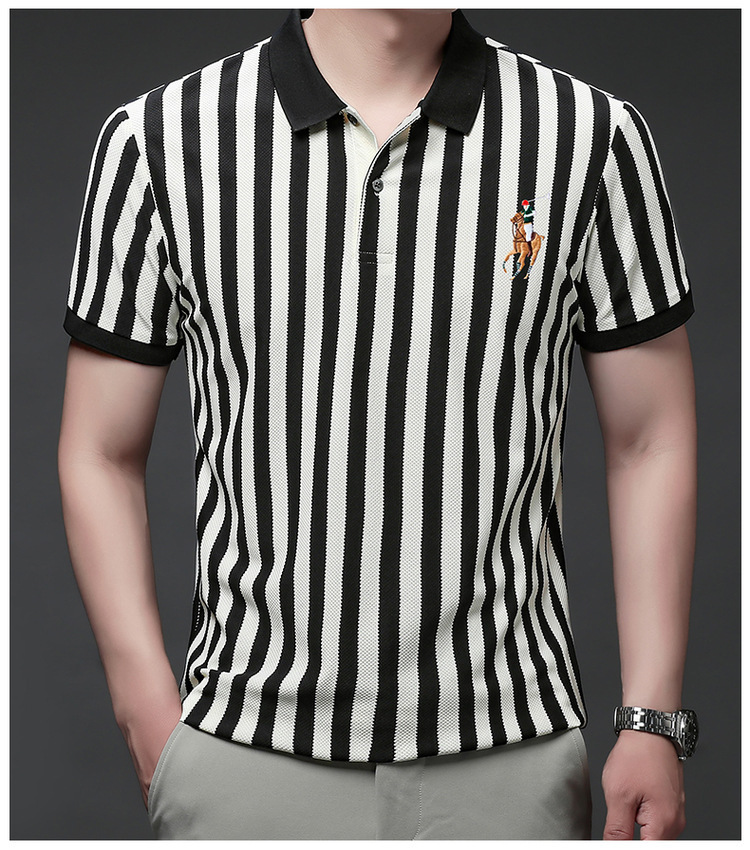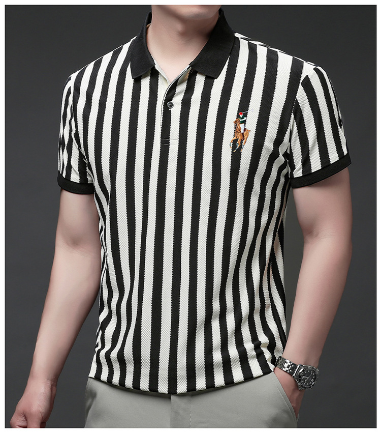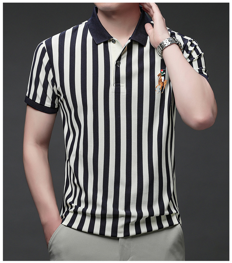 여름 인기 국경 간 대외 무역 도매 고품질 자수 폴로 셔츠 남성용 반팔 탑 중년 및 젊은층을위한 느슨한 의류