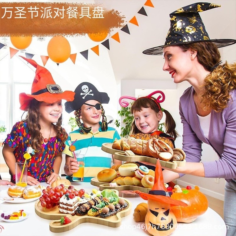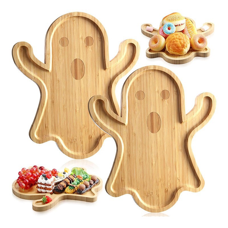 아마존 대나무 유령 트레이 할로윈 파티 장식 디너 트레이 크리 에이 티브 단단한 나무 재미 있은 트레이 나무 디너 트레이