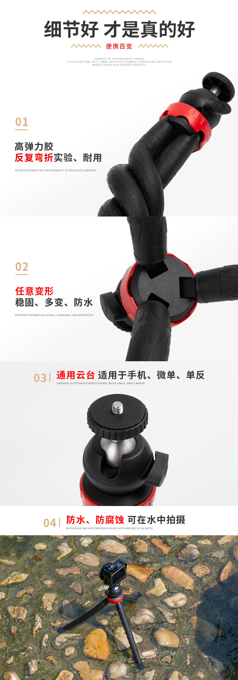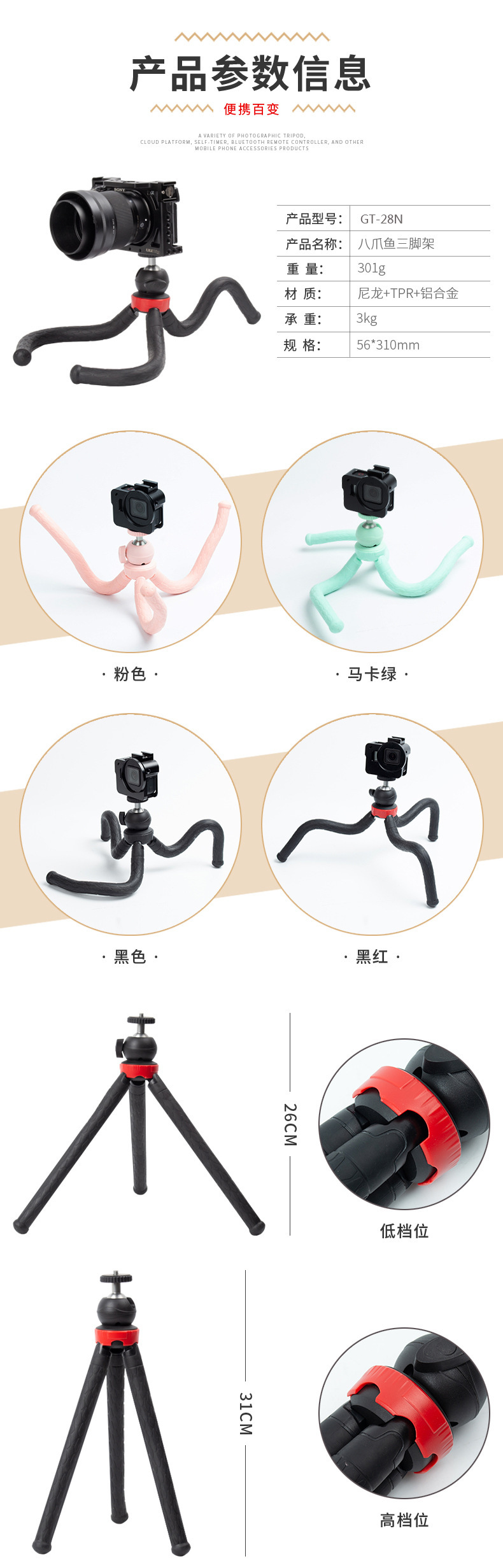 GT-28N 제조 업체 도매 Octopus 삼각대 비디오 데스크탑 휴대 전화 카메라 스탠드 야외 셀카 삼각대스토어 가기