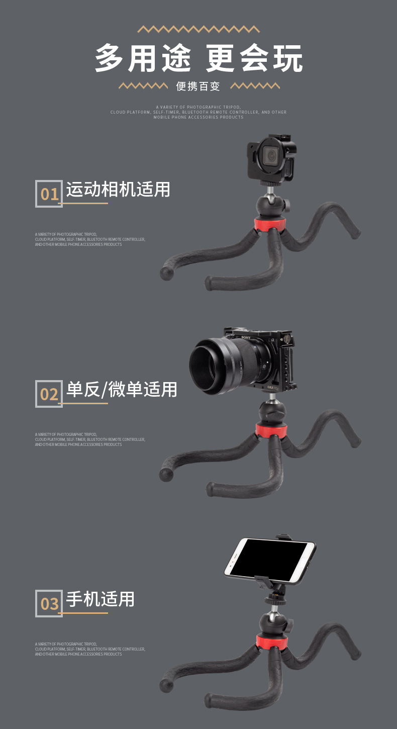 GT-28N 제조 업체 도매 Octopus 삼각대 비디오 데스크탑 휴대 전화 카메라 스탠드 야외 셀카 삼각대
