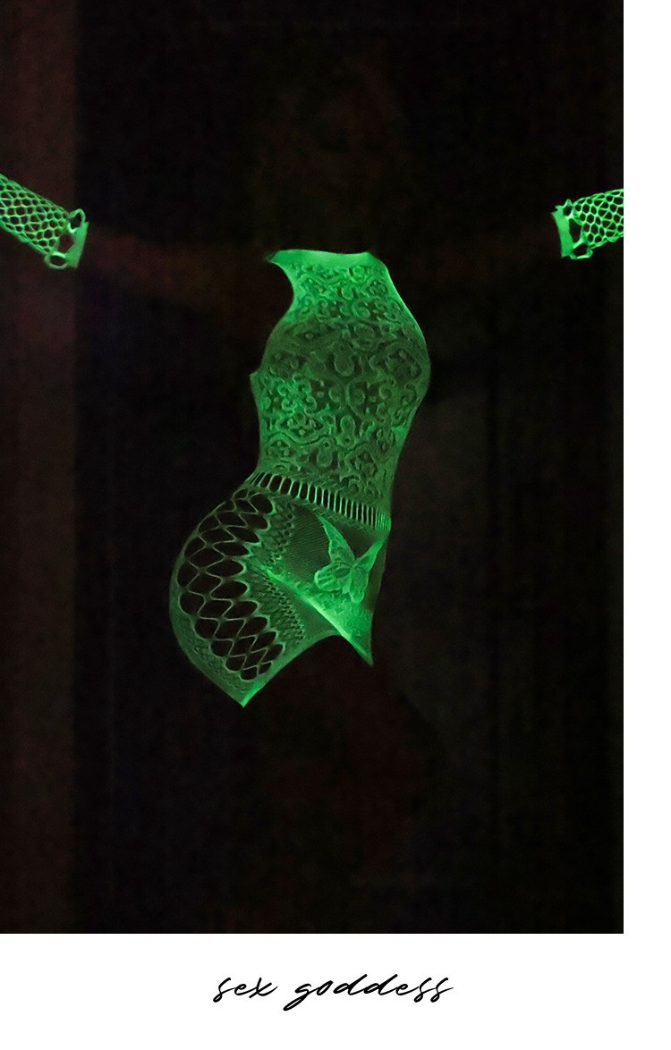 유럽과 미국의 중공 발광 망사 드레스 투피스 형광 점프 슈트 섹시한 수영복 섹시한 속옷을 벗을 필요가 없습니다스토어 가기