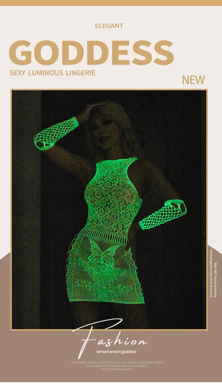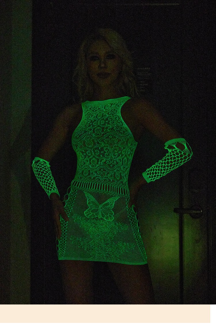 유럽과 미국의 중공 발광 망사 드레스 투피스 형광 점프 슈트 섹시한 수영복 섹시한 속옷을 벗을 필요가 없습니다