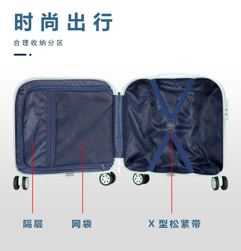 E6J 18inch 소형 탑승 가방, 남학생과 여학생을 위한 초경량 여행 가방, 범용 바퀴, 튼튼하고 내구성이 뛰어난 어린이 비밀번호 여행