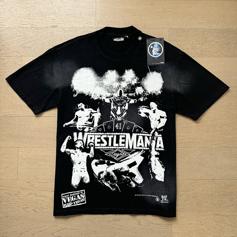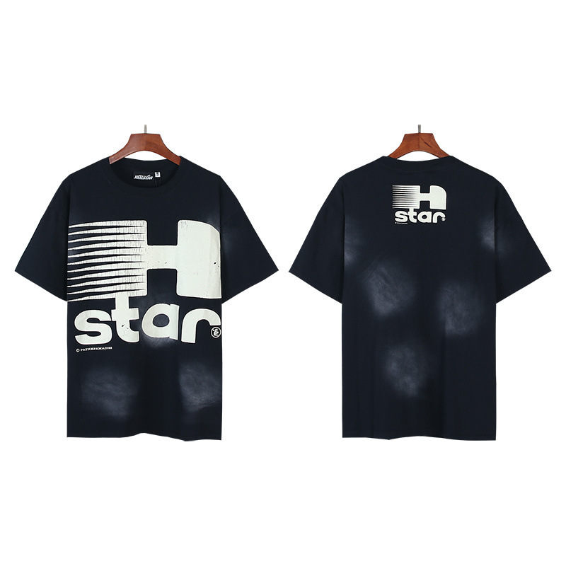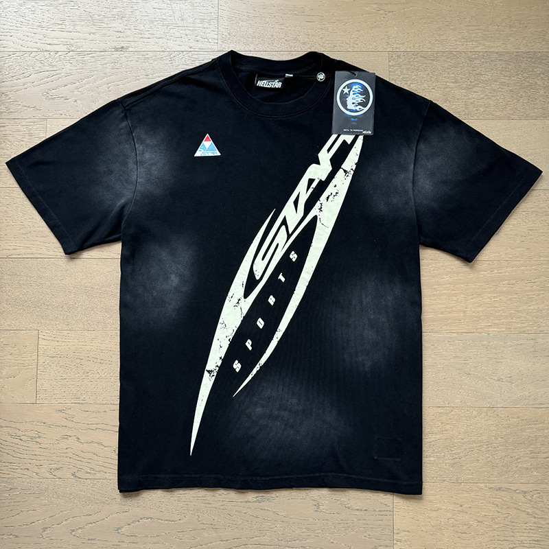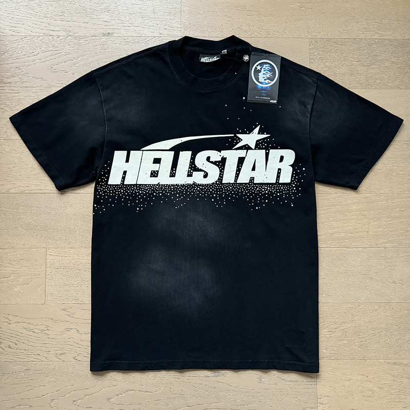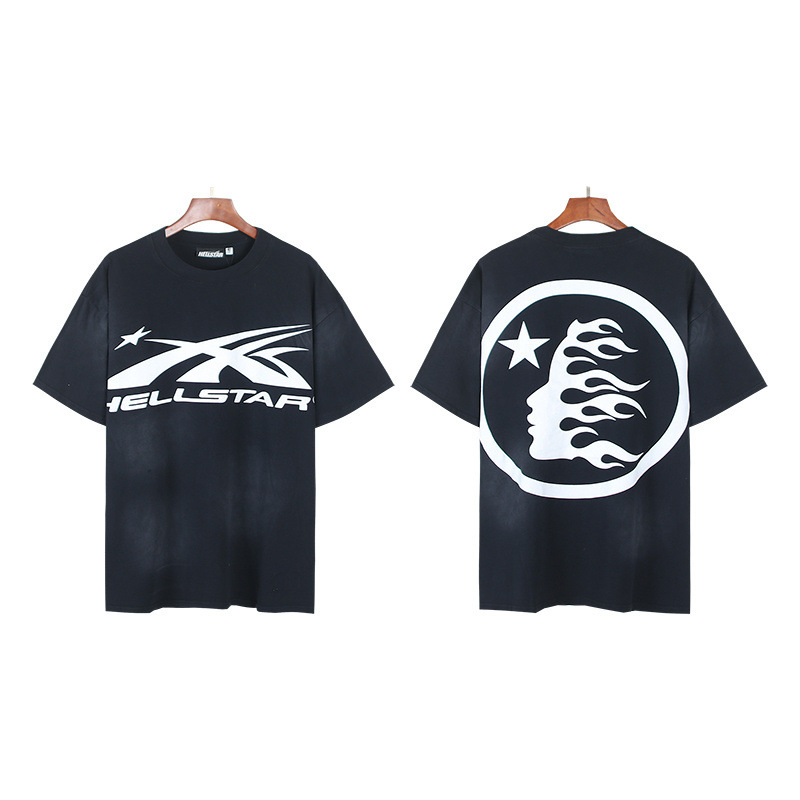 유럽과 미국의 트렌디 브랜드 Hellstar Hellstar 워싱 레트로 라운드 넥 반팔 티셔츠 핫 다이아몬드 유니섹스 슈트
