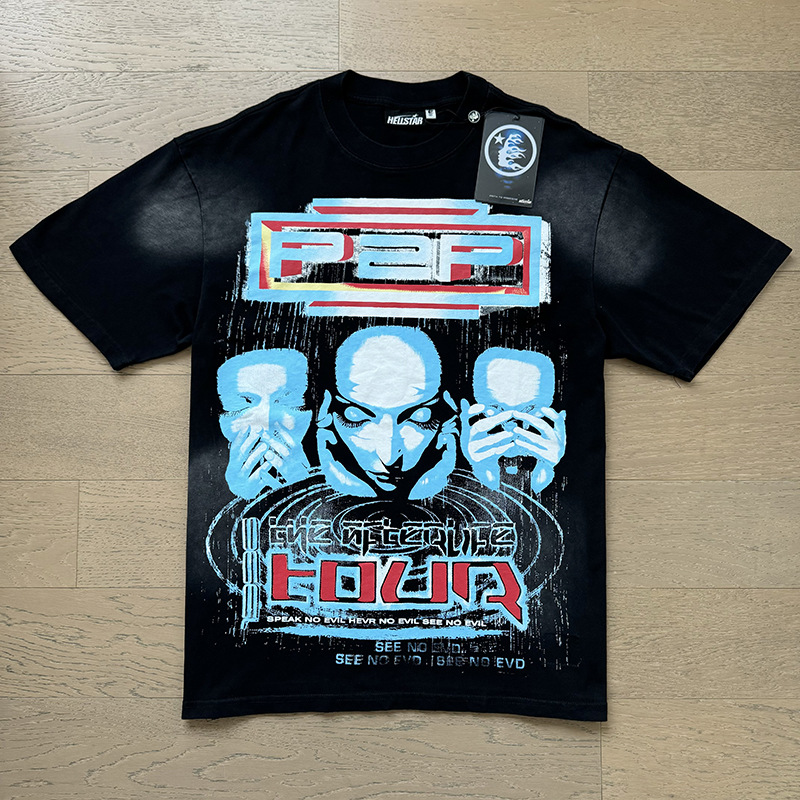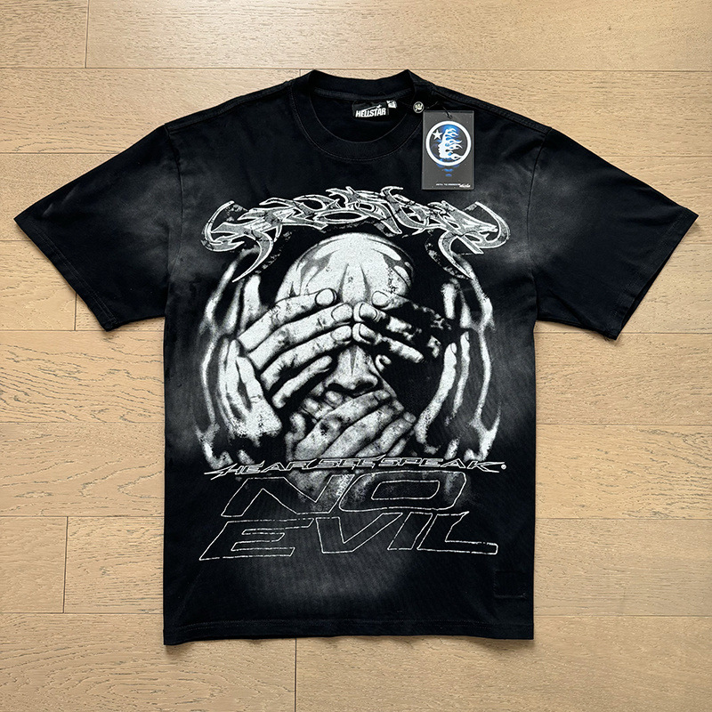 유럽과 미국의 트렌디 브랜드 Hellstar Hellstar 워싱 레트로 라운드 넥 반팔 티셔츠 핫 다이아몬드 유니섹스 슈트스토어 가기